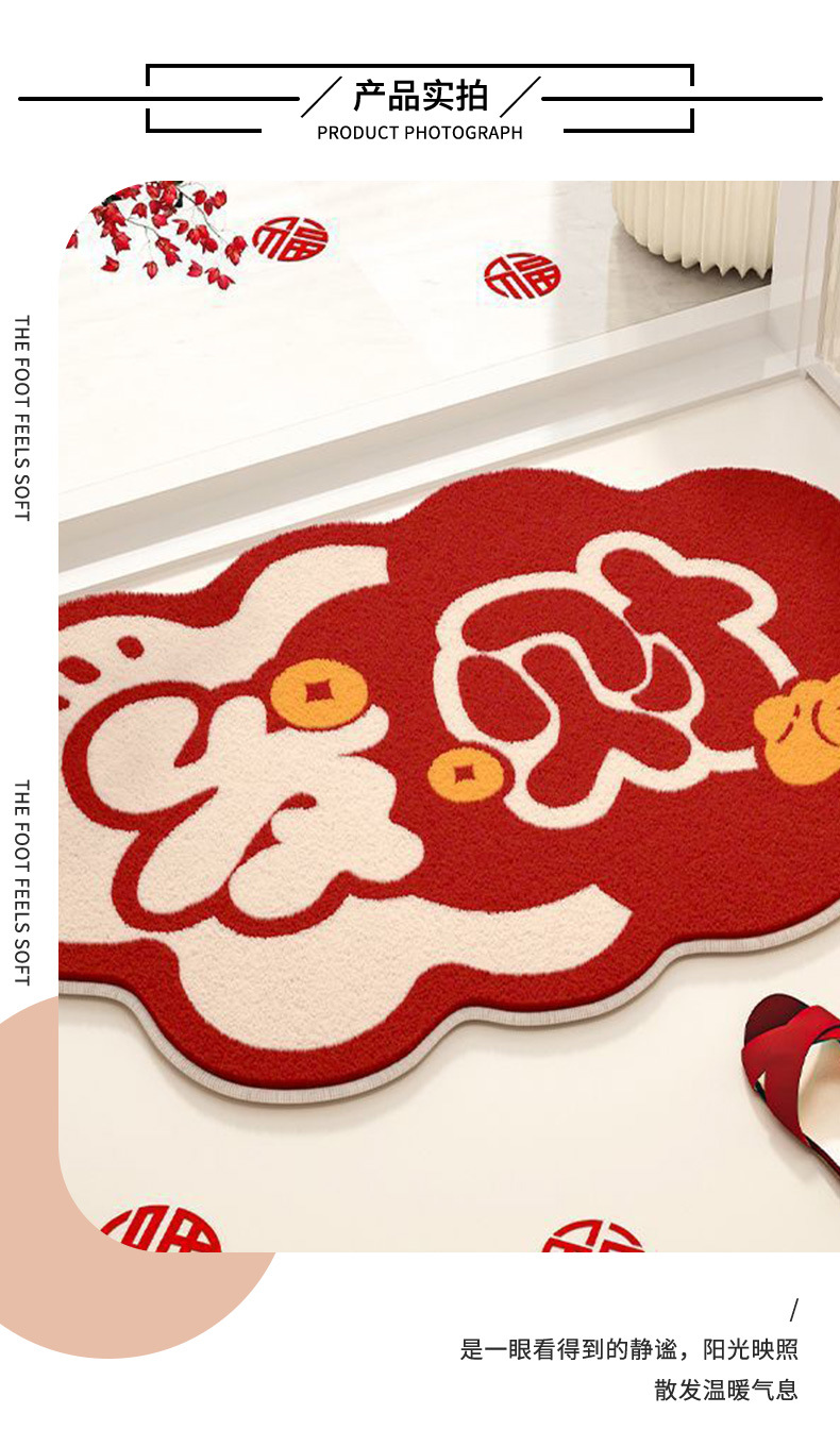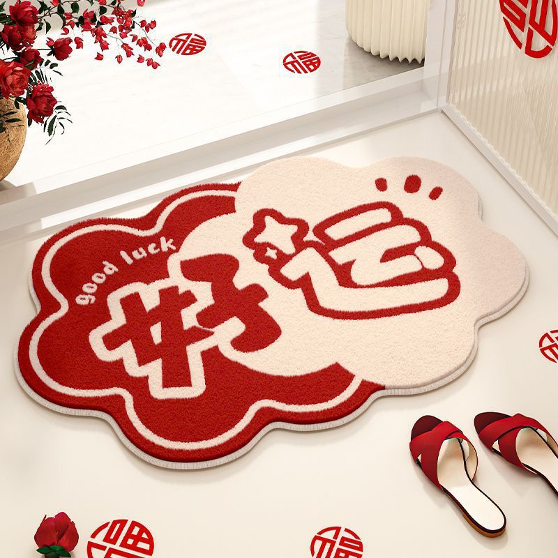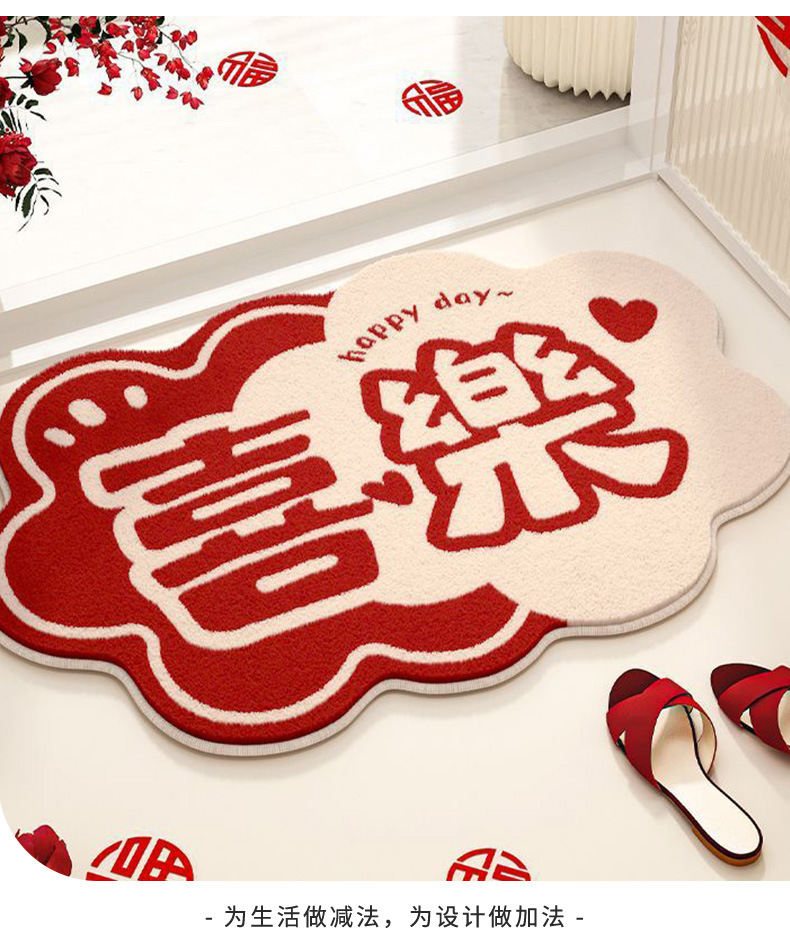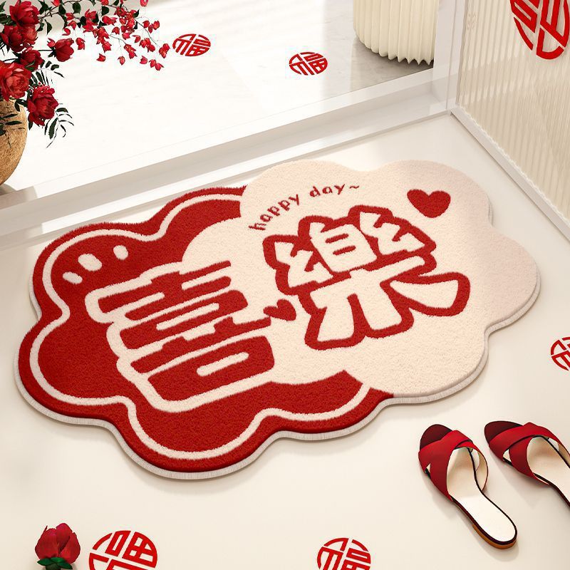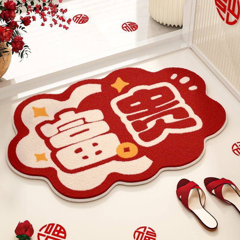 빨간 축제 욕실 미끄럼 방지 매트 흡수성 내마모성 특수 모양의 욕실 바닥 매트 가정용 세척 가능한 모조 캐시미어 발 매트스토어 가기