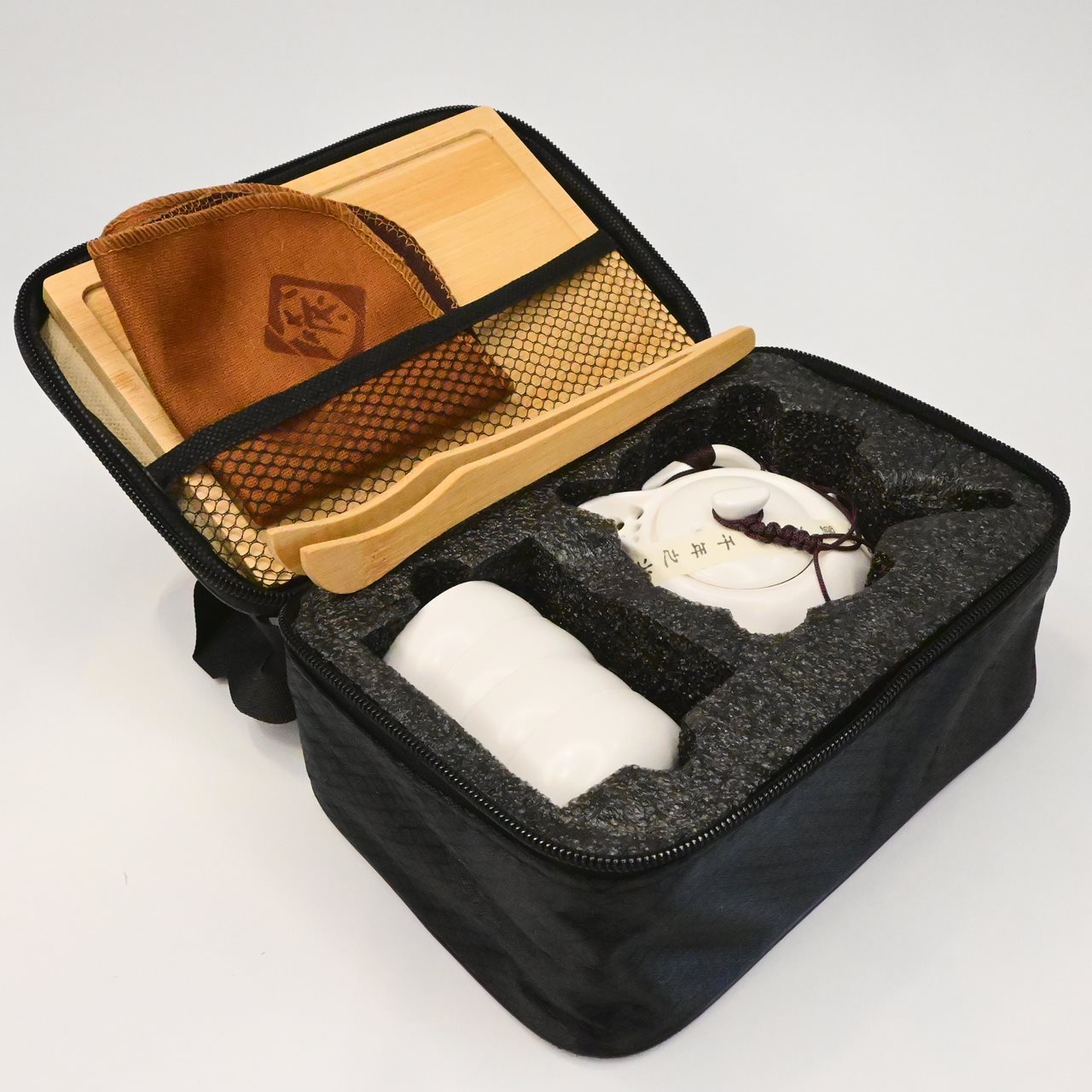 • 흰색 컵 2개와 냄비 1개, 휴대용 여행 가방(차 트레이는 포함되지 않음)