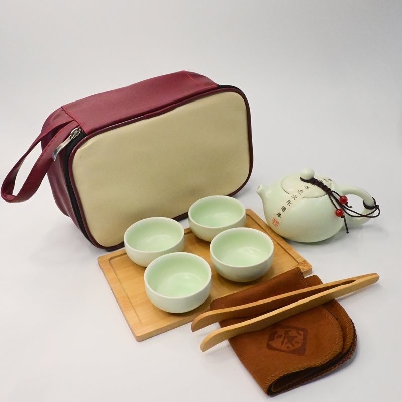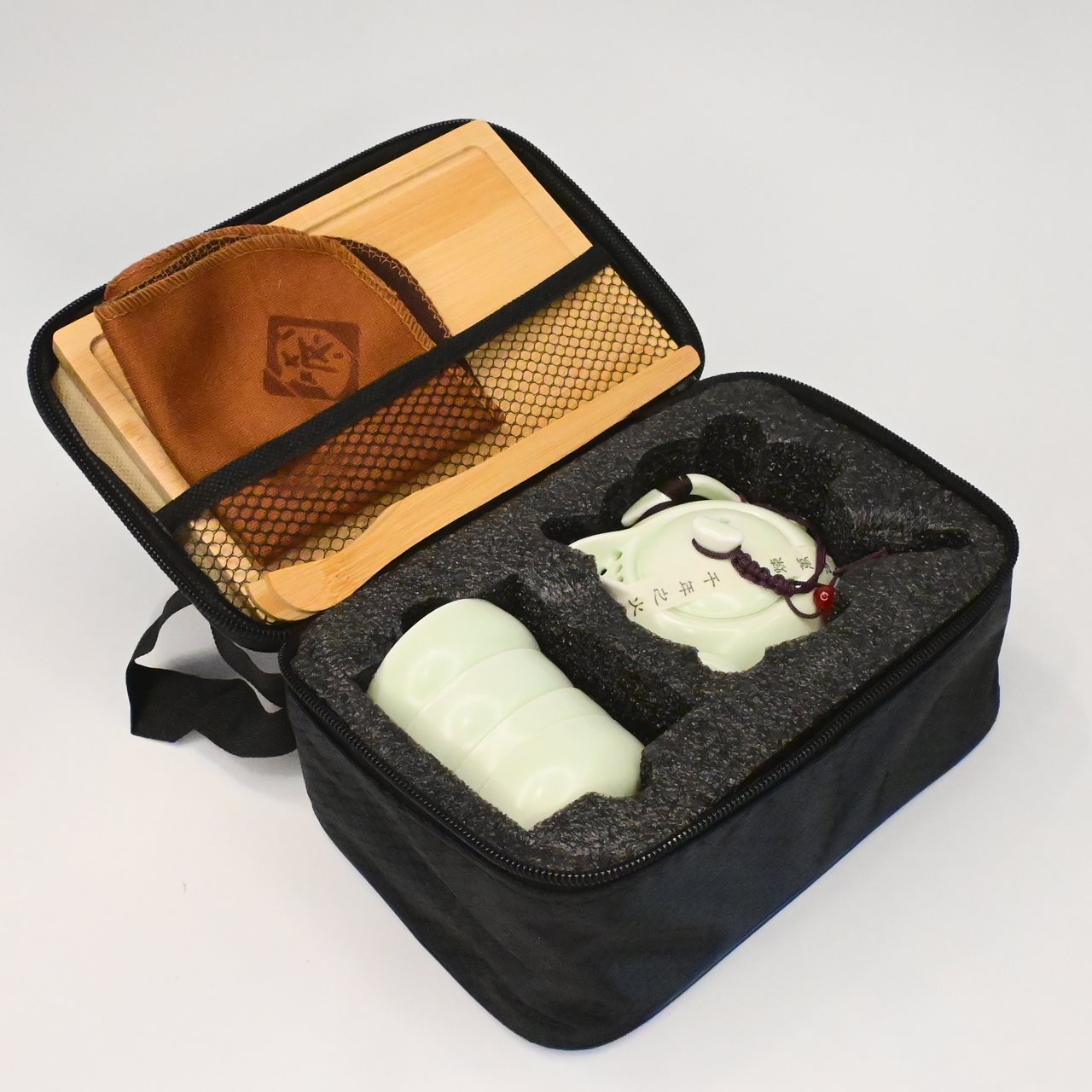• 시안색 7종 세트(차 트레이, 티 타월 클립 포함), 핸드 포트 및 여행용 가방