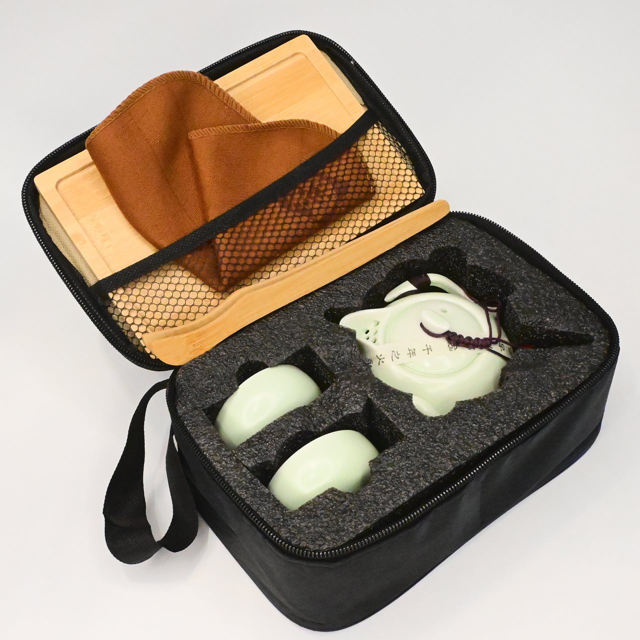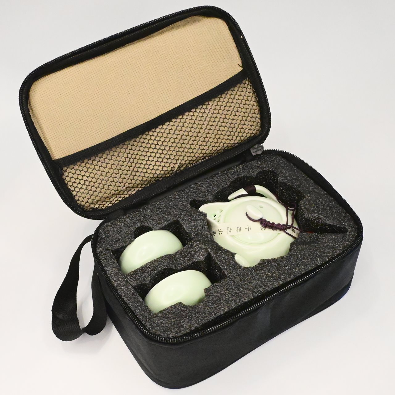 • 청록색 컵 2개와 냄비 1개, 휴대용 여행 가방(차 트레이 제외)