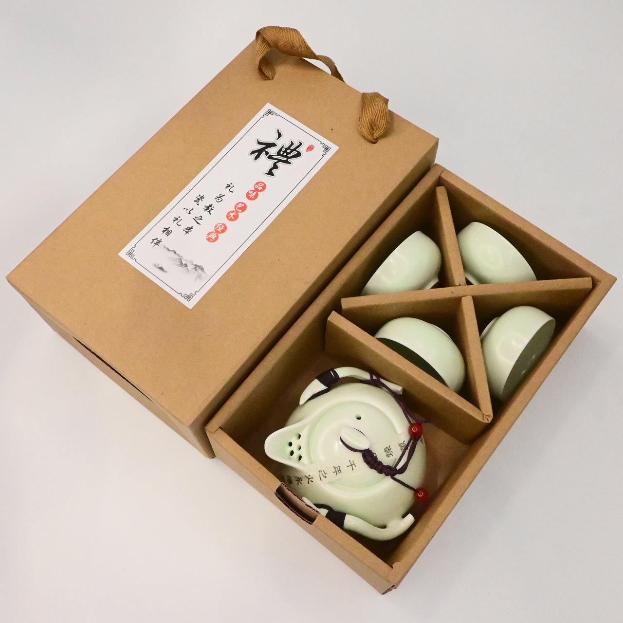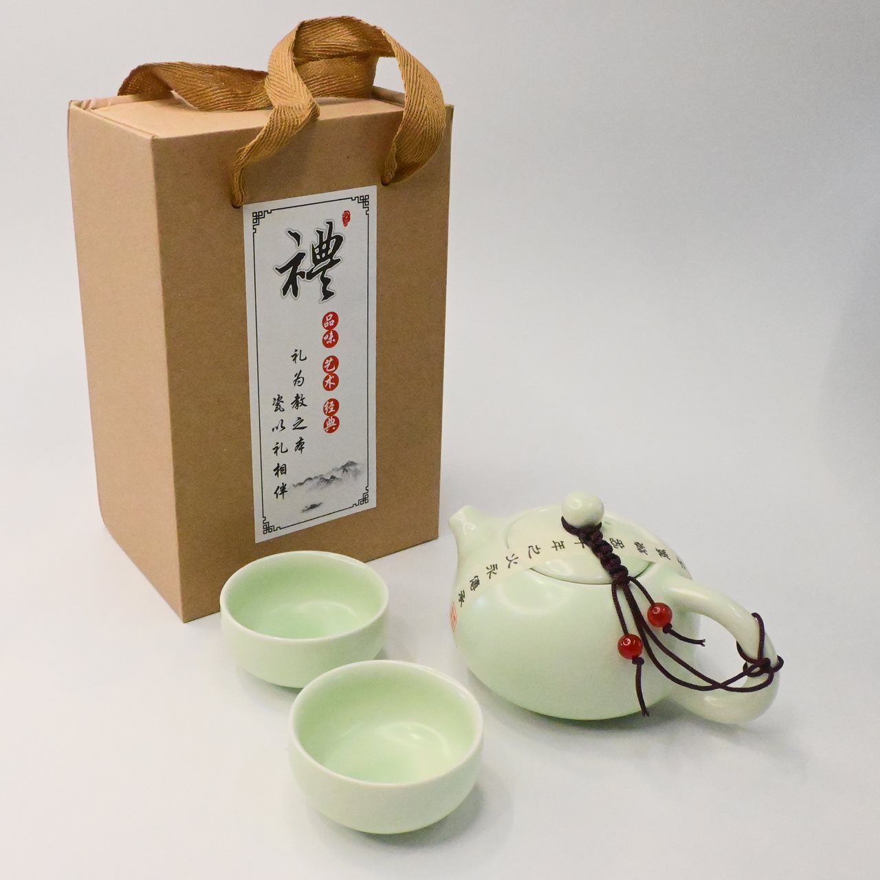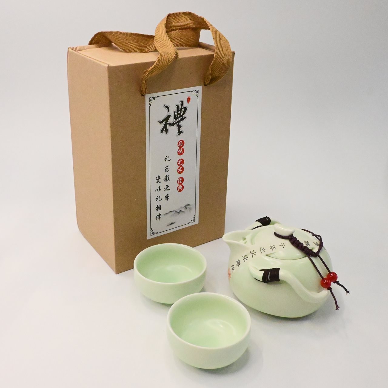 • 청록색 두 컵과 한 개의 Xishi 냄비 휴대용 상자 포장 프로모션 스타일