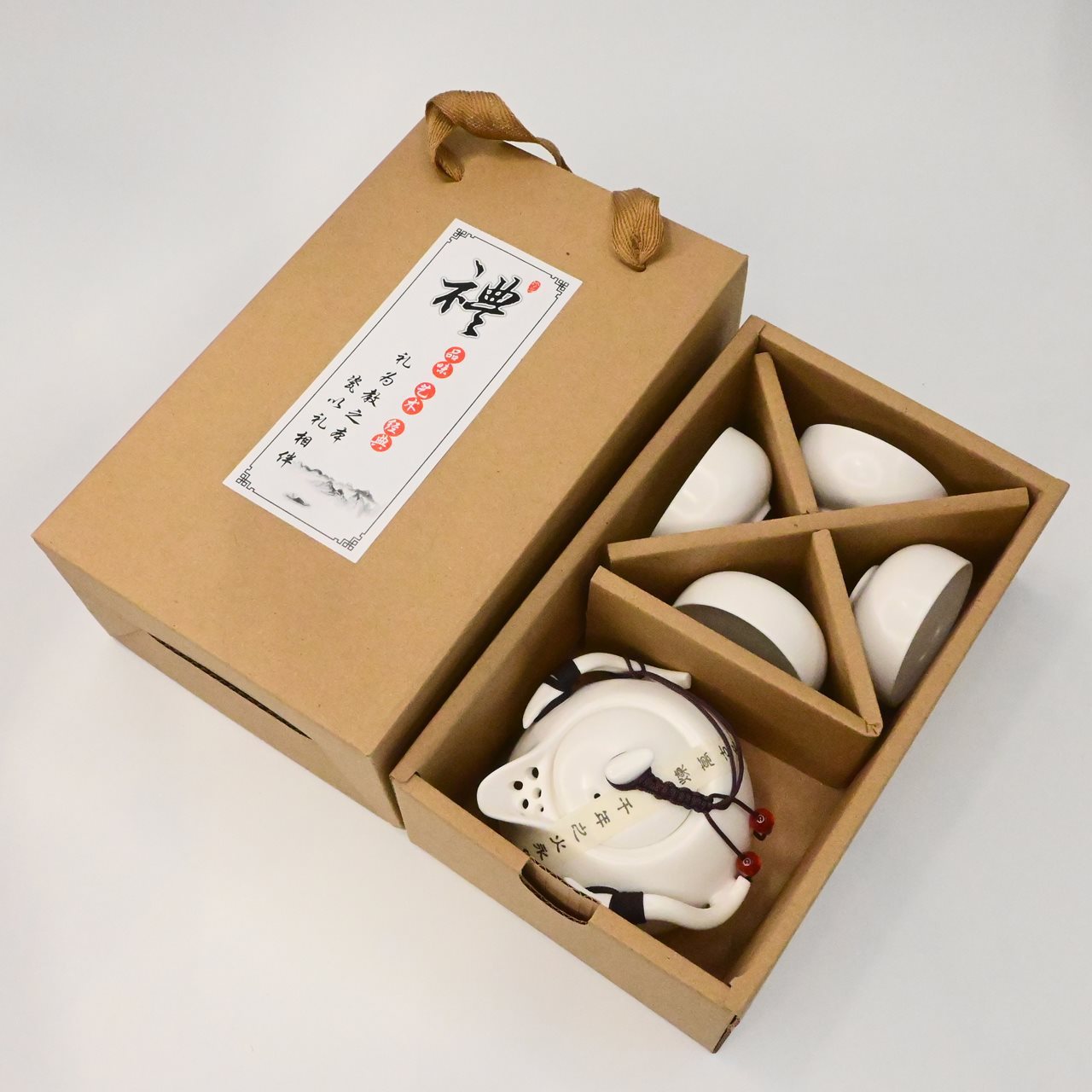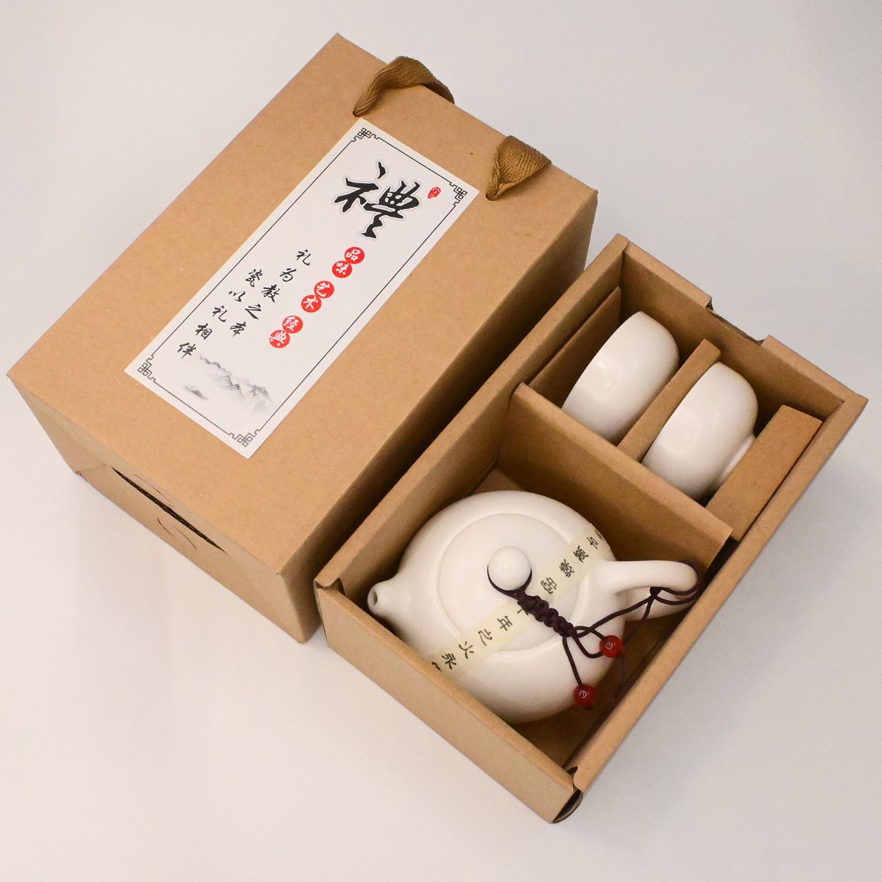 • 흰색 두 컵과 한 개의 Xishi 냄비 휴대용 상자 포장 프로모션 스타일