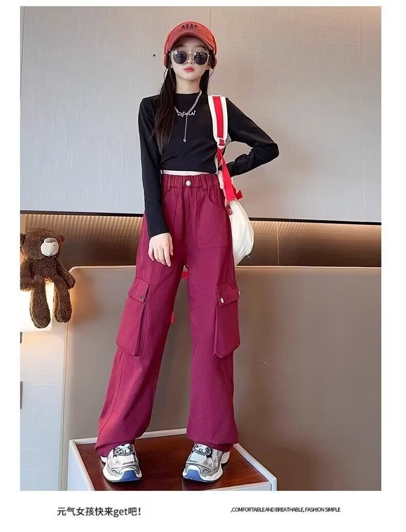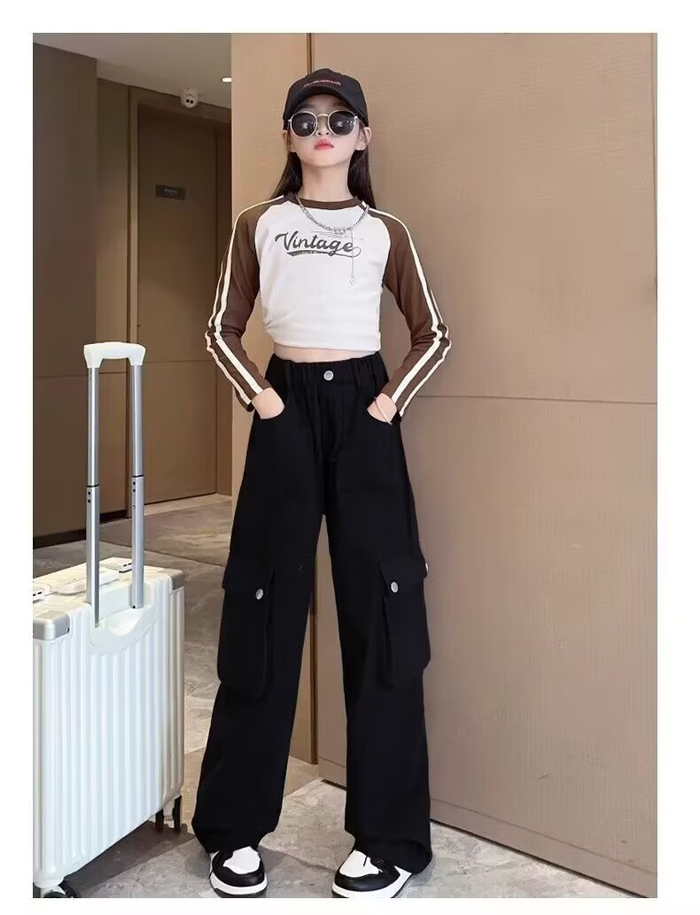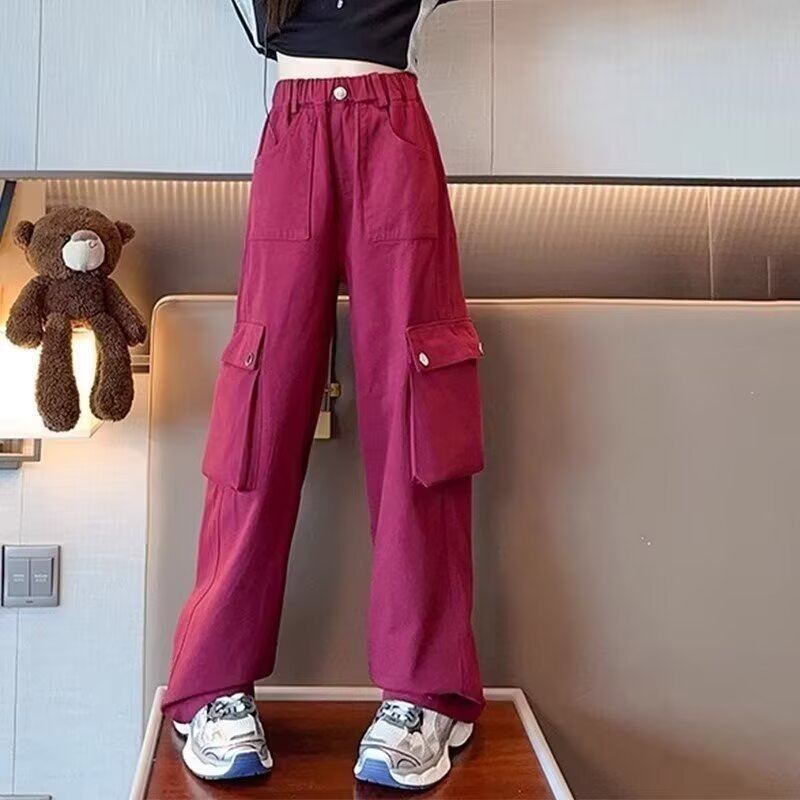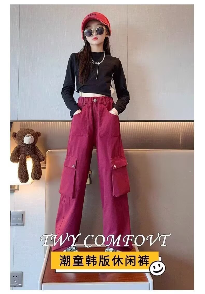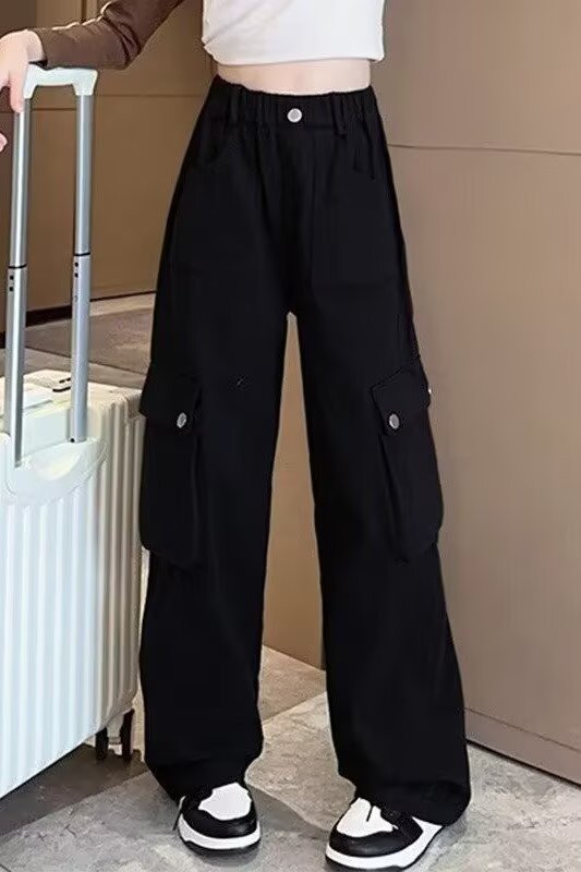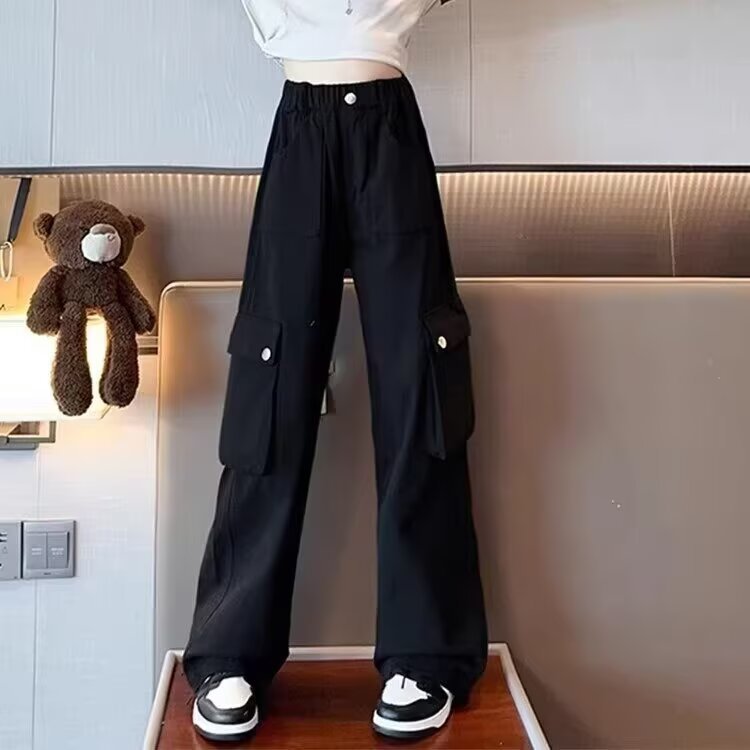 소녀의 봄과 가을 바지 아이들의 스트레이트-다리 와이드-다리 바지 여자 빅 키즈 중학교 학생 힙합 스트리트 댄스 트렌디 쿨웨어 크로크웨어 바지