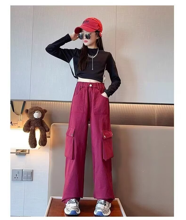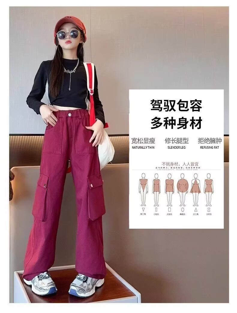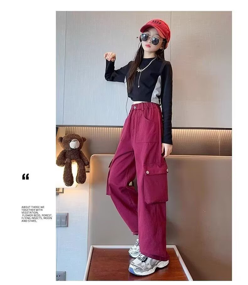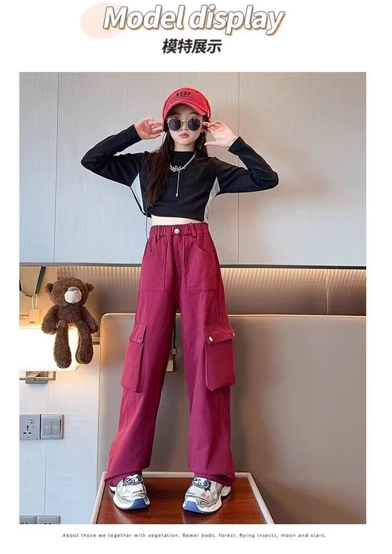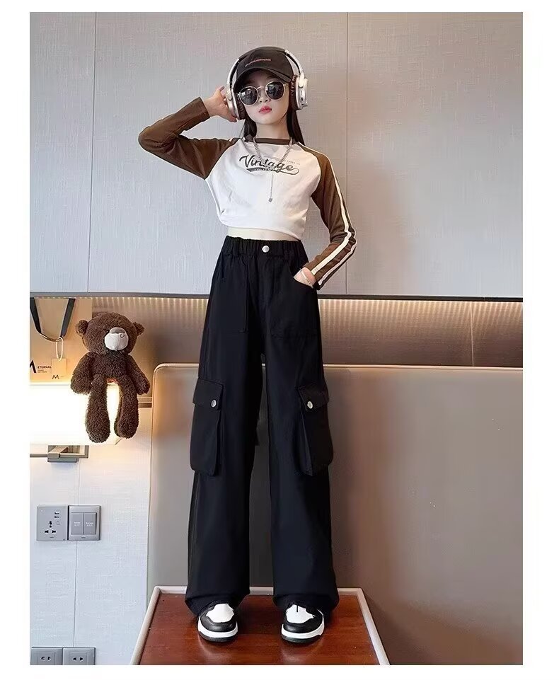 소녀의 봄과 가을 바지 아이들의 스트레이트-다리 와이드-다리 바지 여자 빅 키즈 중학교 학생 힙합 스트리트 댄스 트렌디 쿨웨어 크로크웨어 바지