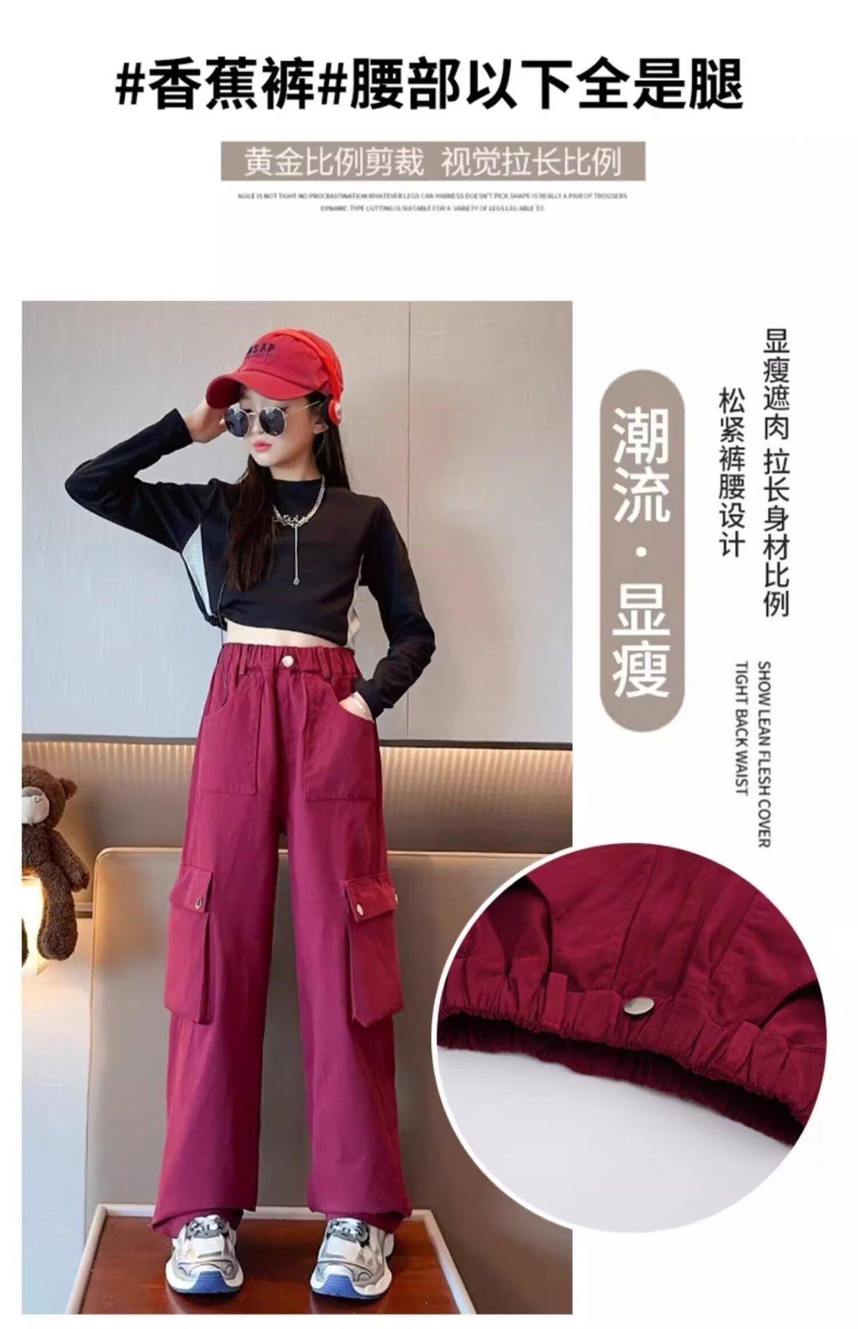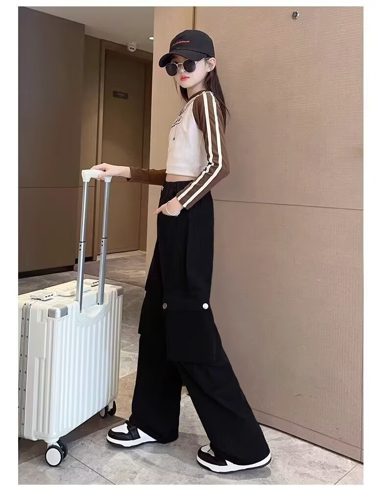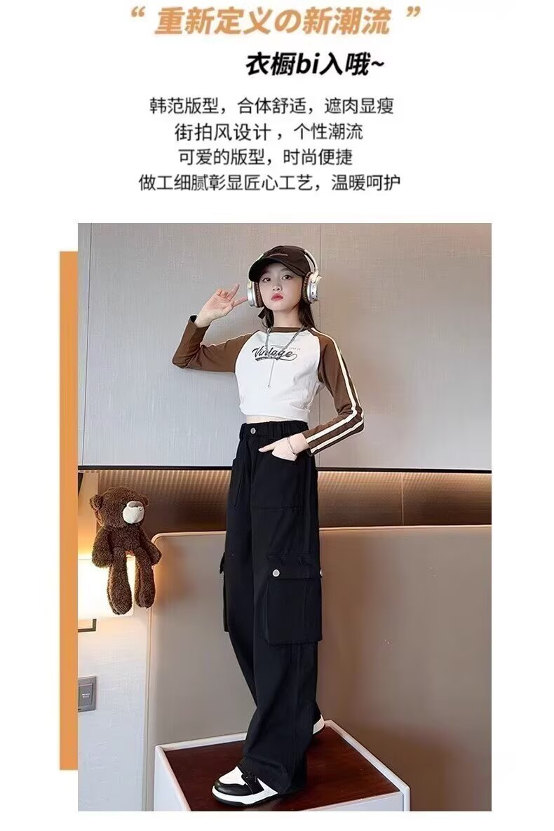 소녀의 봄과 가을 바지 아이들의 스트레이트-다리 와이드-다리 바지 여자 빅 키즈 중학교 학생 힙합 스트리트 댄스 트렌디 쿨웨어 크로크웨어 바지스토어 가기
