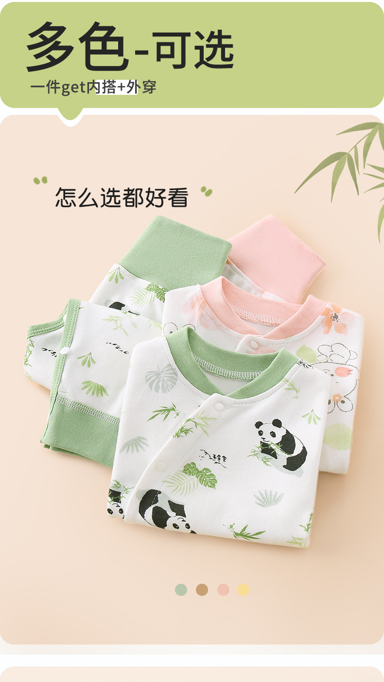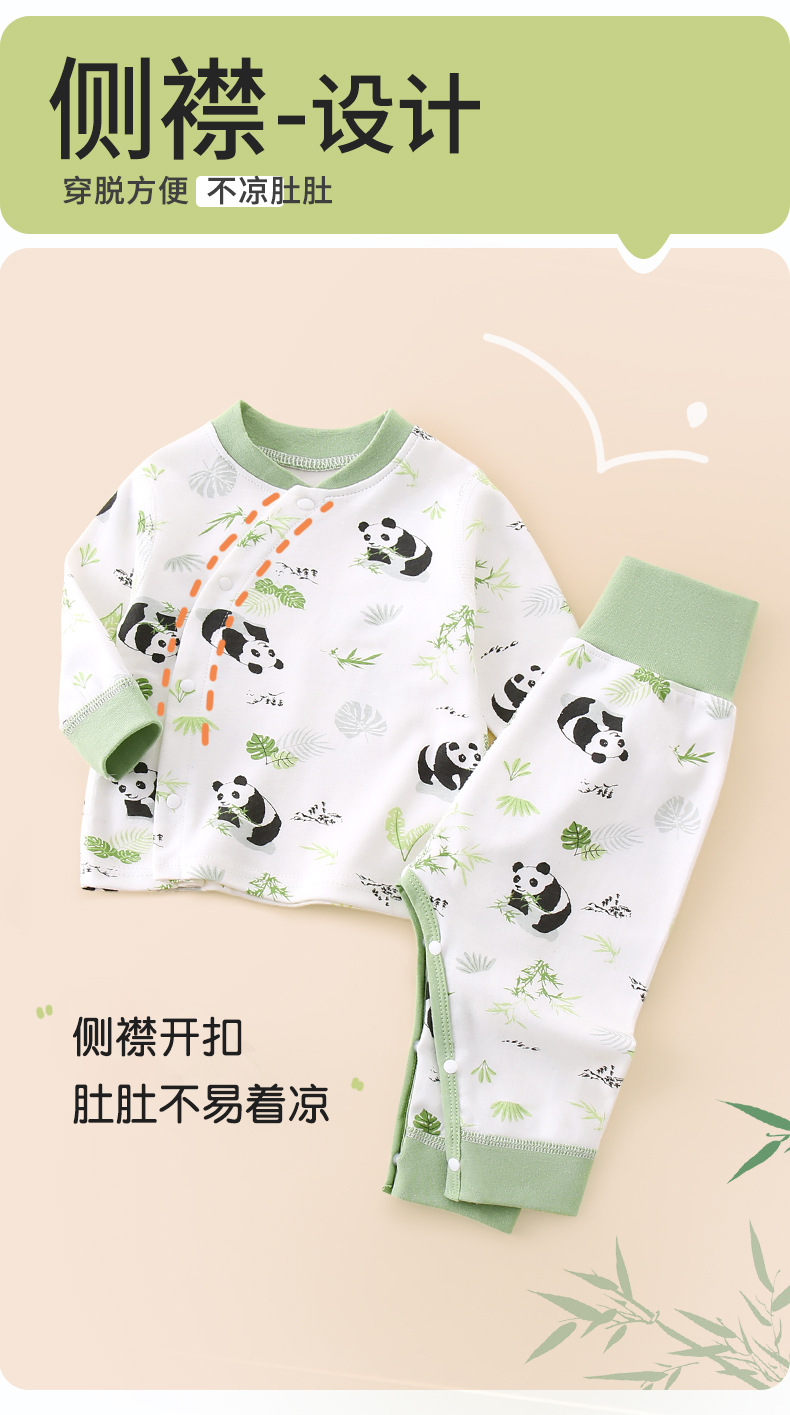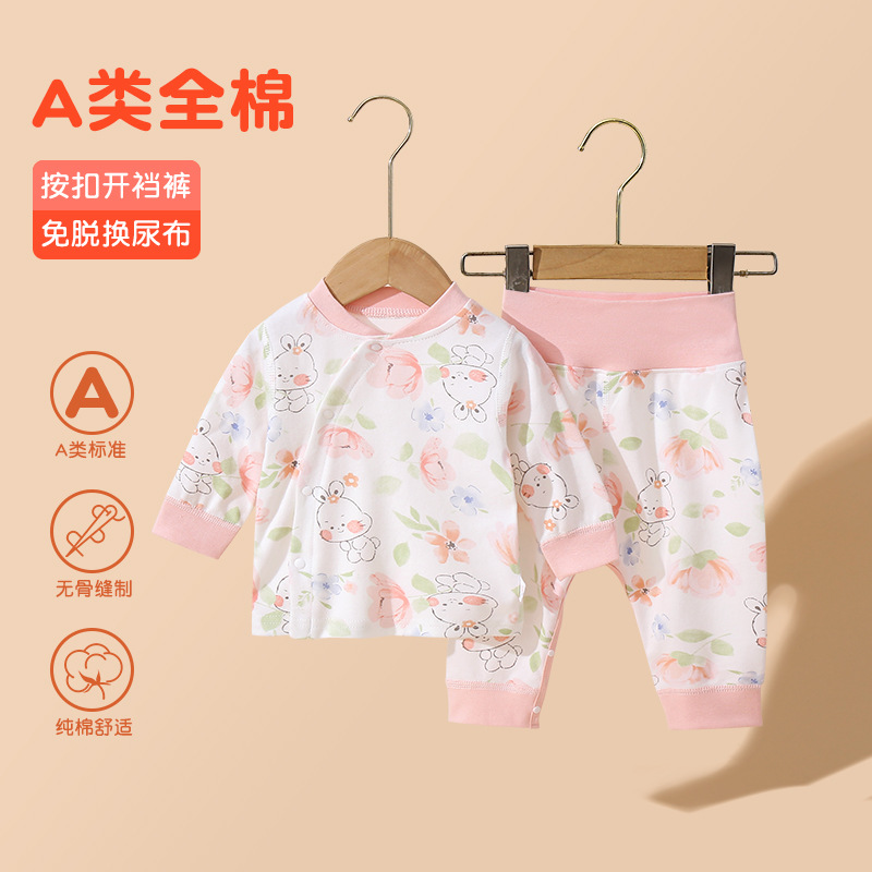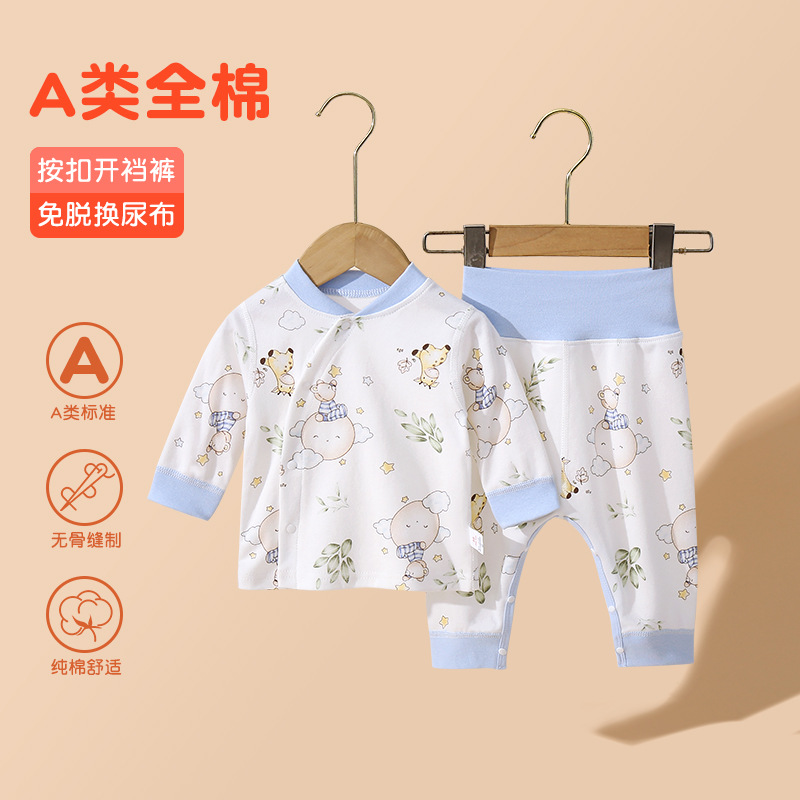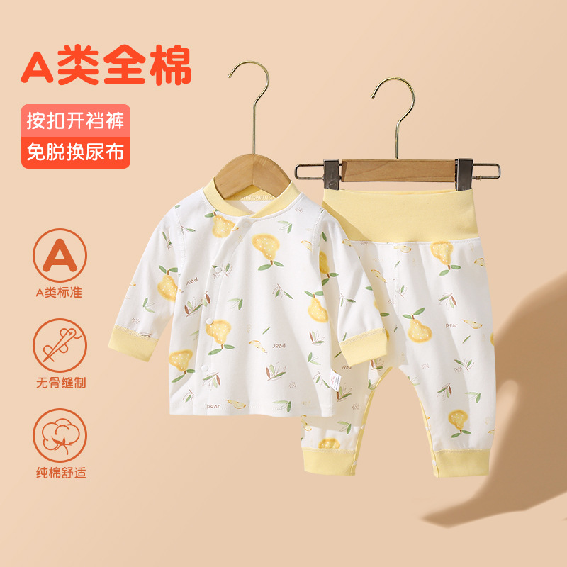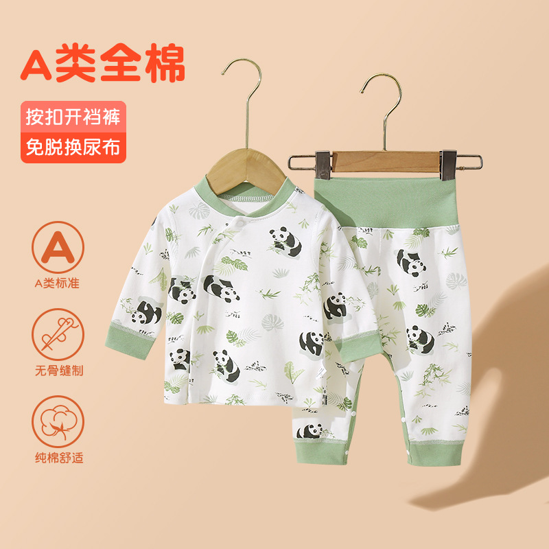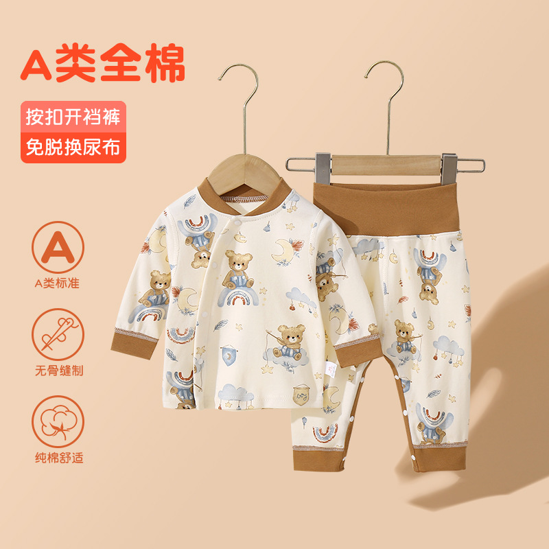 아기의 높은 허리 가을 옷과 바지 세트 순면 분할 속옷 아기의 배꼽 보호 뼈없는 기본 클래스 A 잠옷 세트스토어 가기