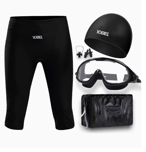 • 7점식 수영 트렁크 + 실리콘 수영 모자 + 수영 고글 + 귀마개 및 코 클립