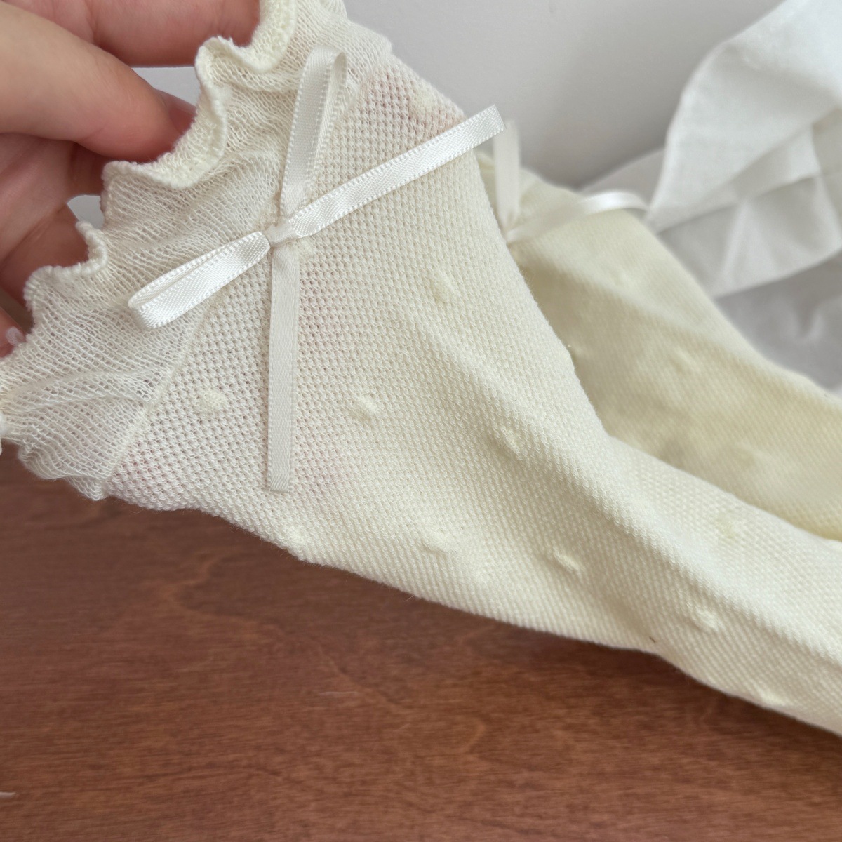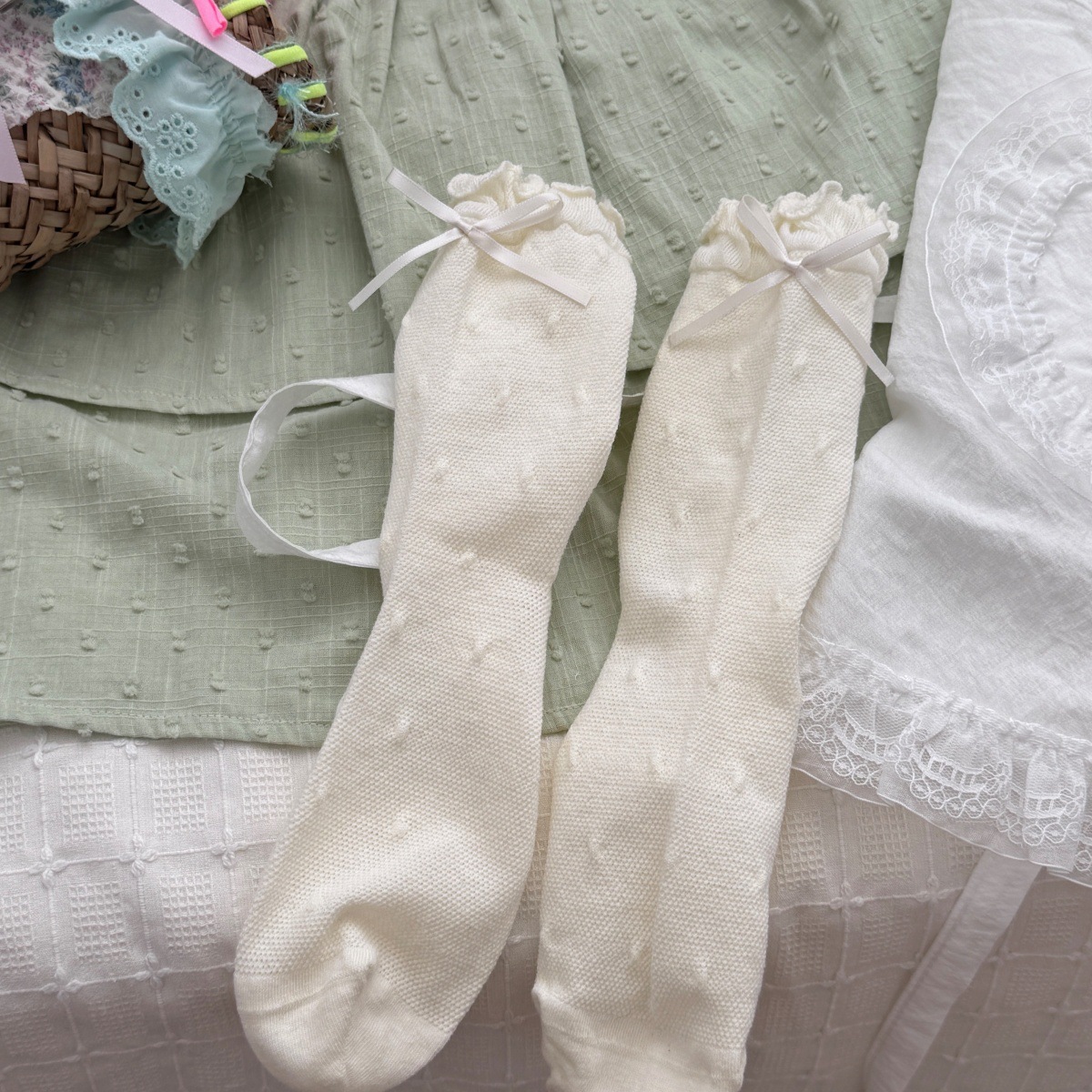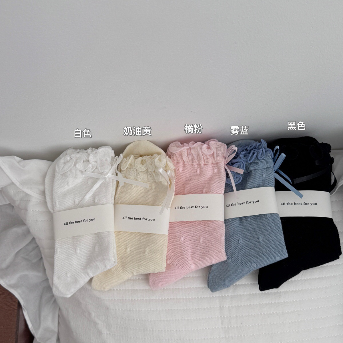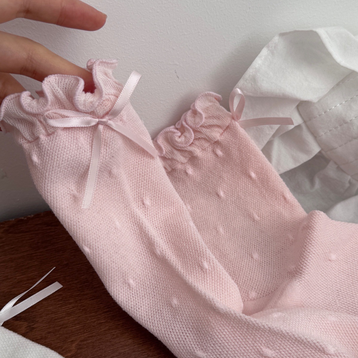 IOULOR 새로운 귀여운 우드 이어 미드 튜브 양말 봄과 여름 활 웨이브 도트 코튼 양말 땀 여성용 통기성 뼈없는 양말 흡수