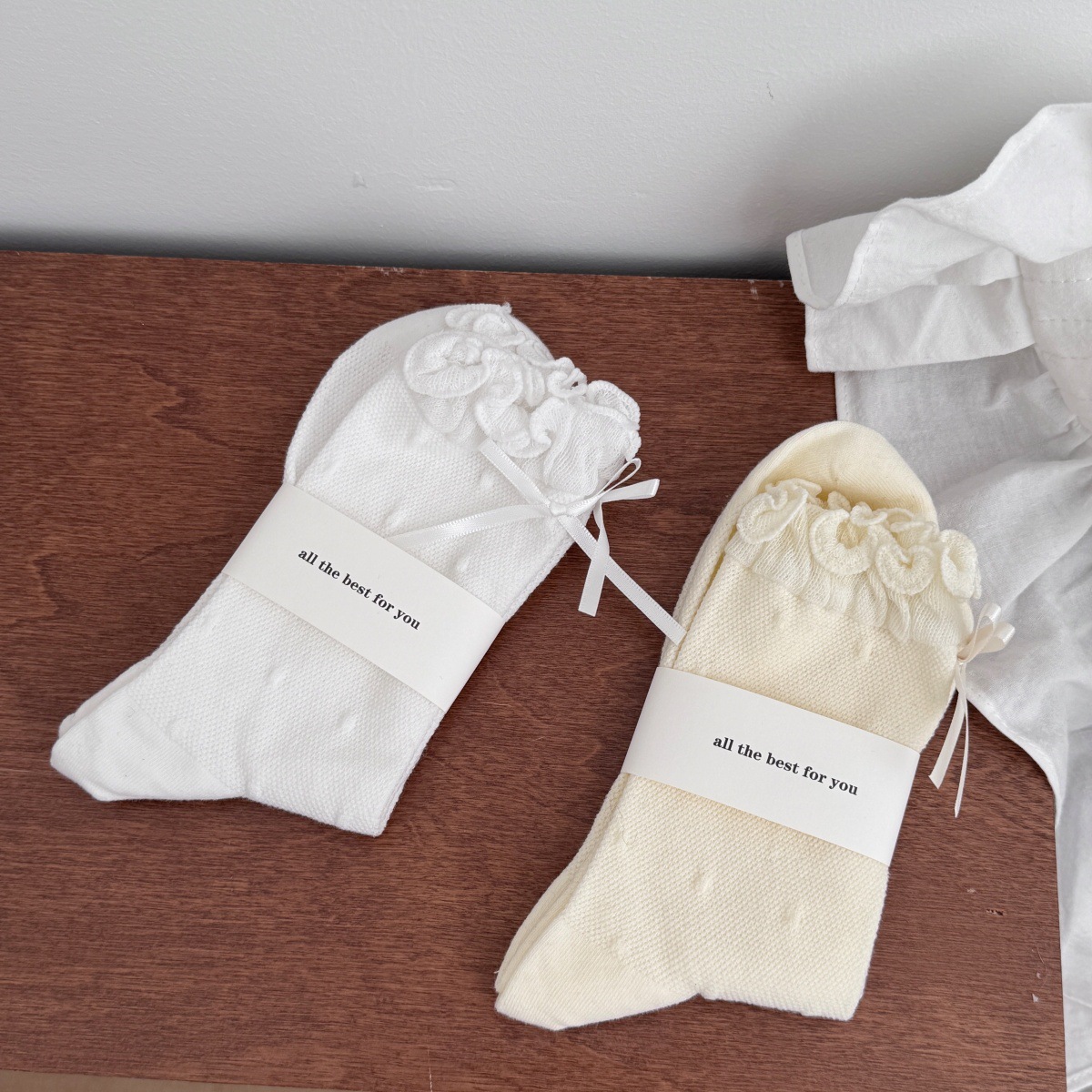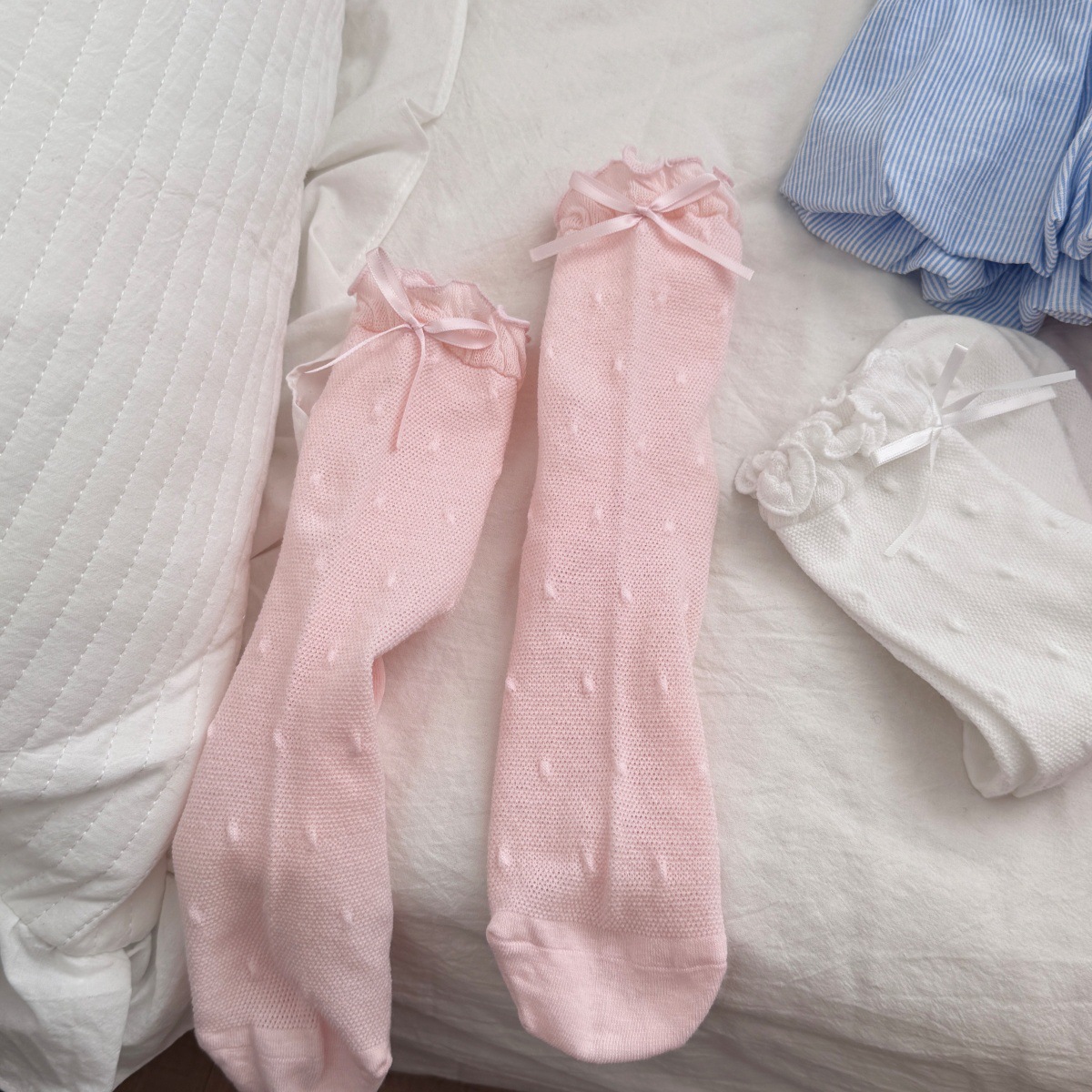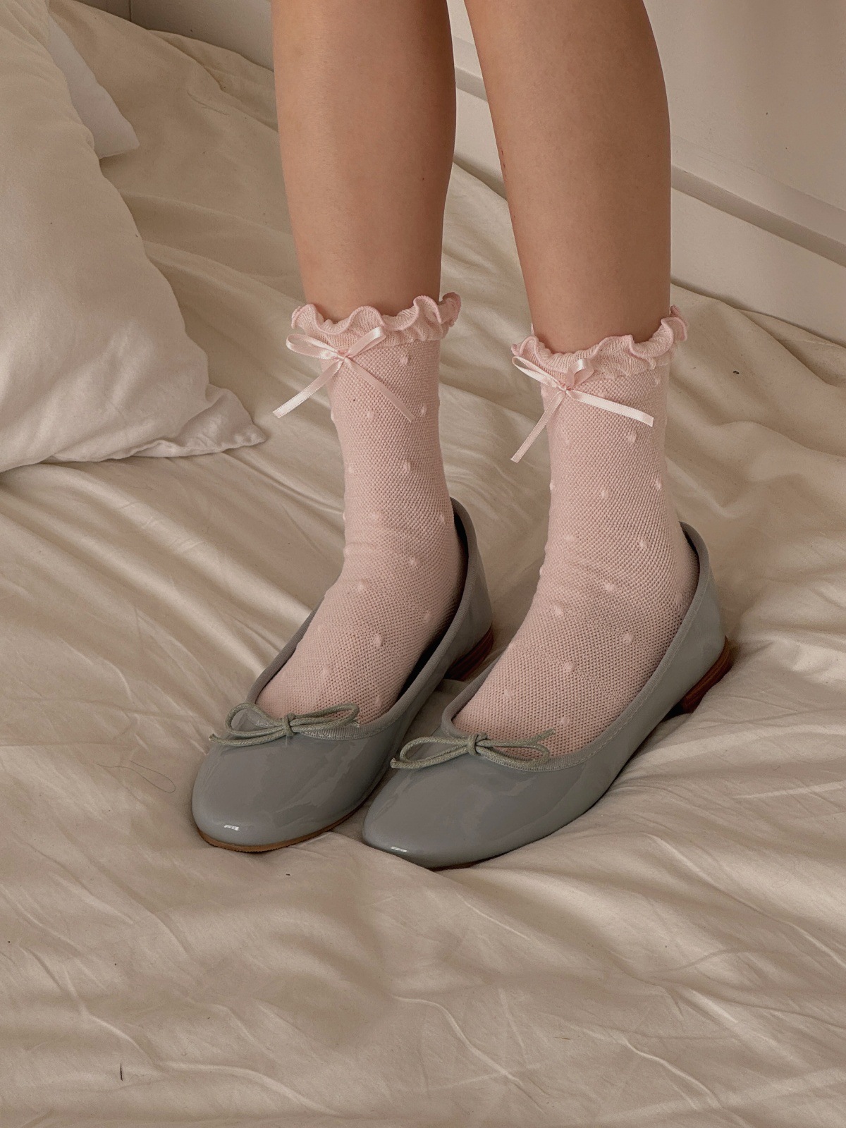 IOULOR 새로운 귀여운 우드 이어 미드 튜브 양말 봄과 여름 활 웨이브 도트 코튼 양말 땀 여성용 통기성 뼈없는 양말 흡수