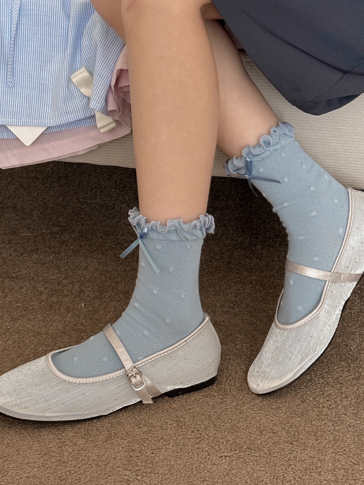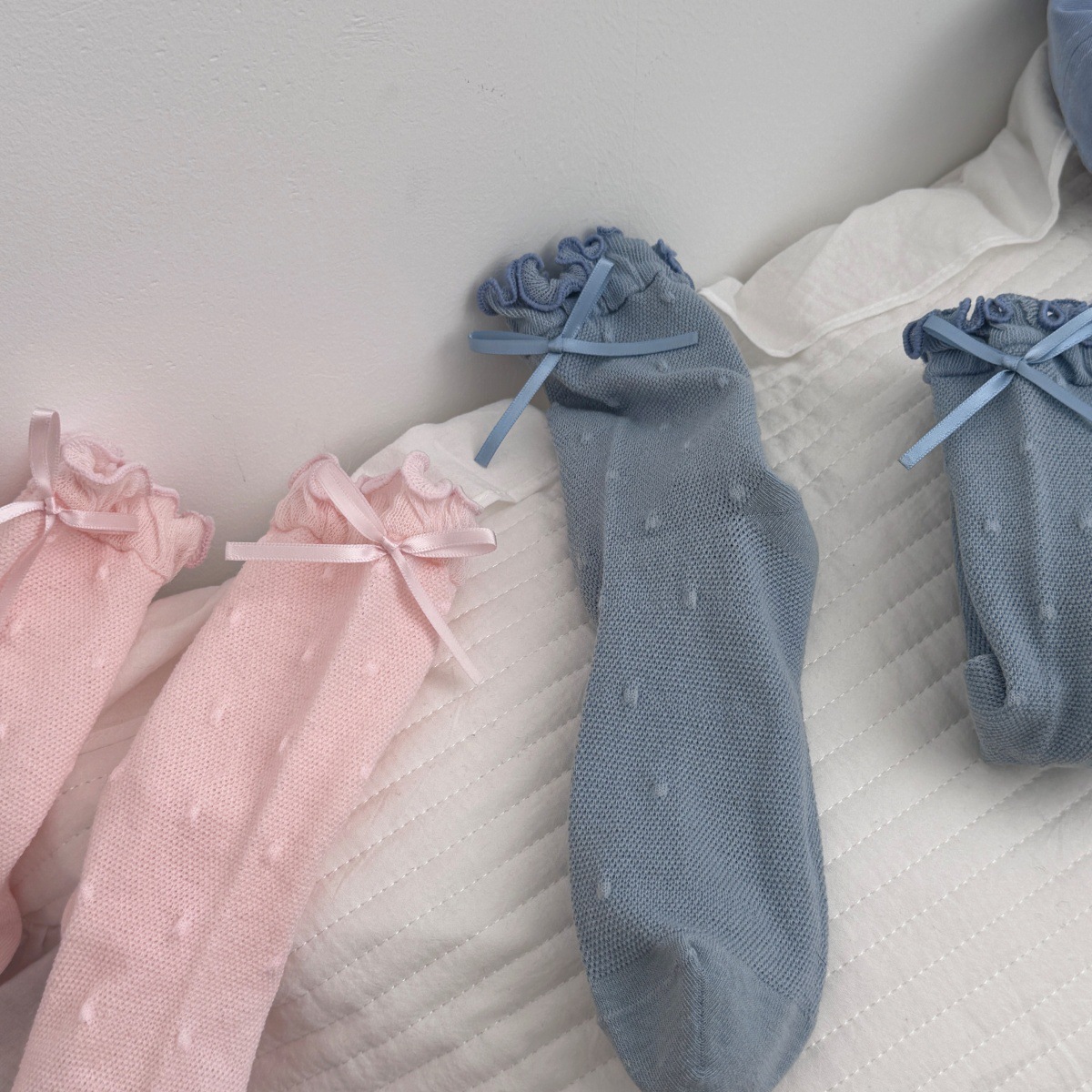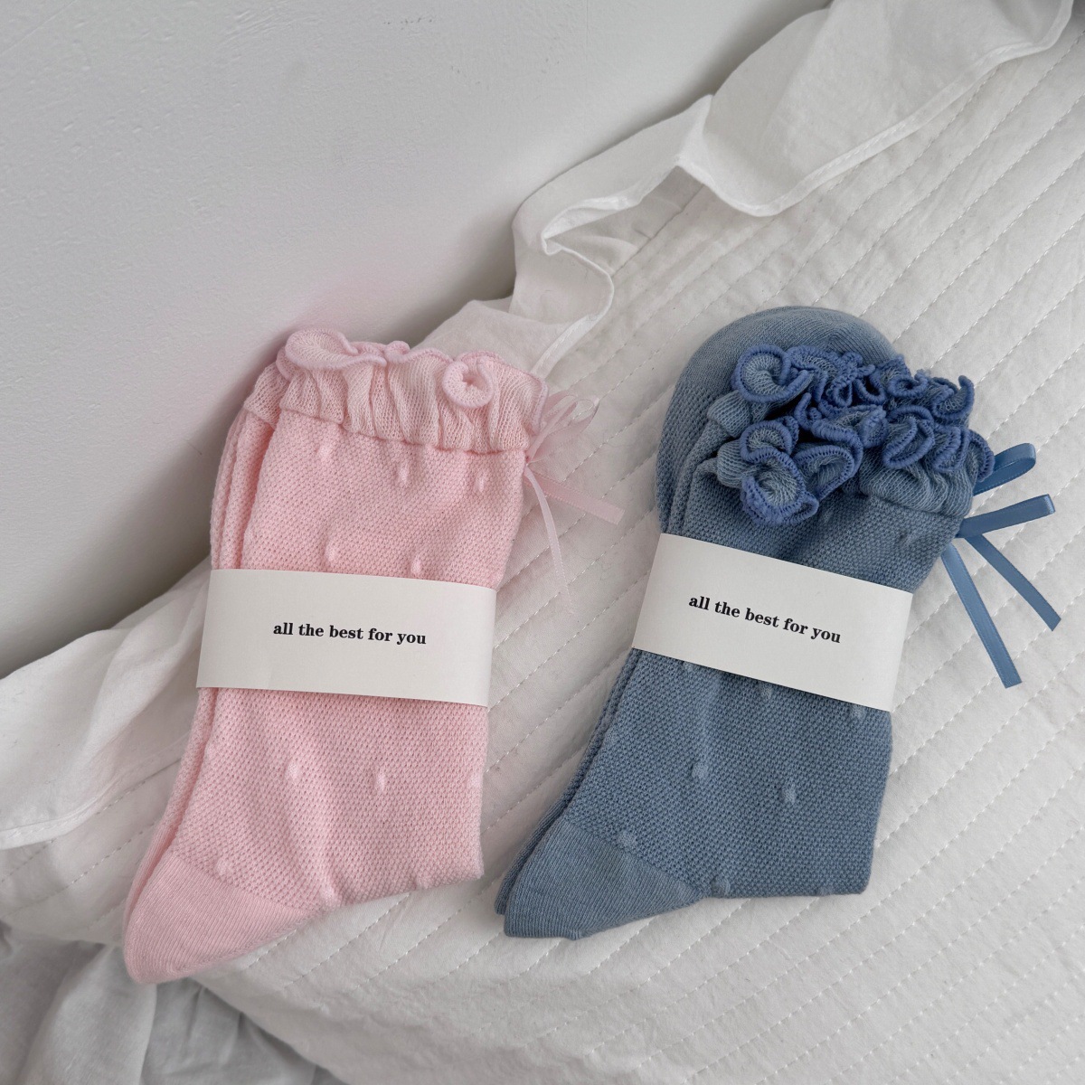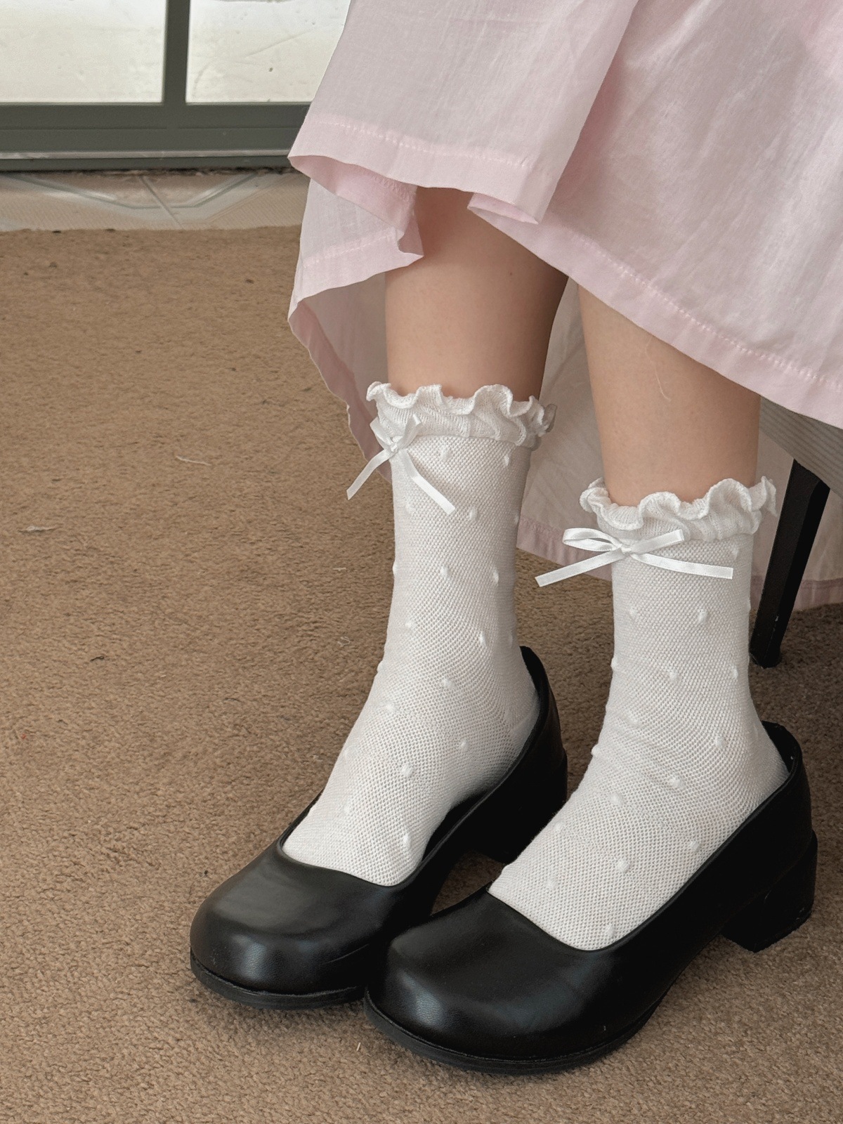 IOULOR 새로운 귀여운 우드 이어 미드 튜브 양말 봄과 여름 활 웨이브 도트 코튼 양말 땀 여성용 통기성 뼈없는 양말 흡수