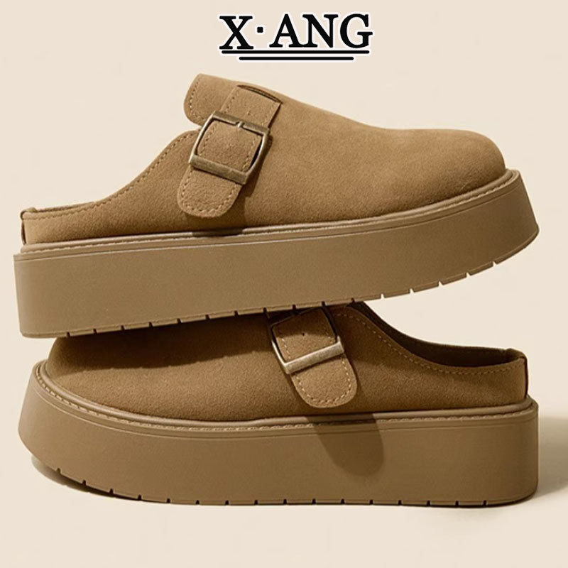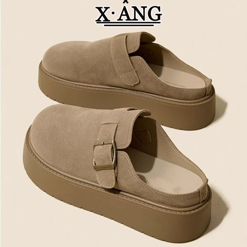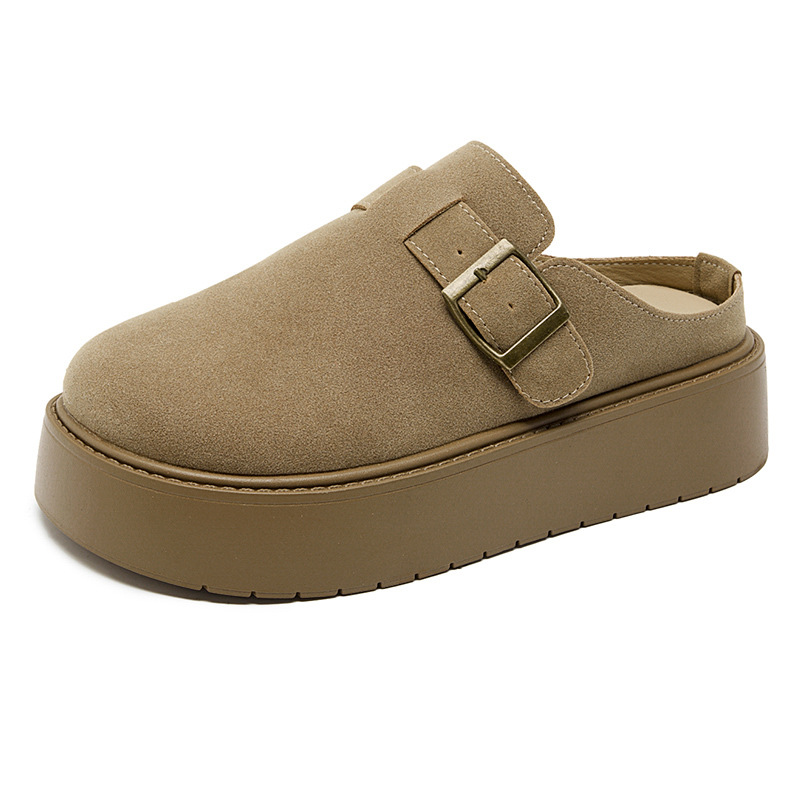 Cowhide Birkenneth 신발 여성용 두꺼운 바닥 발가락 하프 슬리퍼 외부 착용 2025 새로운 슬립 온 게으른 싱글 레이어 신발