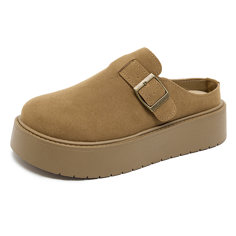 Cowhide Birkenneth 신발 여성용 두꺼운 바닥 발가락 하프 슬리퍼 외부 착용 2025 새로운 슬립 온 게으른 싱글 레이어 신발스토어 가기