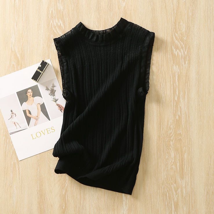2024 새로운 아이스 실크 카미 솔 여성 내부 나무 레이스 민소매 탑 할로우 아웃 착용 베이스 셔츠 여성스토어 가기