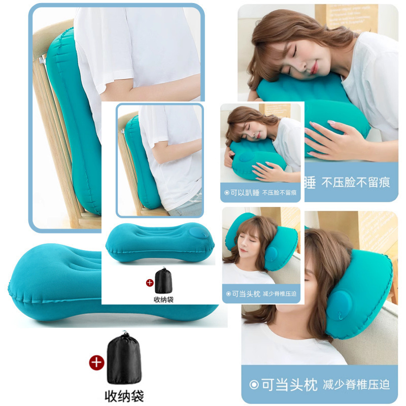 여행 필요한 유물 휴대용 프레스 팽창식 베개 접이식 야외 수면 베개 항공기 허리 쿠션 점심 휴식 슬리핑 베개