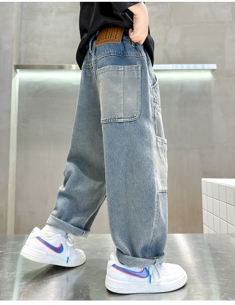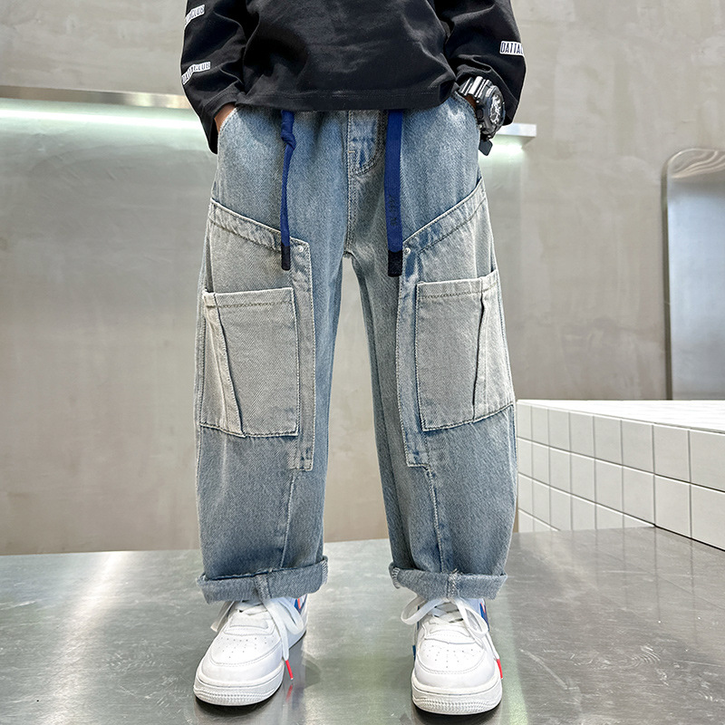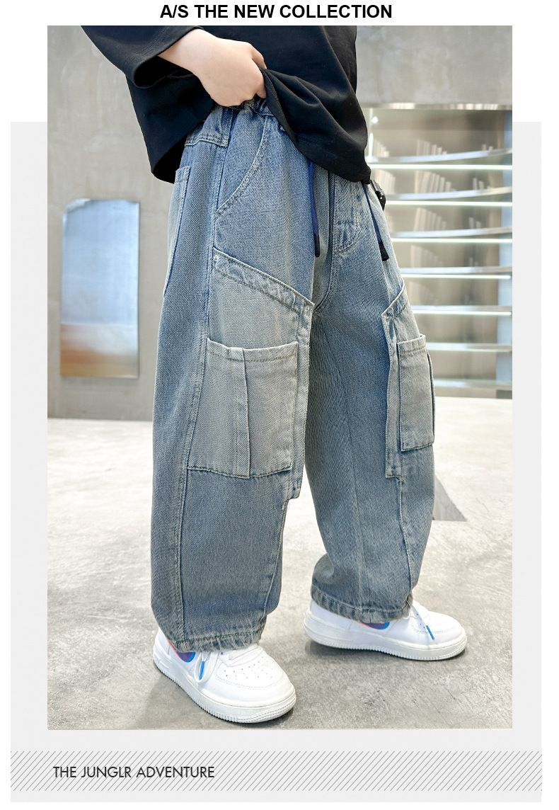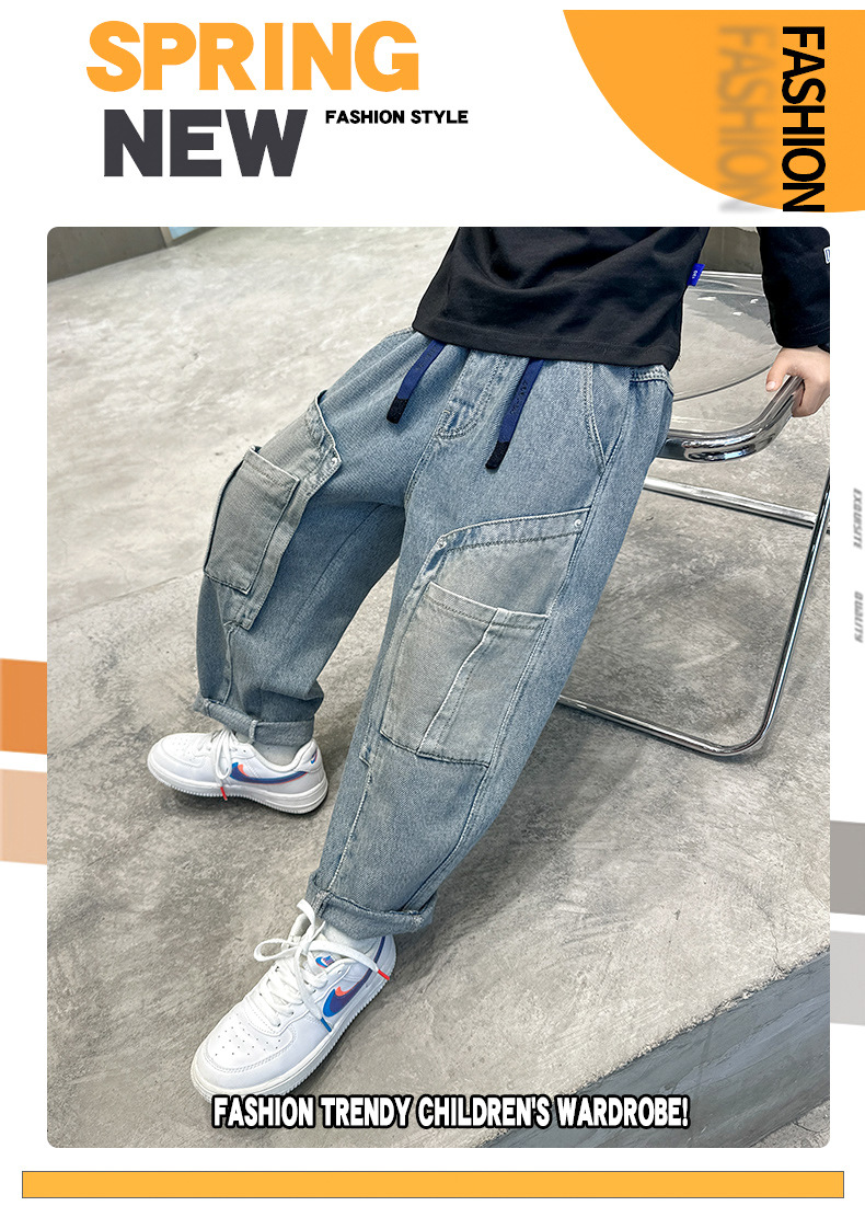 아동복 소년 봄 바지 2025 새로운 봄 가을 중대형 어린이 청바지 봄 소년의 유행 바지스토어 가기