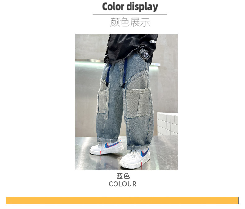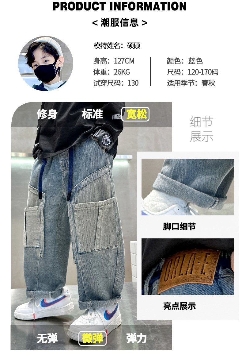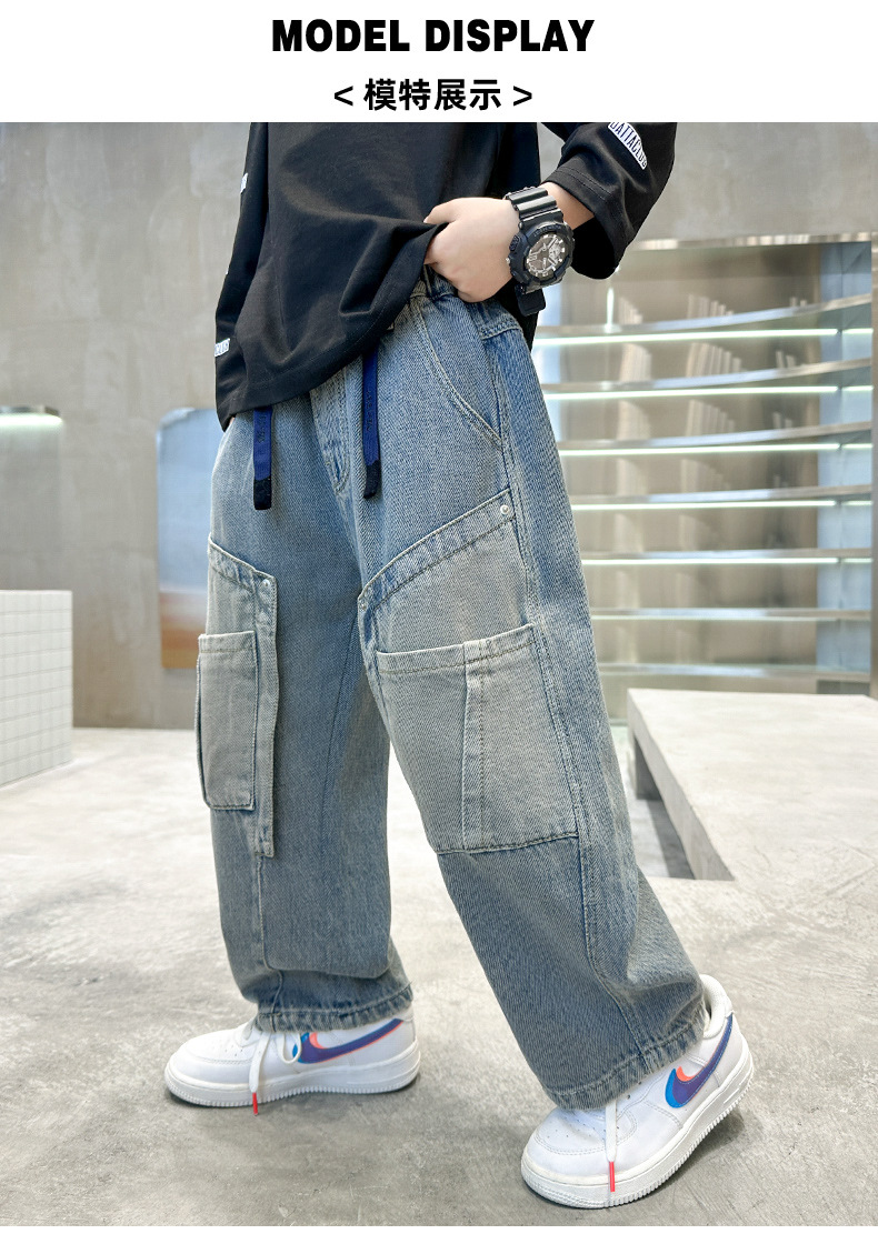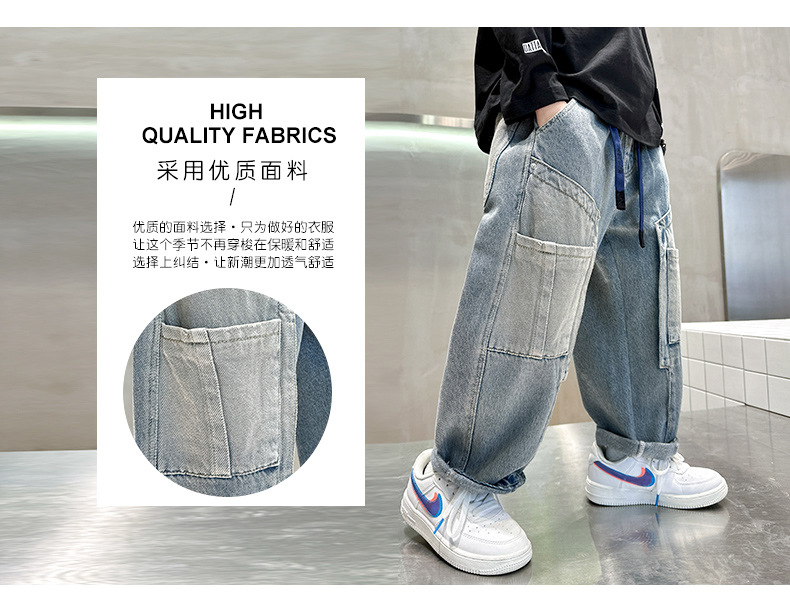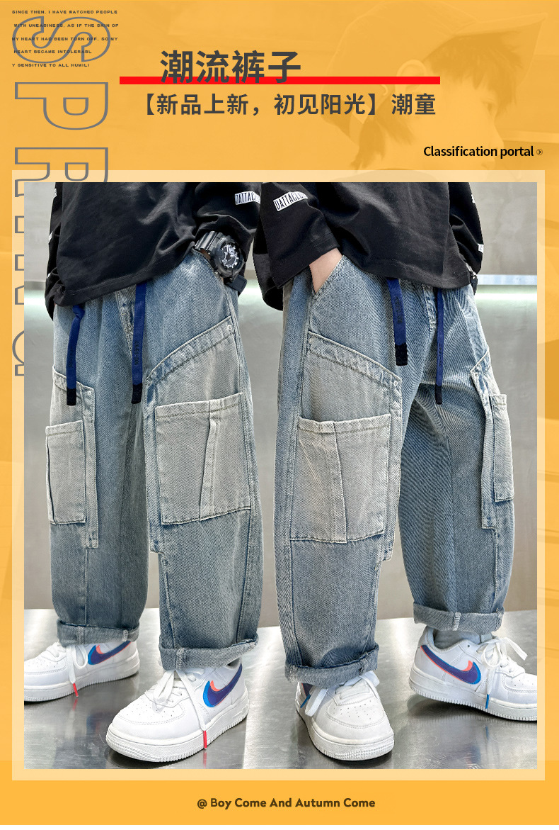 아동복 소년 봄 바지 2025 새로운 봄 가을 중대형 어린이 청바지 봄 소년의 유행 바지스토어 가기