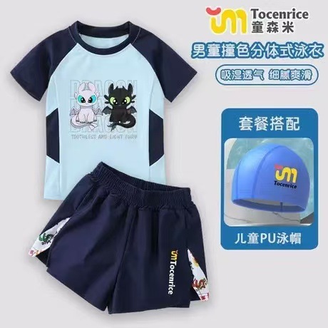 우주 늑대 살해 어린이 수영복 소년 분할 태양 방지 수영복 빅 보이 십대 수영 트렁크 세트스토어 가기