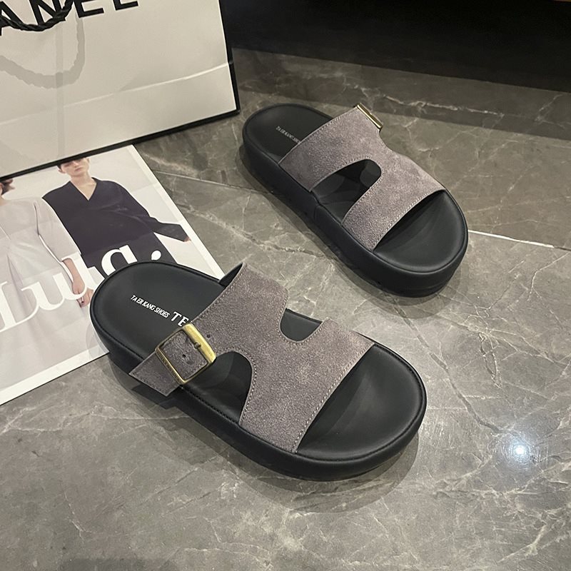 신발 여름 소프트 단독 슬리퍼 외부 샌들 인터넷 인기 여성 센스 슈퍼 인기 패션 새로운 두꺼운 플랫폼 신발 2025 그레이