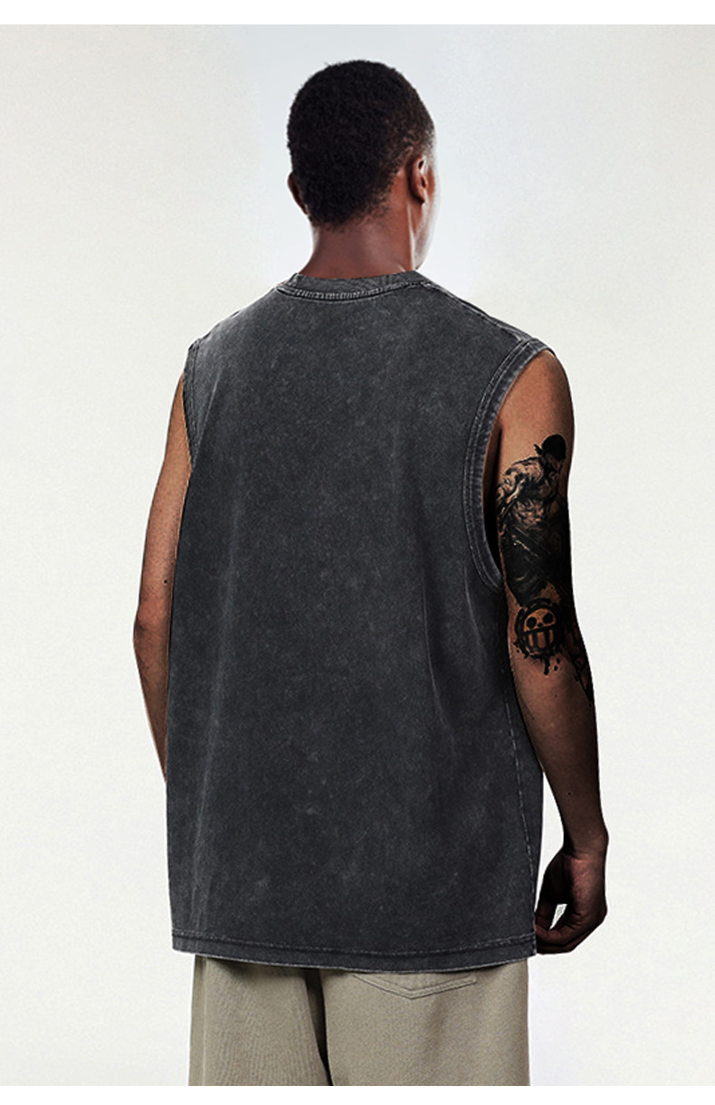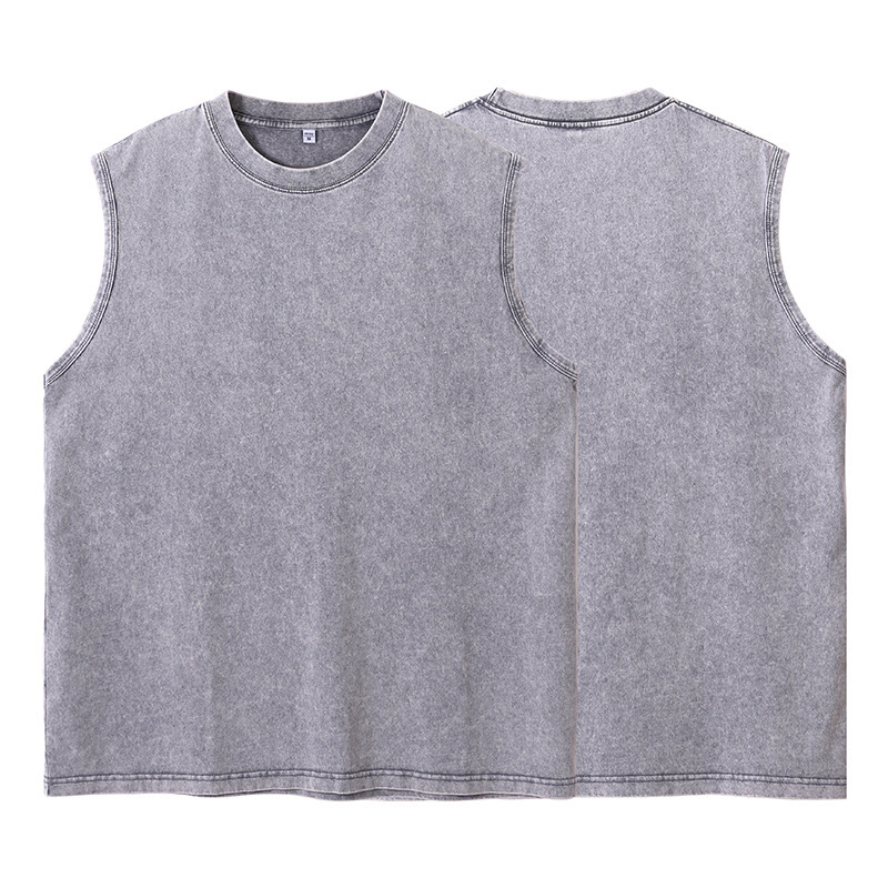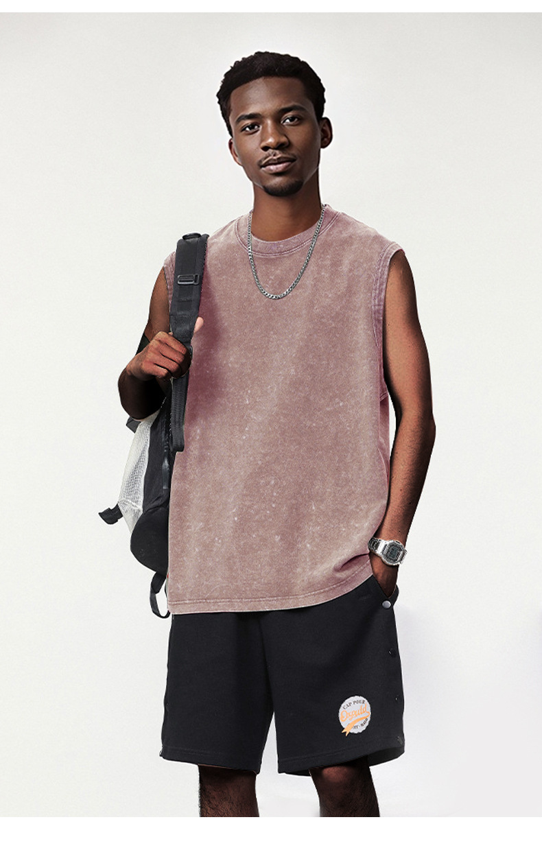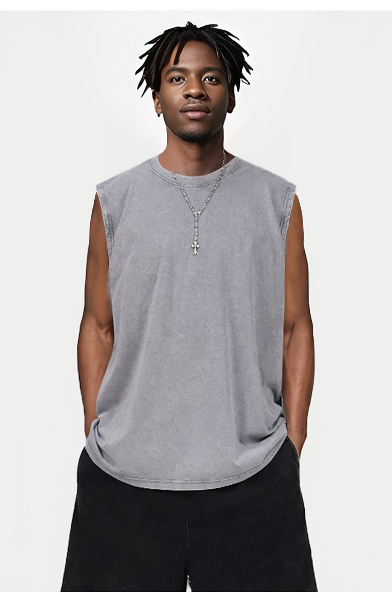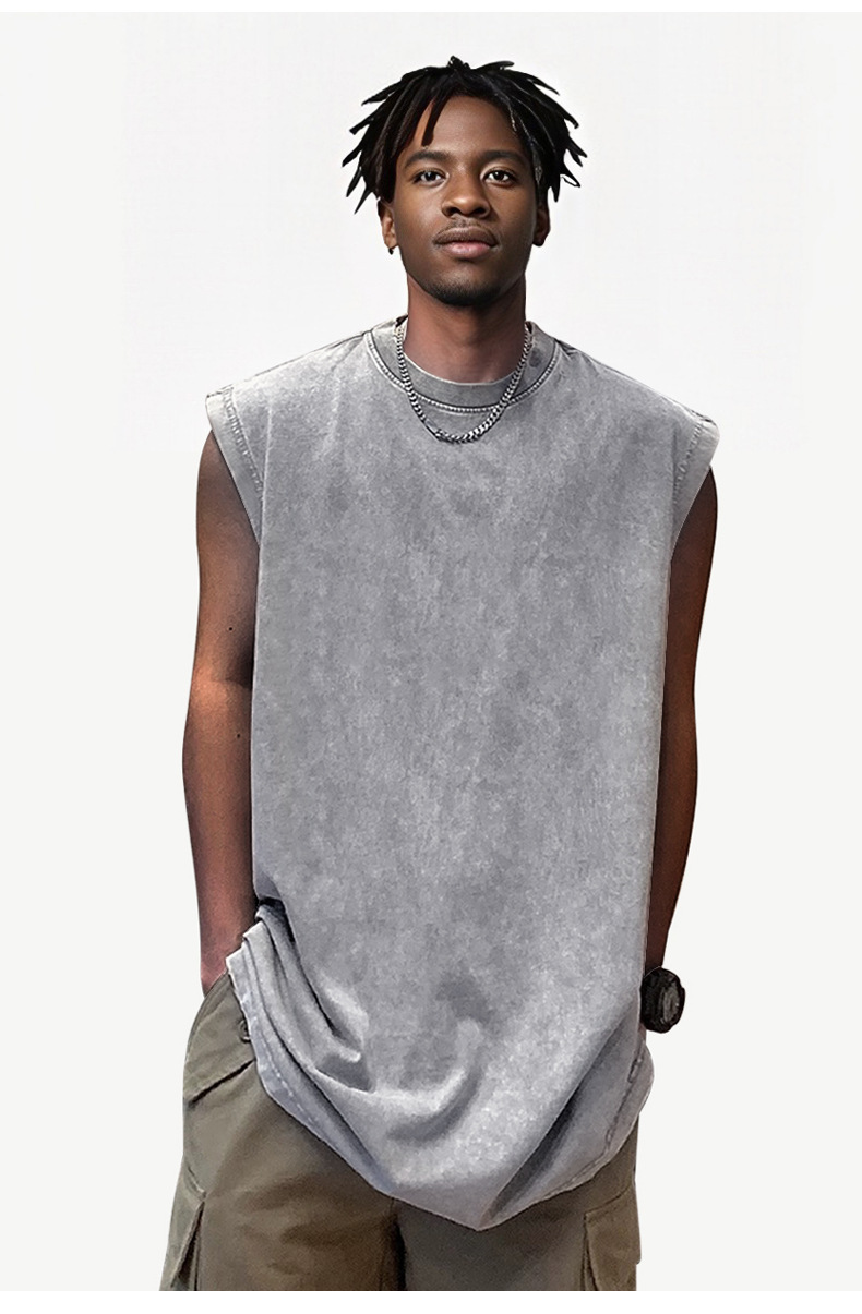 스트리트 패션 조끼 캐주얼 남성용 피트니스 스포츠 루즈핏 민소매 이너웨어 240g 빈티지 조끼 세트 다용도스토어 가기