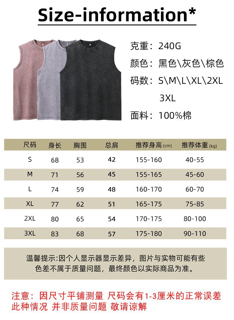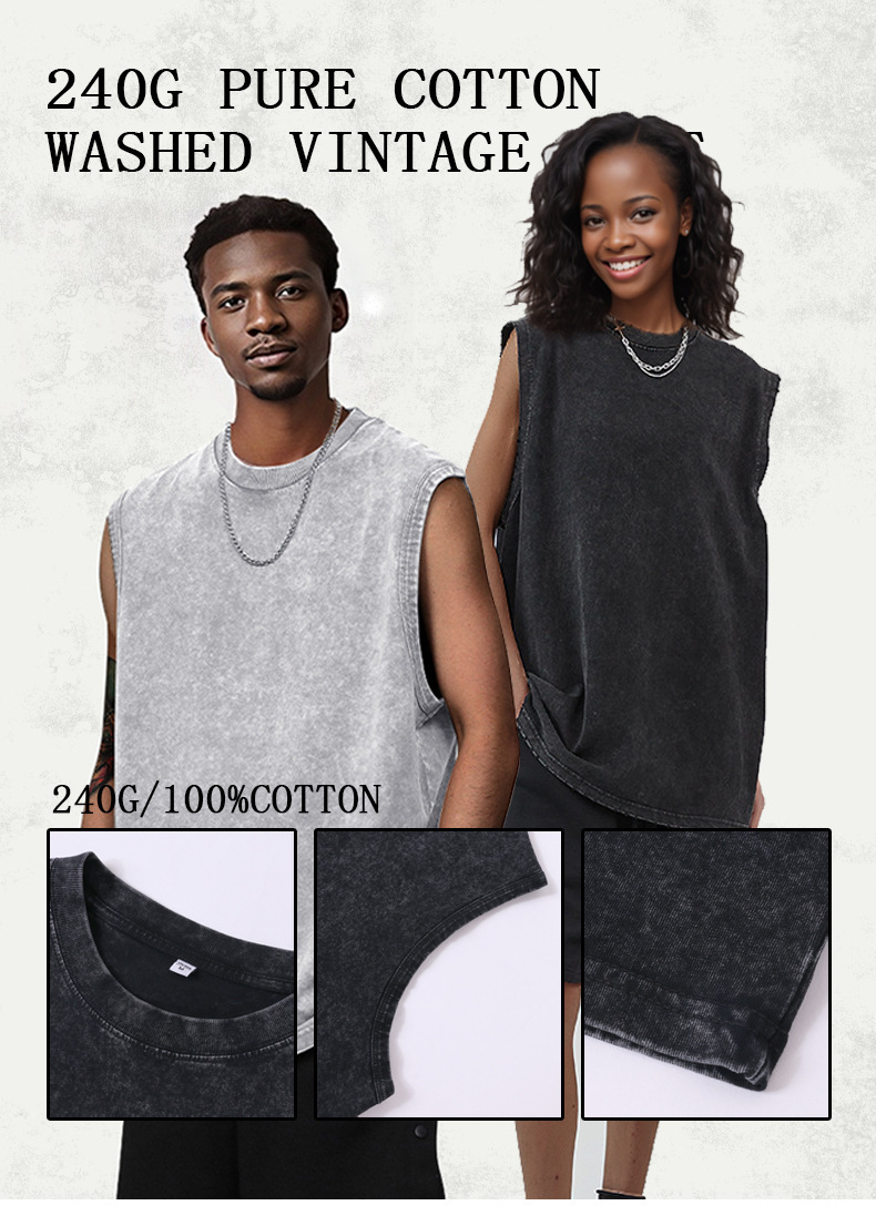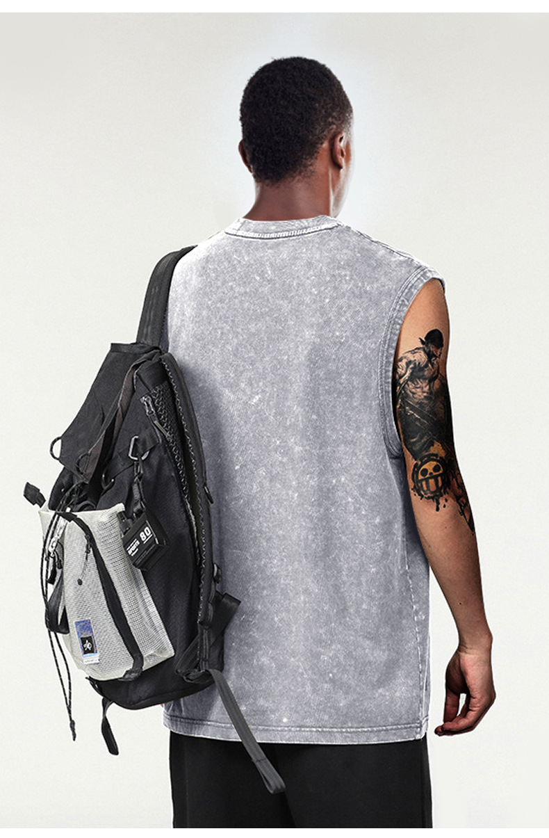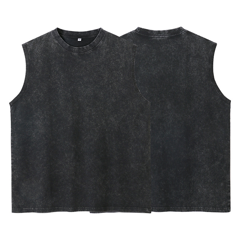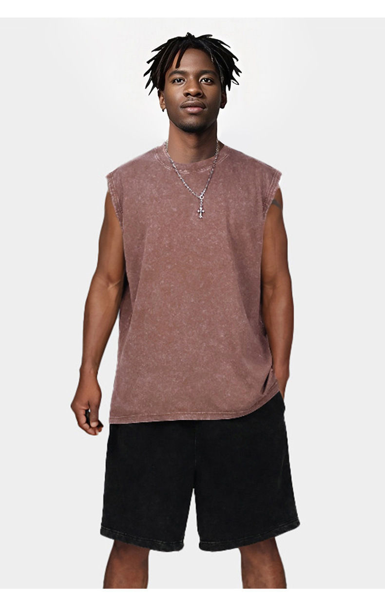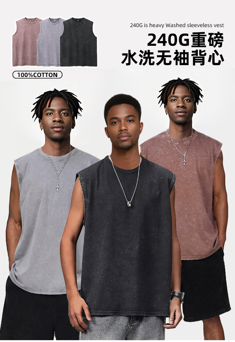 스트리트 패션 조끼 캐주얼 남성용 피트니스 스포츠 루즈핏 민소매 이너웨어 240g 빈티지 조끼 세트 다용도스토어 가기