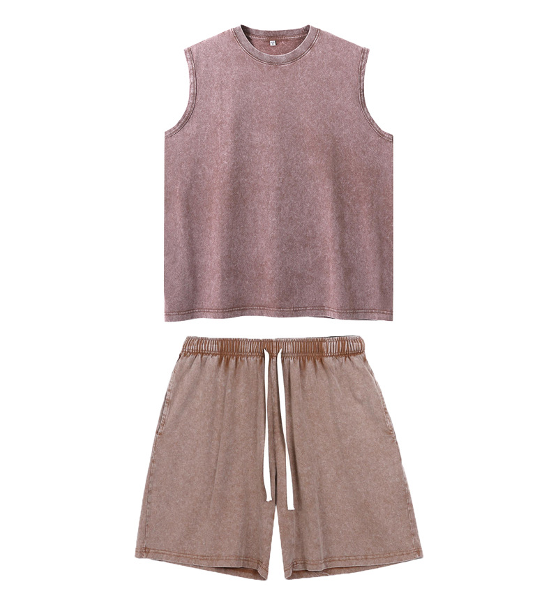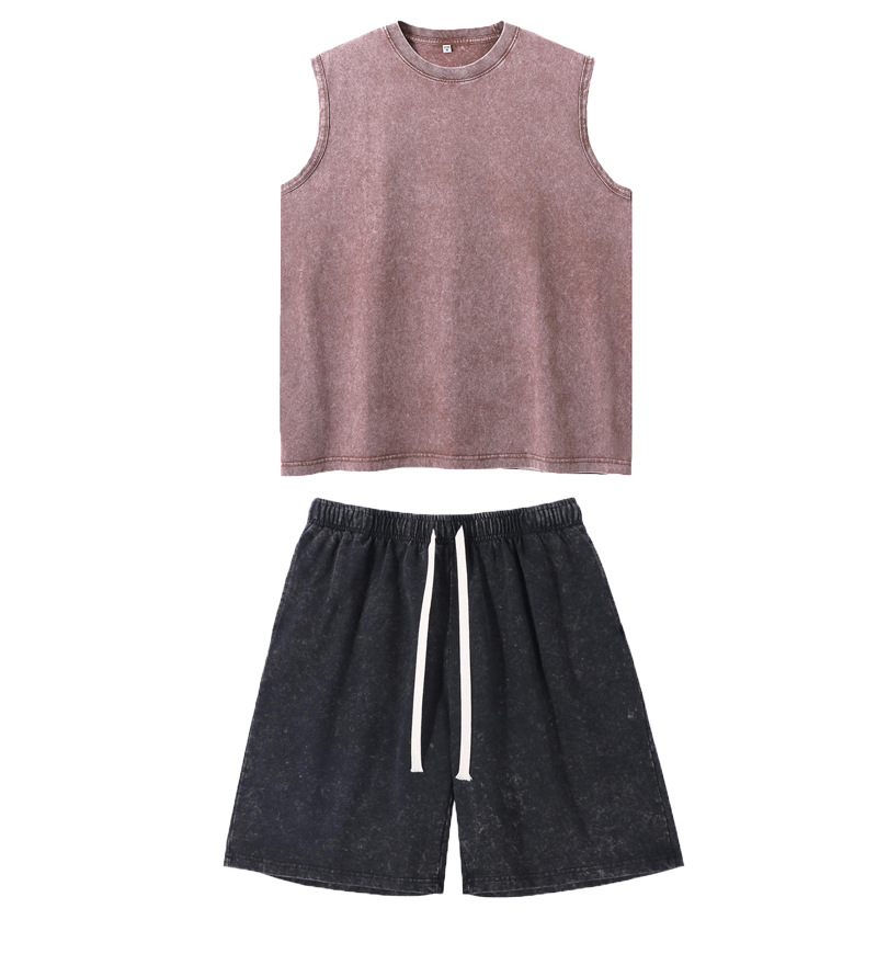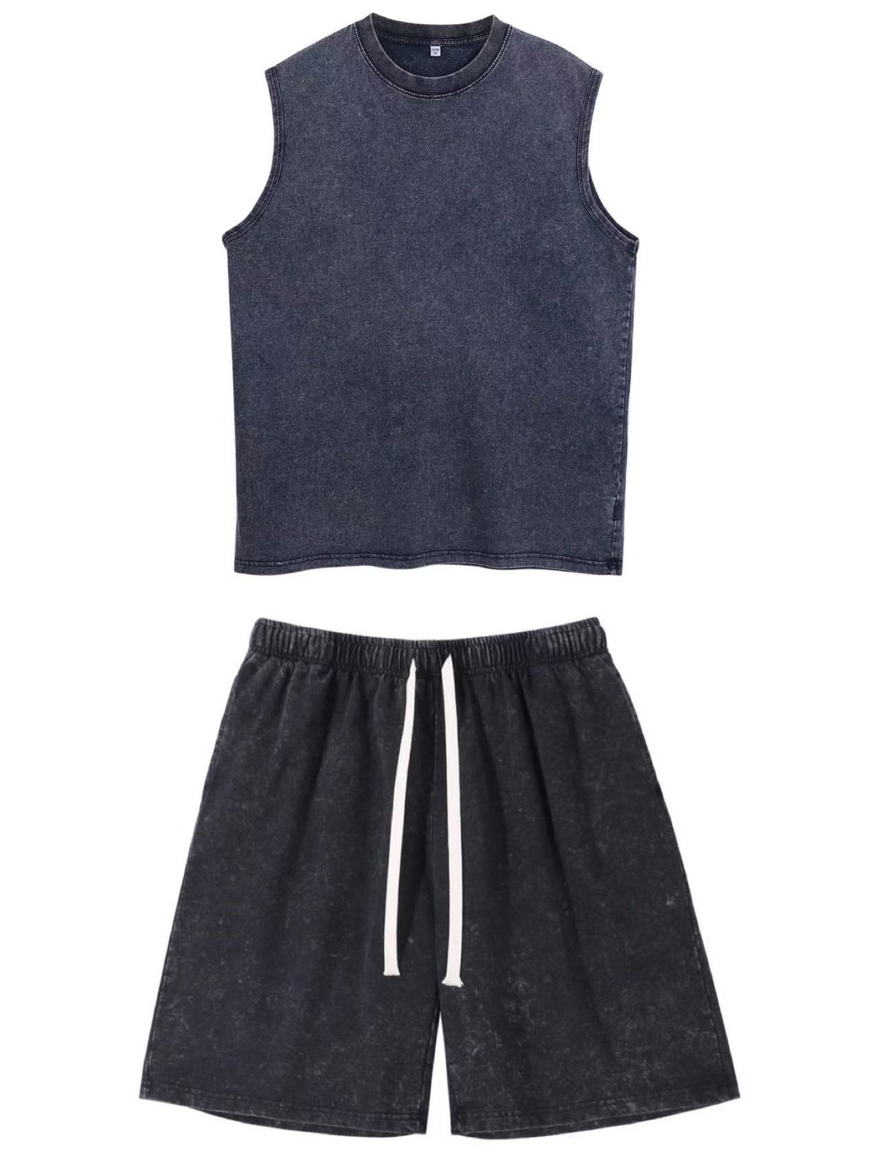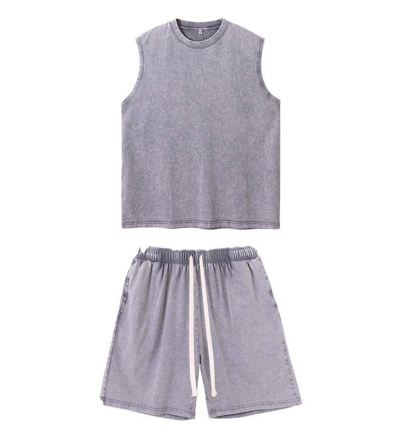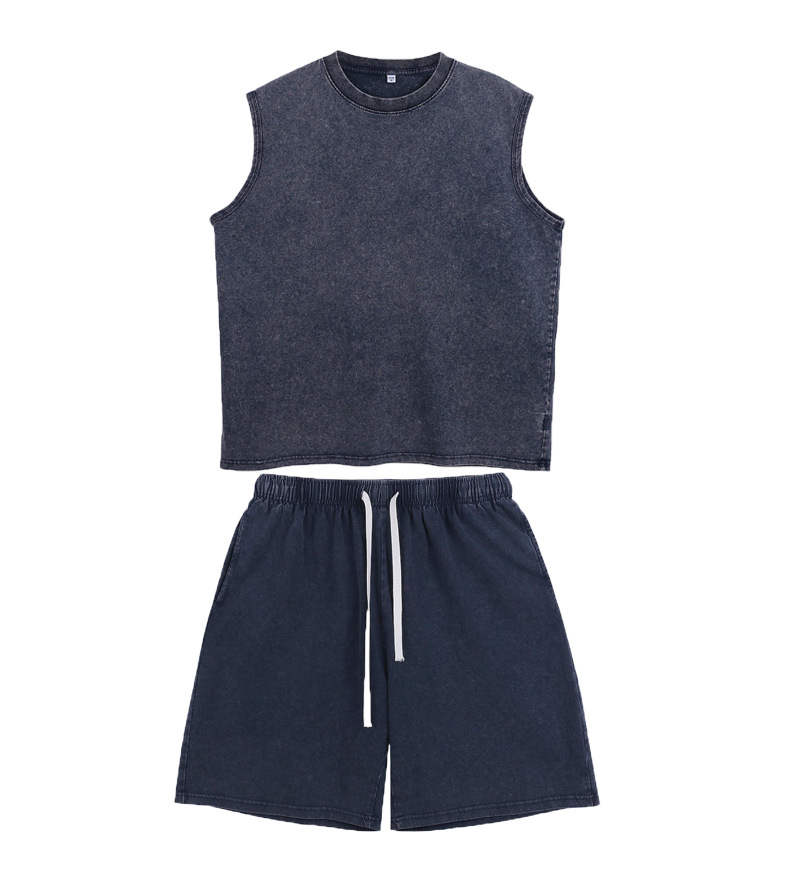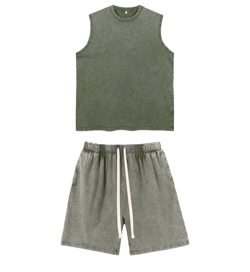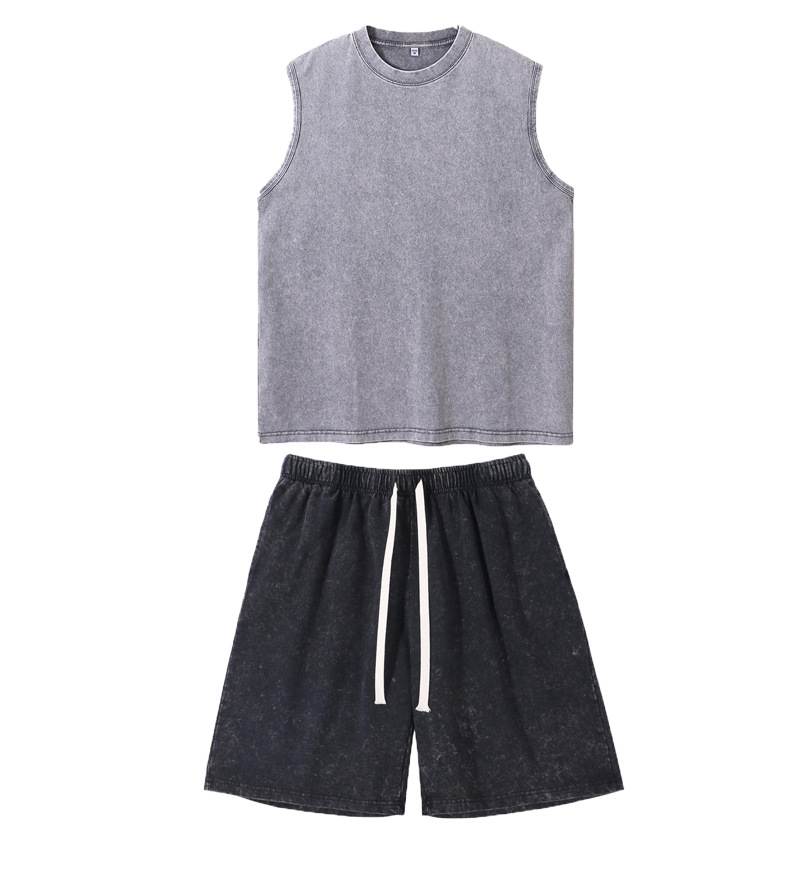 스트리트 패션 조끼 캐주얼 남성용 피트니스 스포츠 루즈핏 민소매 이너웨어 240g 빈티지 조끼 세트 다용도