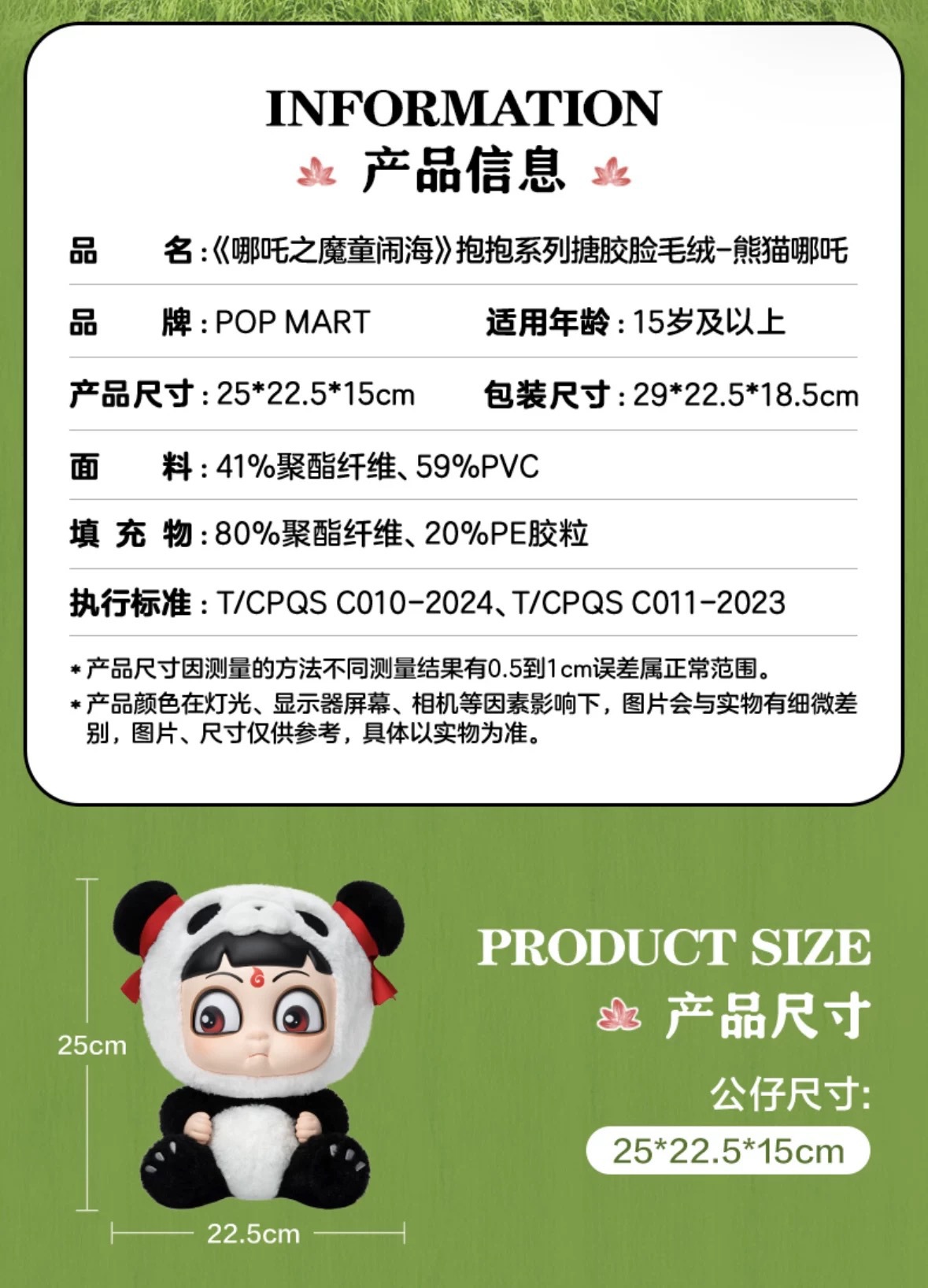 POPMART Bubble Mart의 "Nezha 2 Devil Boy Naohai" Hug Series Vinyl Face Plush Panda Nezha