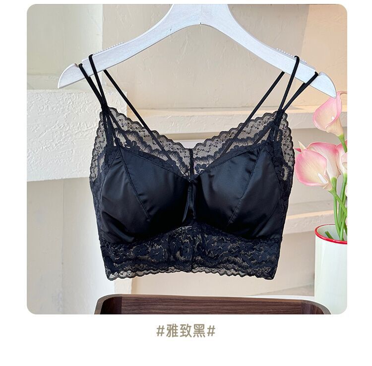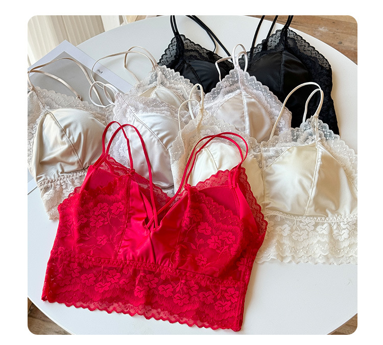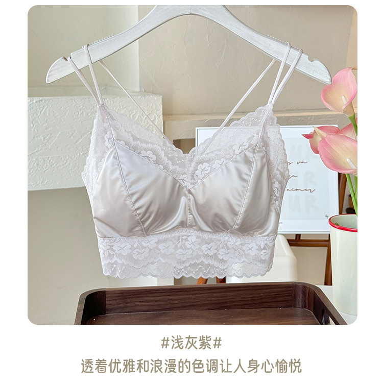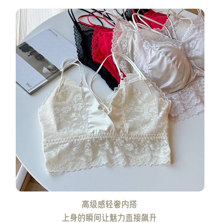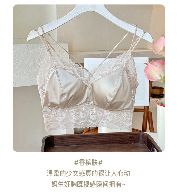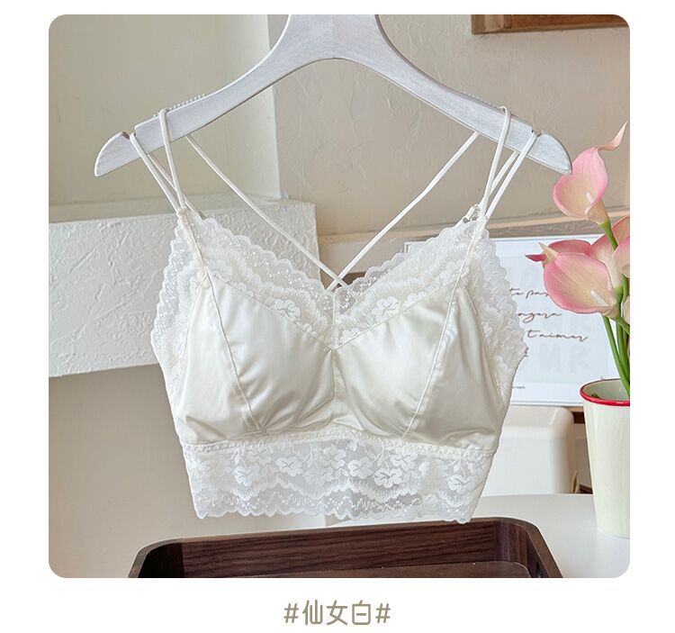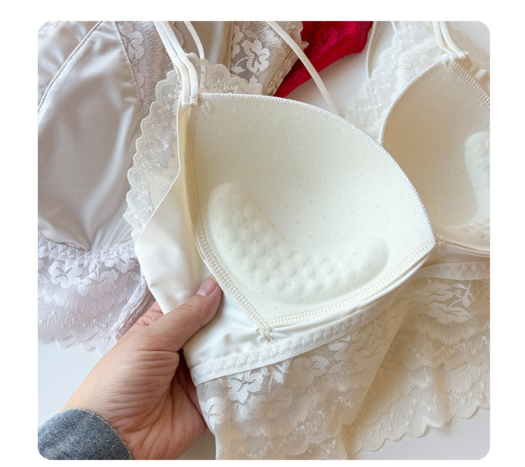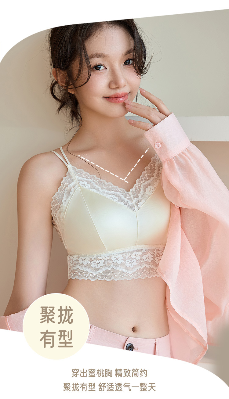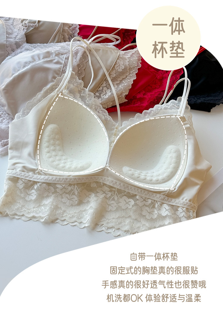 봄과 여름 2025 가벼운 럭셔리 새틴 레이스 작은 가슴 푸시 업 원피스 컵 속옷 자카드 섹시한 크로스 아름다운 뒤 내부스토어 가기