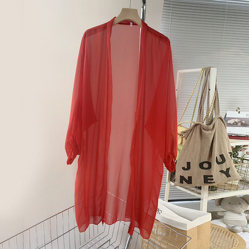 홀리데이 비치 태양 보호 의류 중간 길이의 느슨한 목도리 2025 여름 얇은 외부 에어컨 셔츠 시폰 카디건 여성