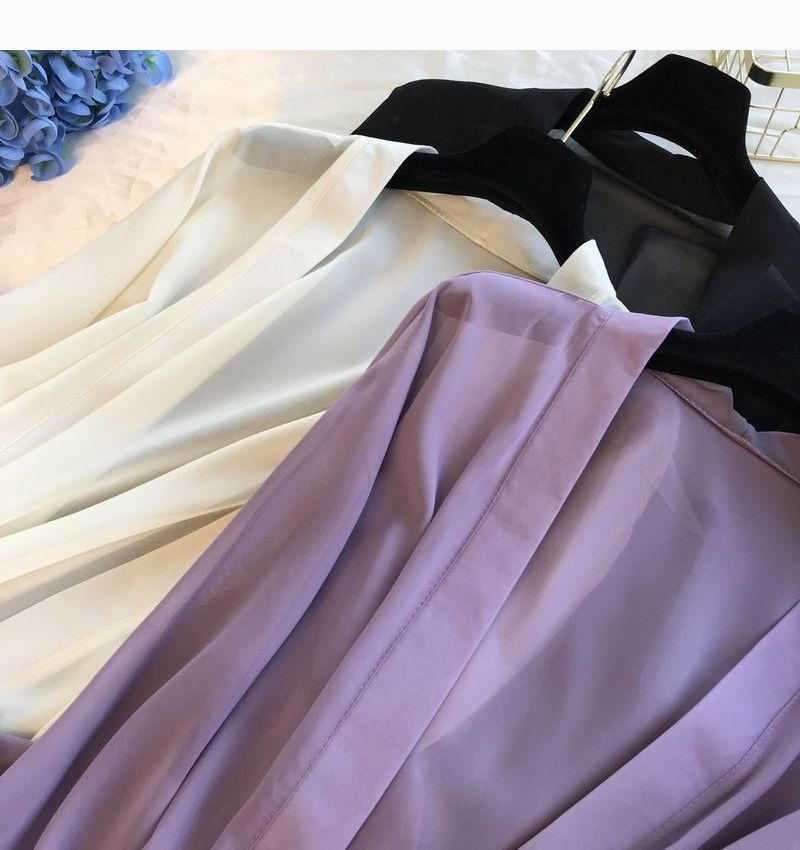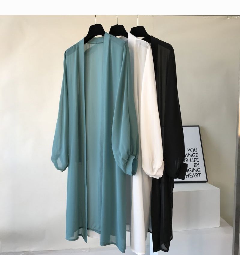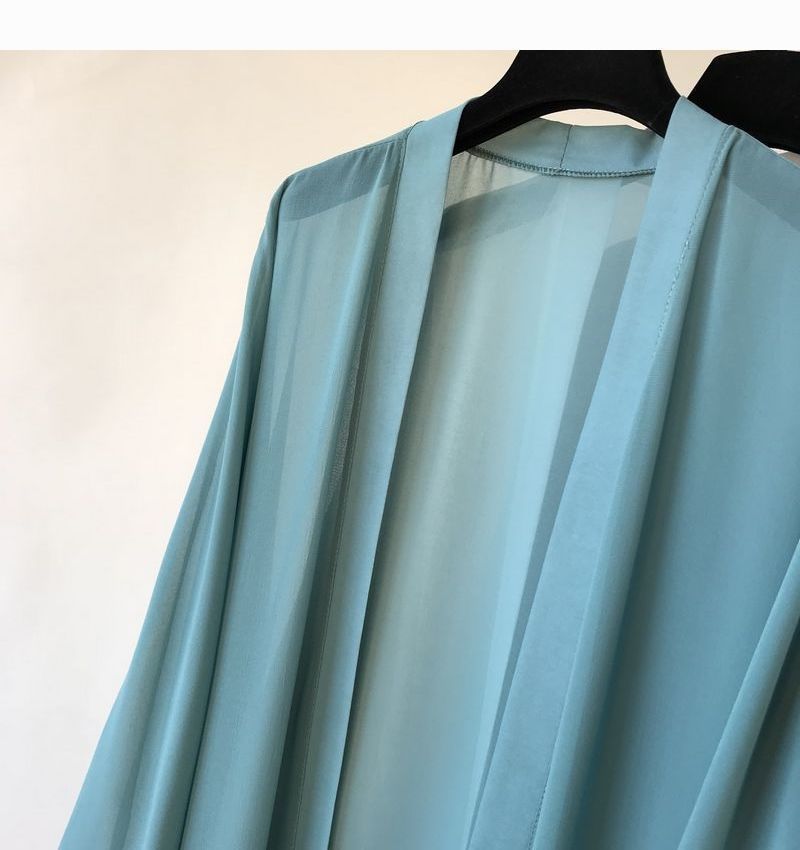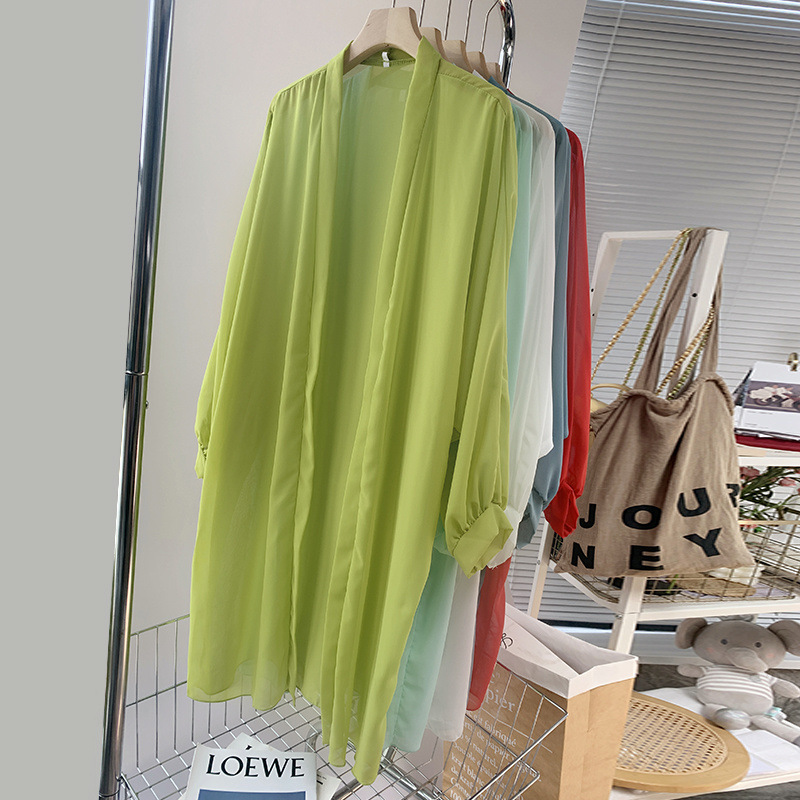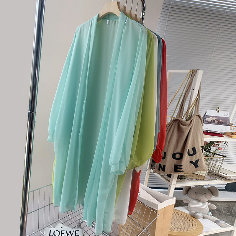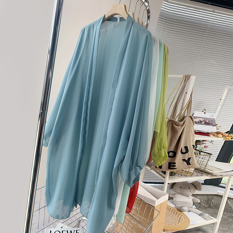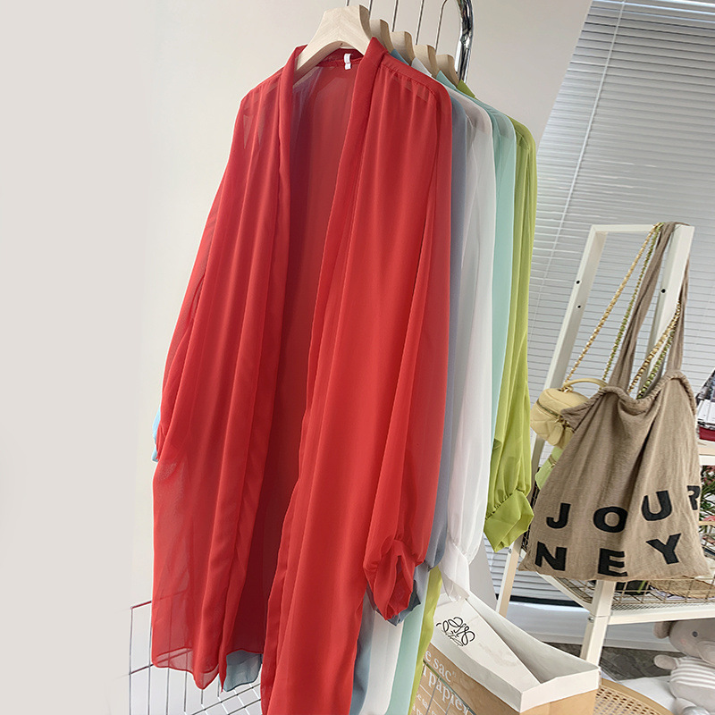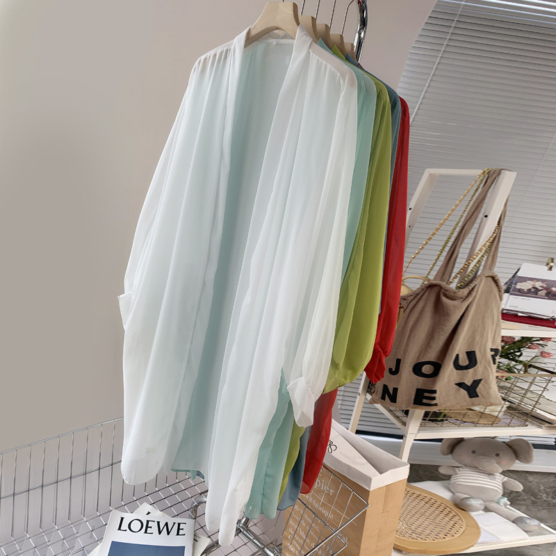 홀리데이 비치 태양 보호 의류 중간 길이의 느슨한 목도리 2025 여름 얇은 외부 에어컨 셔츠 시폰 카디건 여성스토어 가기
