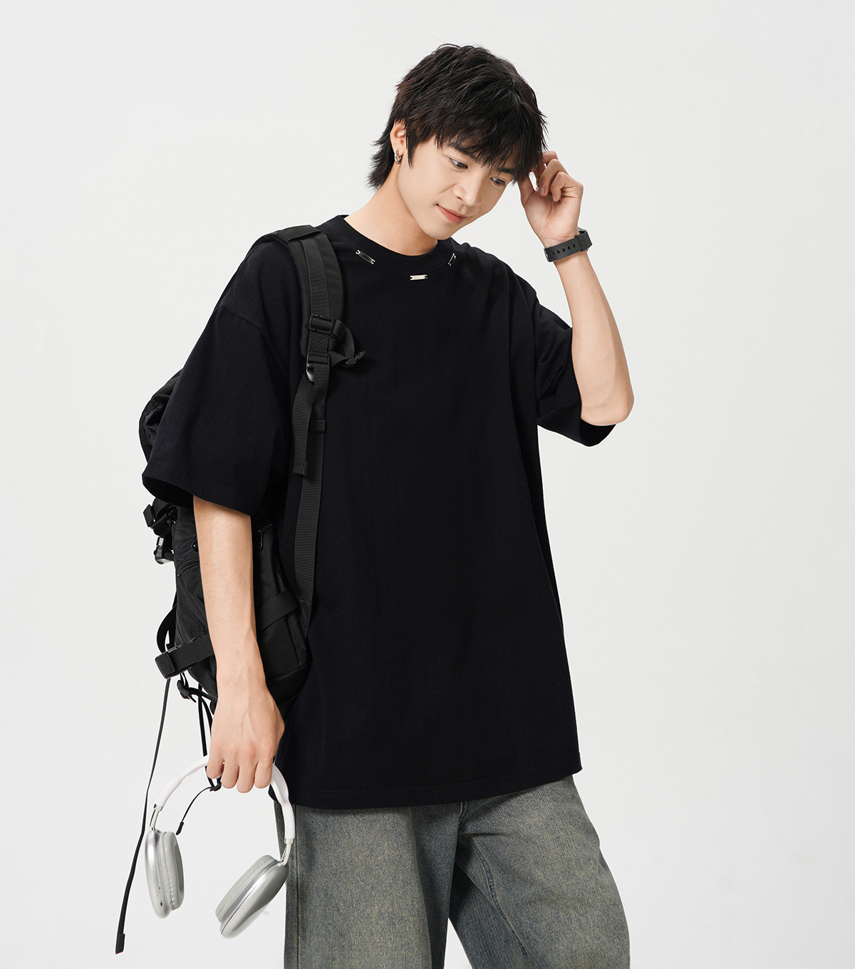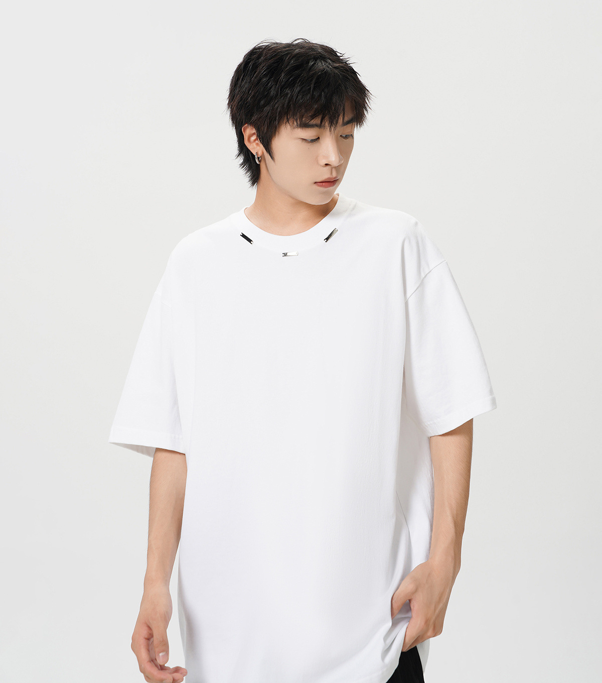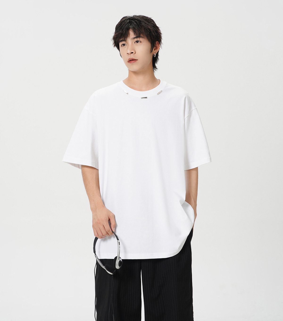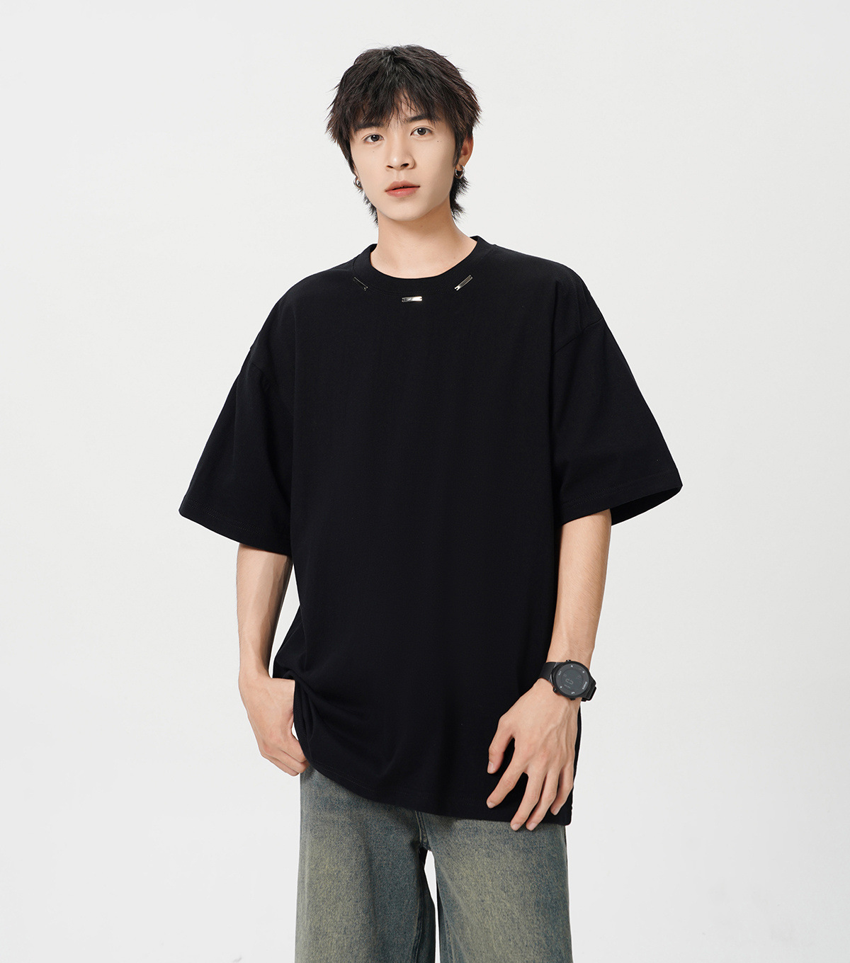 반팔 티셔츠 남자 2025 년 여름 새로운 작은 코 디자인 틈새 금속 무거운 무게 느슨한 반소매 티셔츠