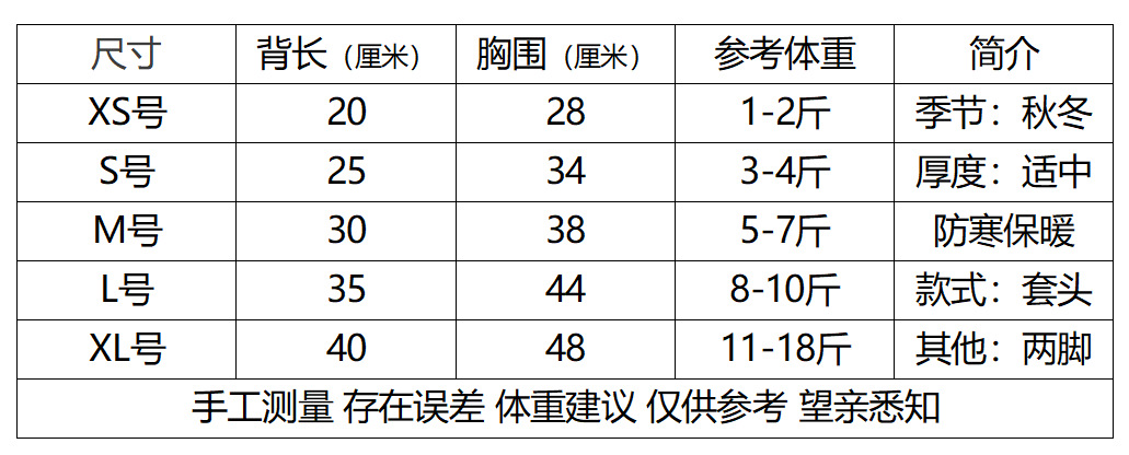 • XS 등길이 20cm (권장 0.5-1.0kg)