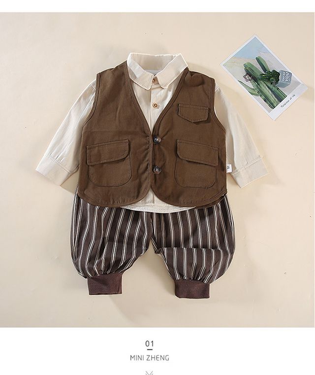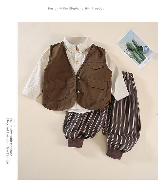 남학생 '봄 · 가을 세트 2025 가을 신남자들' 한국식 일본식 와셔 조끼 어린이 모리 스타일 올매치 세트