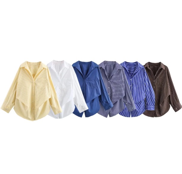 국경 간 유럽과 미국 여성의 AliExpress 폭발 패션 캐주얼 느슨한 포플린 셔츠