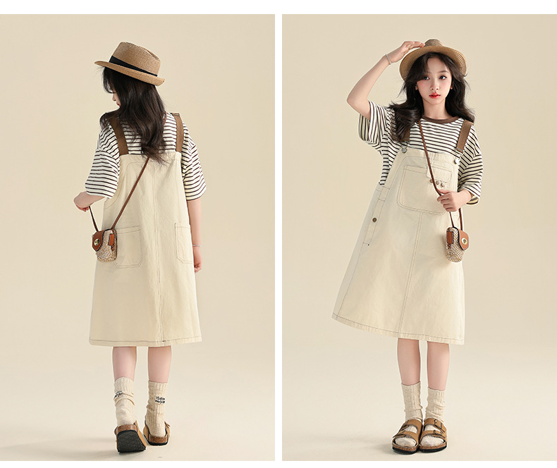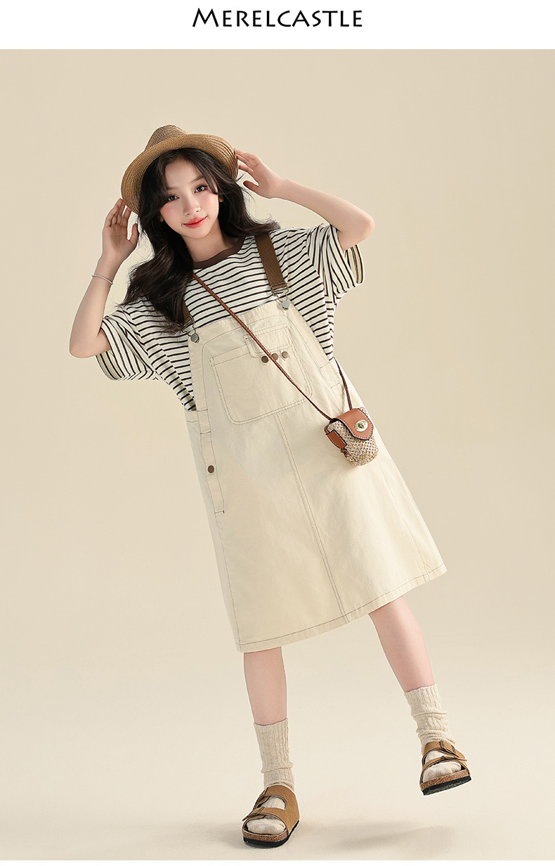 여자 여름 원피스 원피스 2025 새로운 스타일 어린이 여름 유행 치마 어린이 한국 스타일 스트랩 스커트 세트스토어 가기