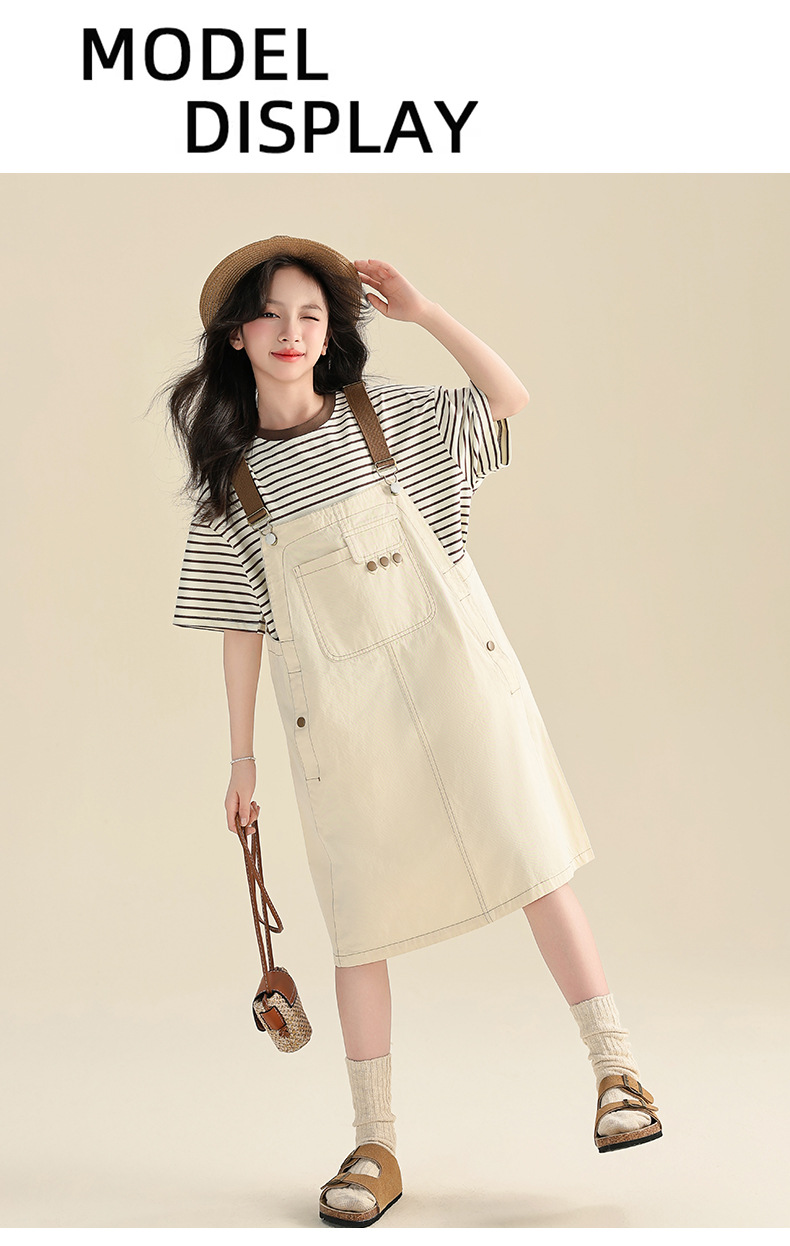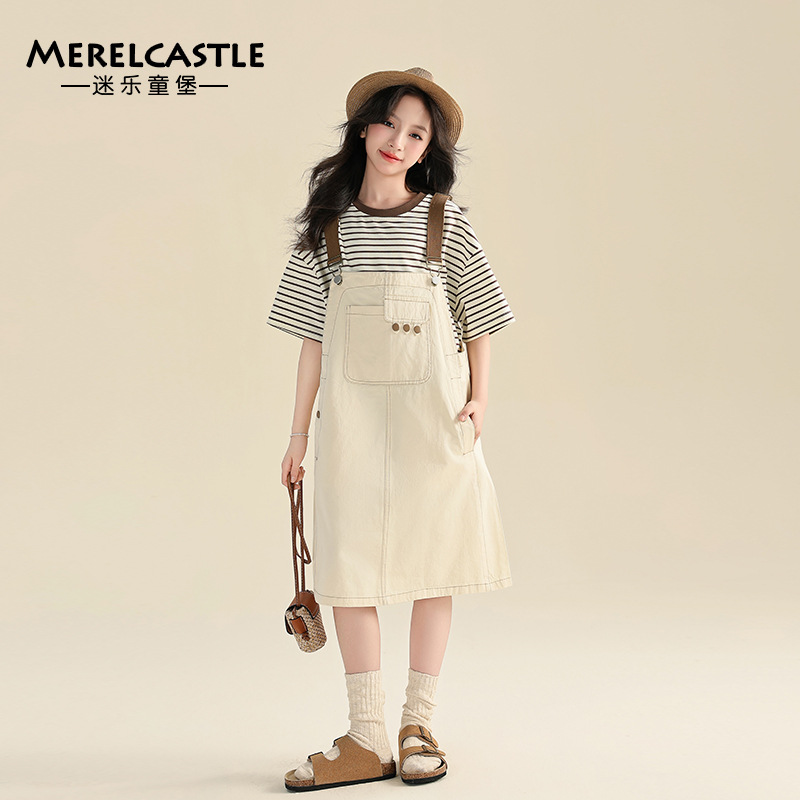 여자 여름 원피스 원피스 2025 새로운 스타일 어린이 여름 유행 치마 어린이 한국 스타일 스트랩 스커트 세트