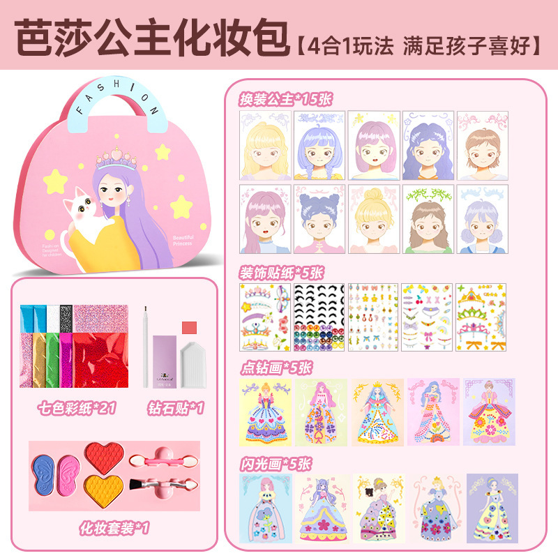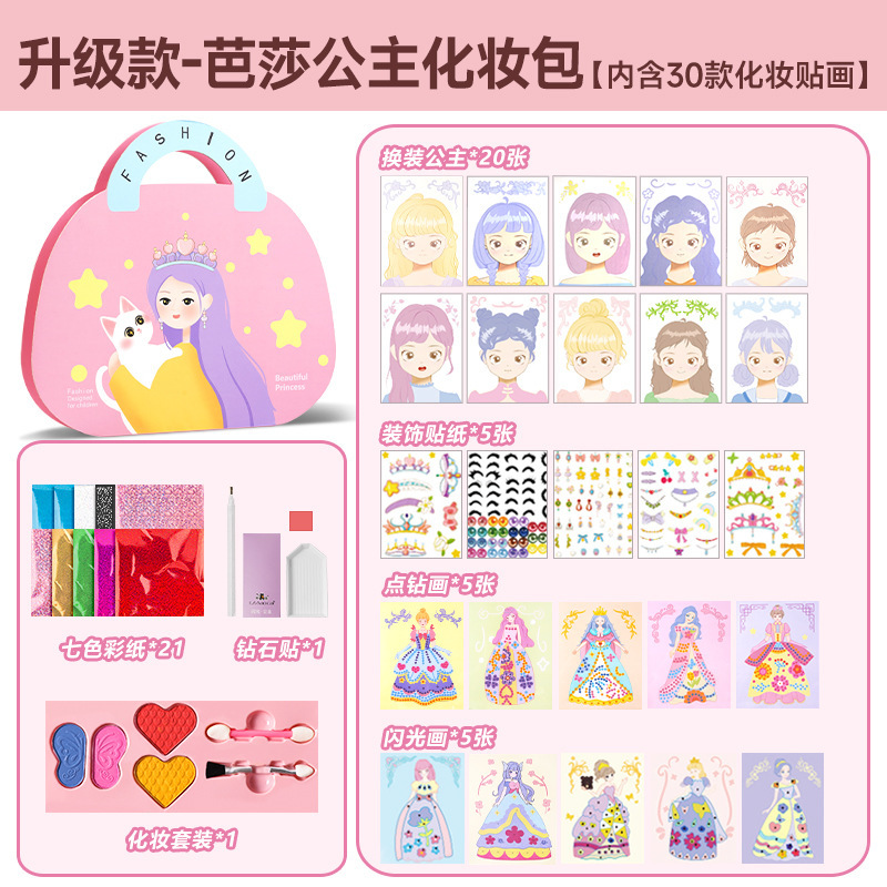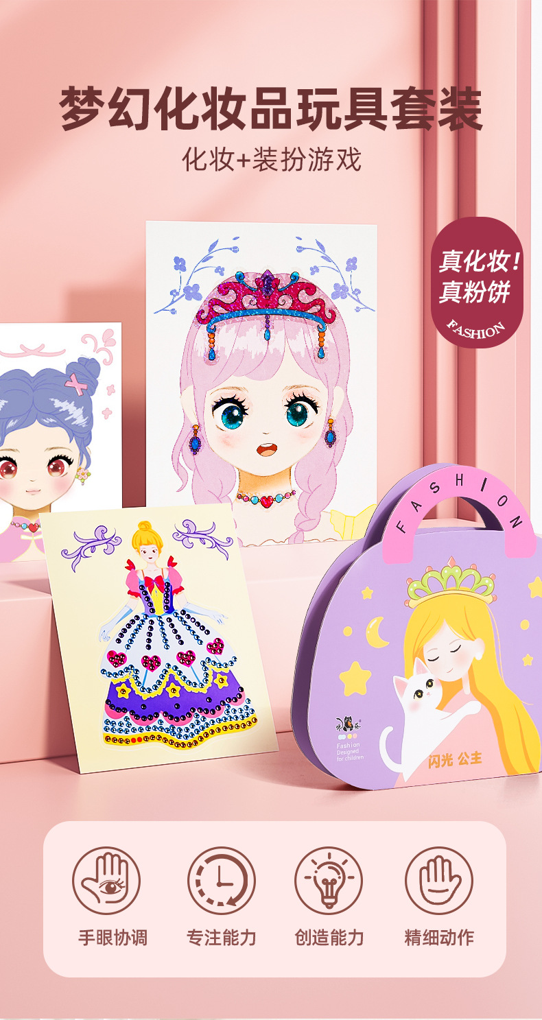 • 2024 뜨거운 판매 화장품 상자 매직 공주 화장품 가방 고급 장난감 교육 실용 고급 선물 상자 그물 빨간색 다이아몬드 그림 다이아몬드 스티커 장난감 수제 diy