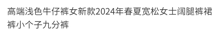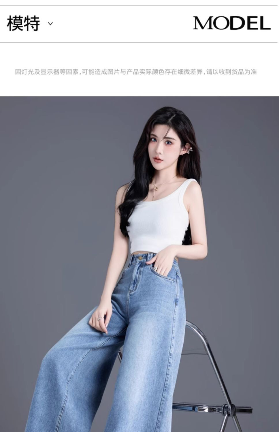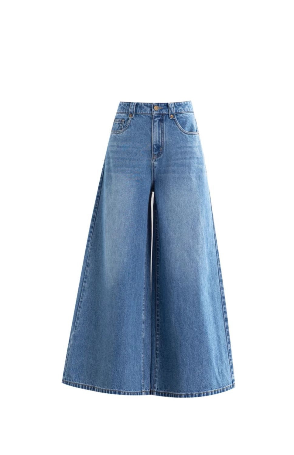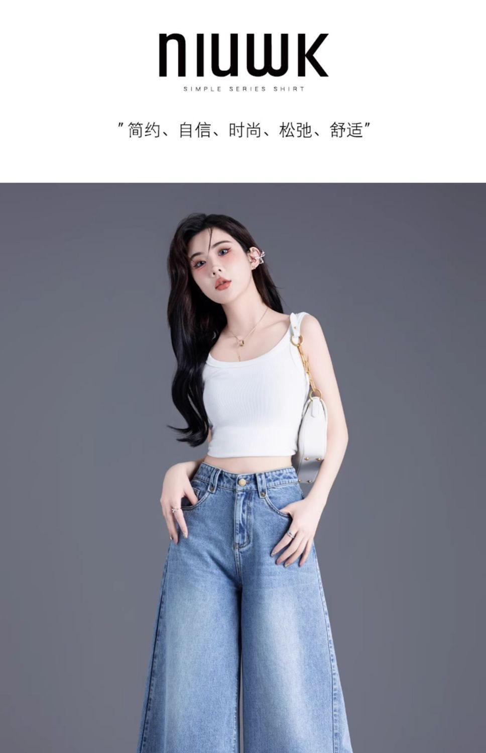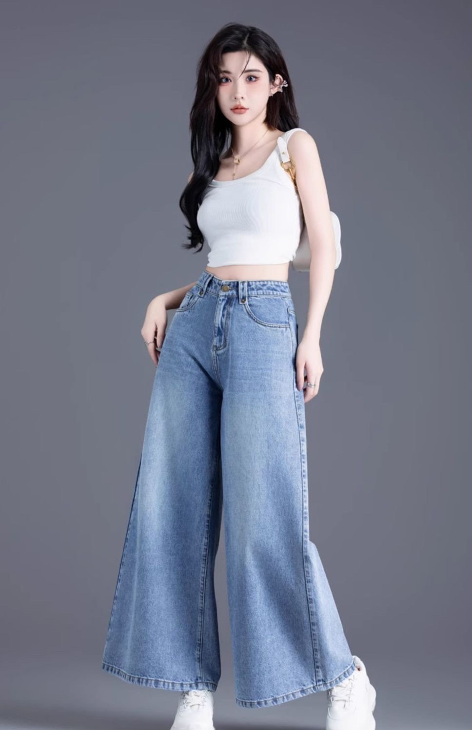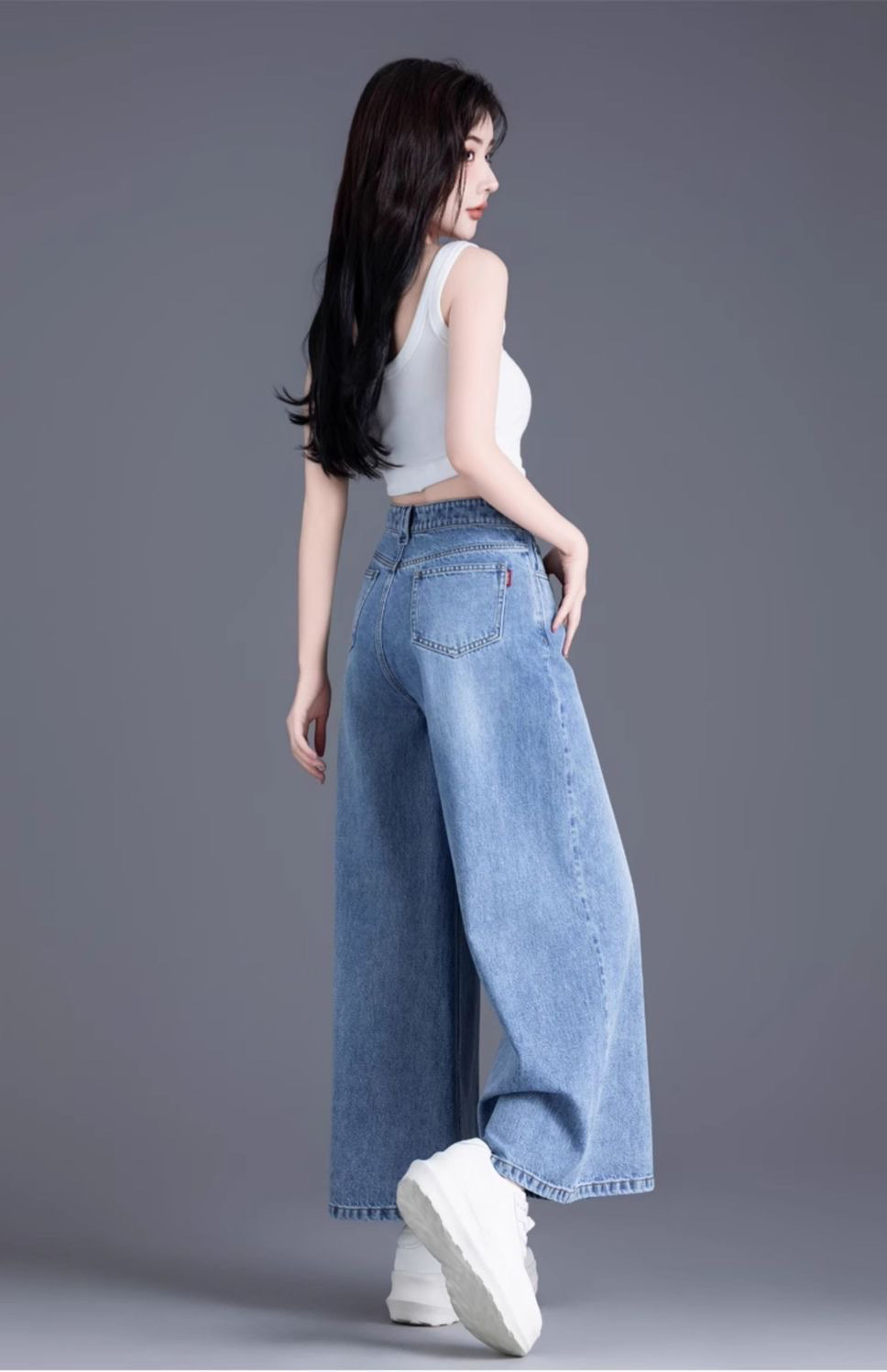 하이 엔드 라이트 컬러 청바지 여성의 새로운 도착 2025 봄/여름 느슨한 여성의 넓은 다리 바지 스커트 바지 작은 자른 바지