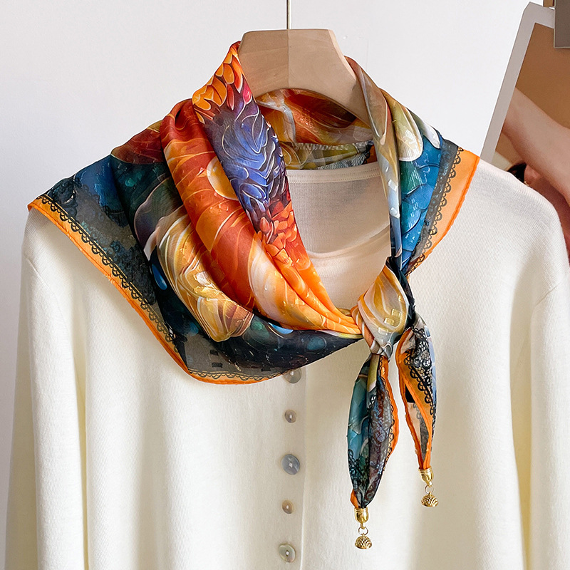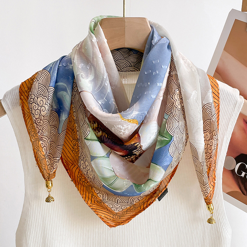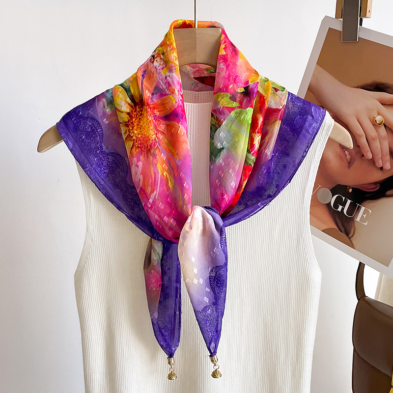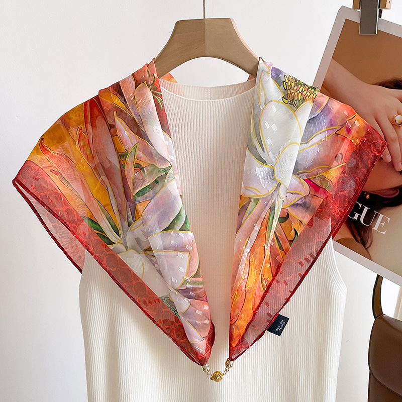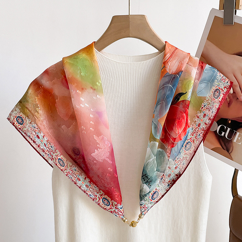 중국 스타일의 마그네틱 버클 스퀘어 스카프 70 핑크 작은 실크 스카프 봄과 가을 목 보호 작은 스카프 여성 하이 엔드 올 매치 실크 스카프