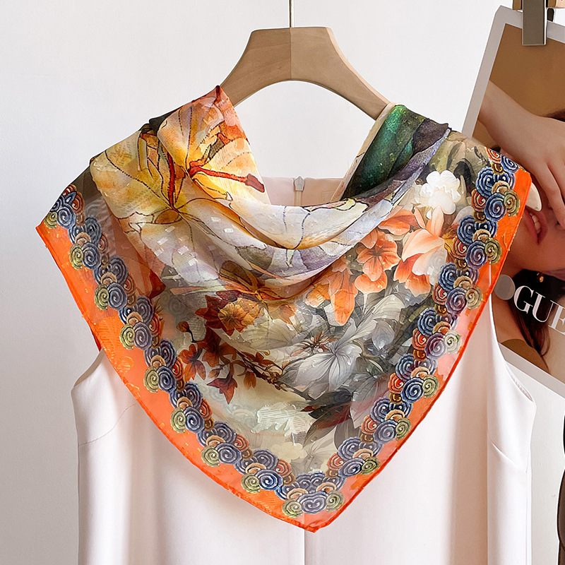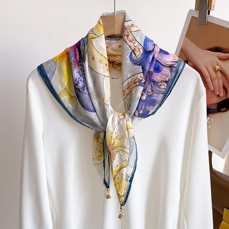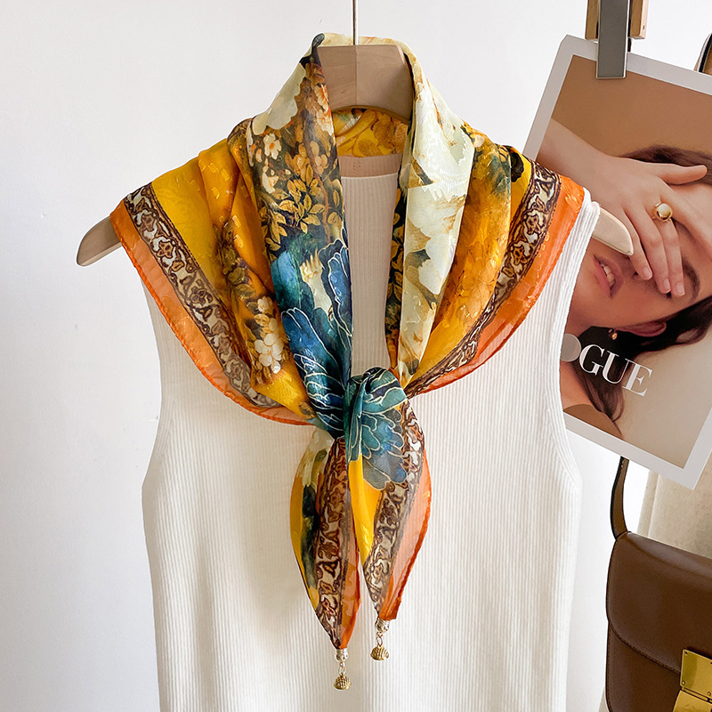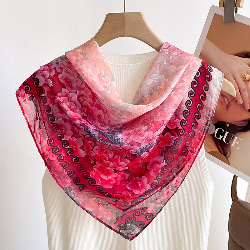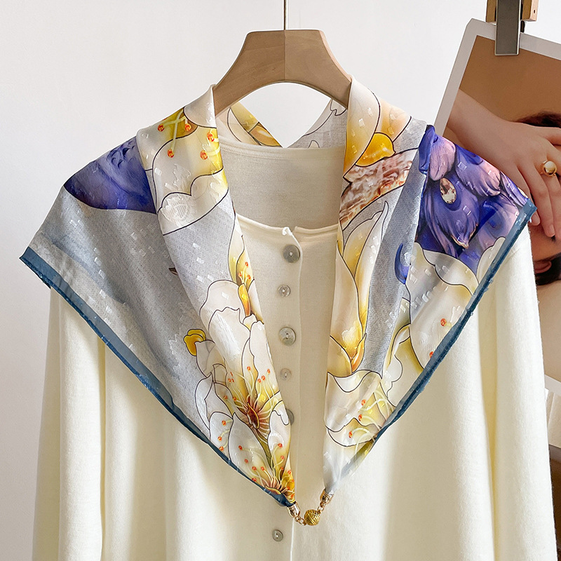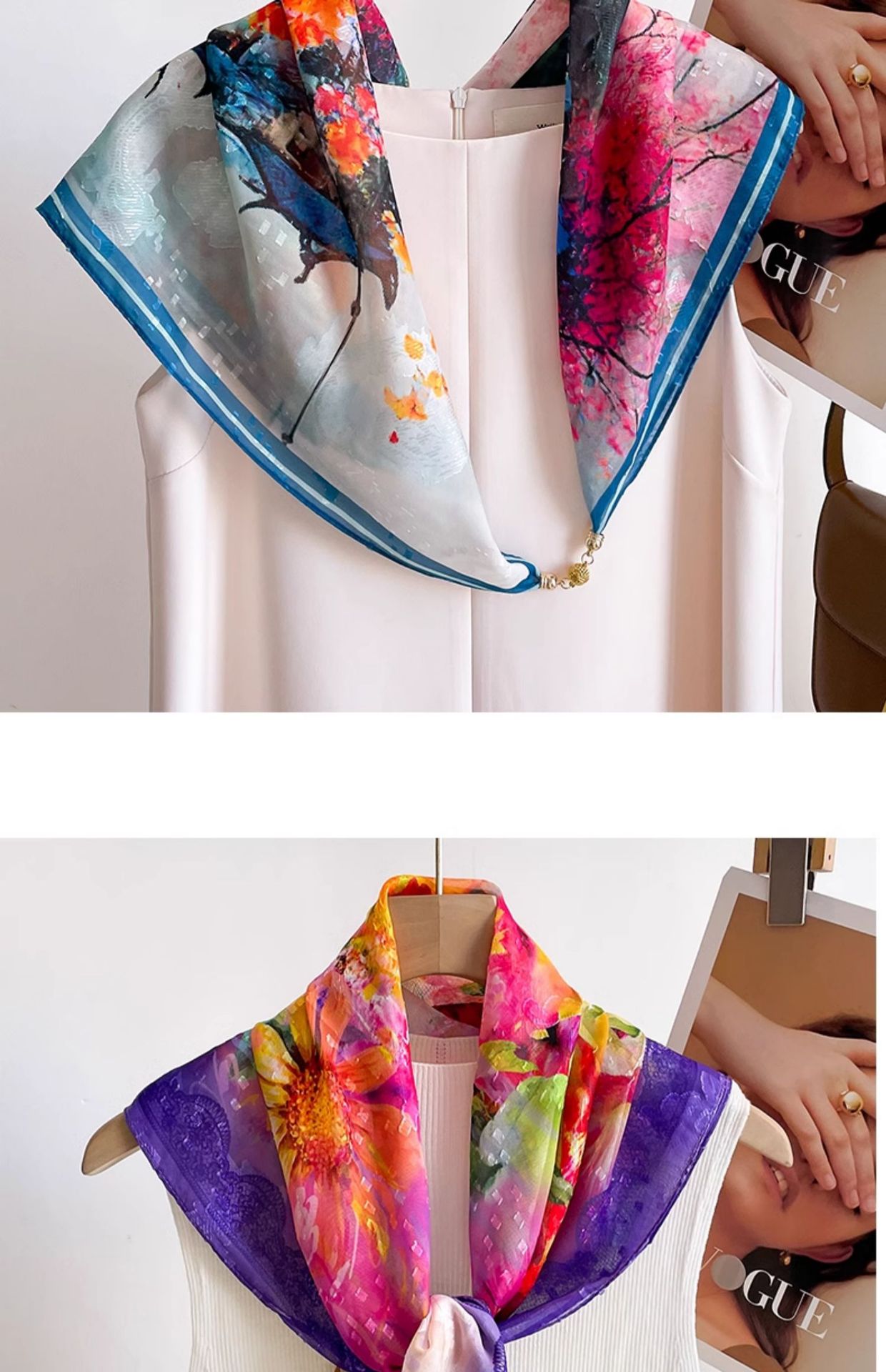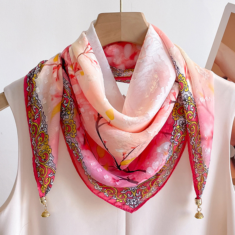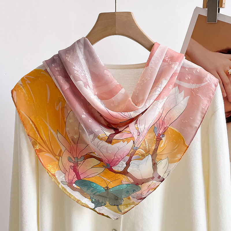 중국 스타일의 마그네틱 버클 스퀘어 스카프 70 핑크 작은 실크 스카프 봄과 가을 목 보호 작은 스카프 여성 하이 엔드 올 매치 실크 스카프스토어 가기
