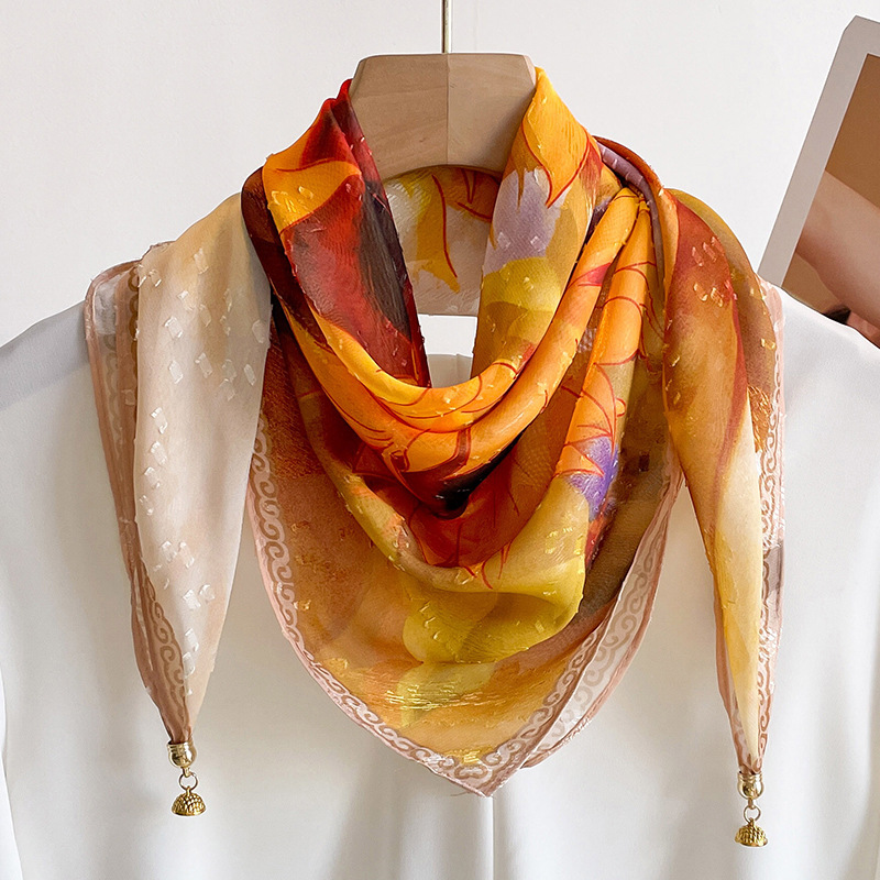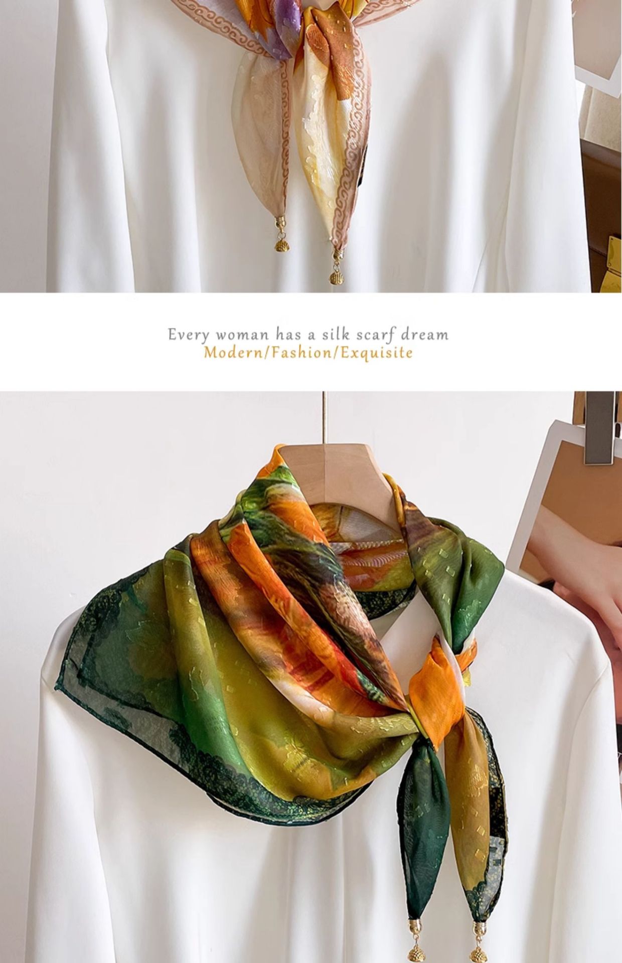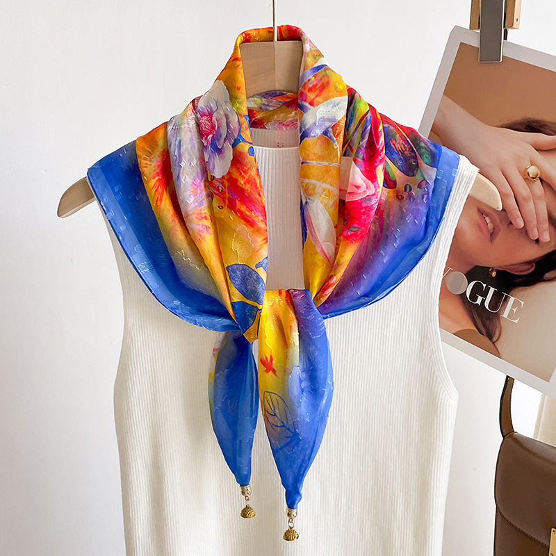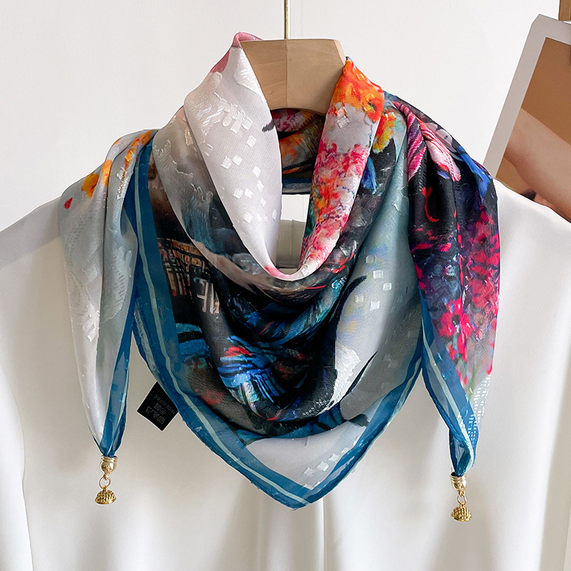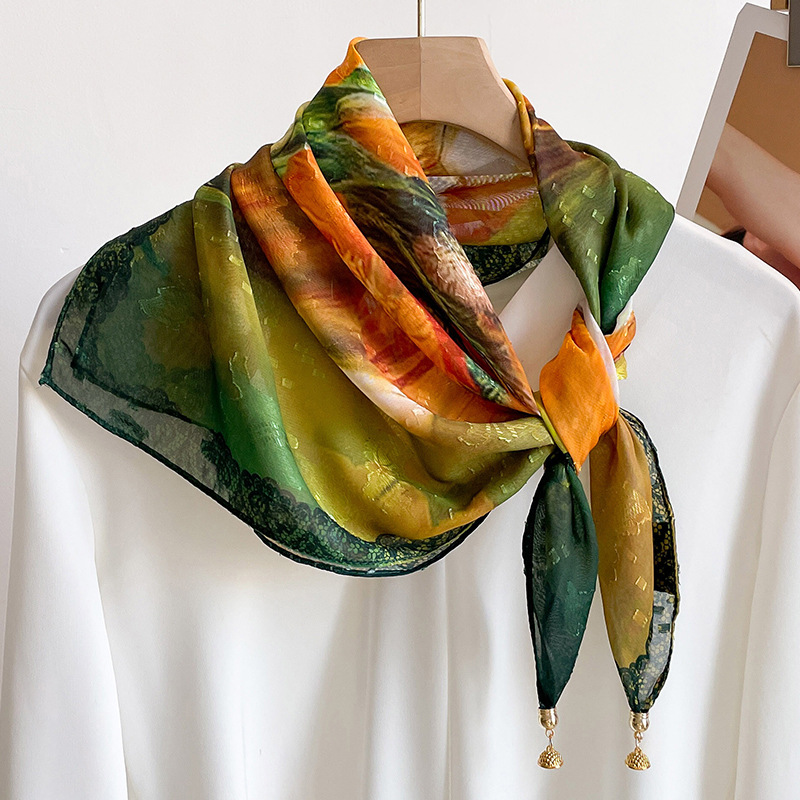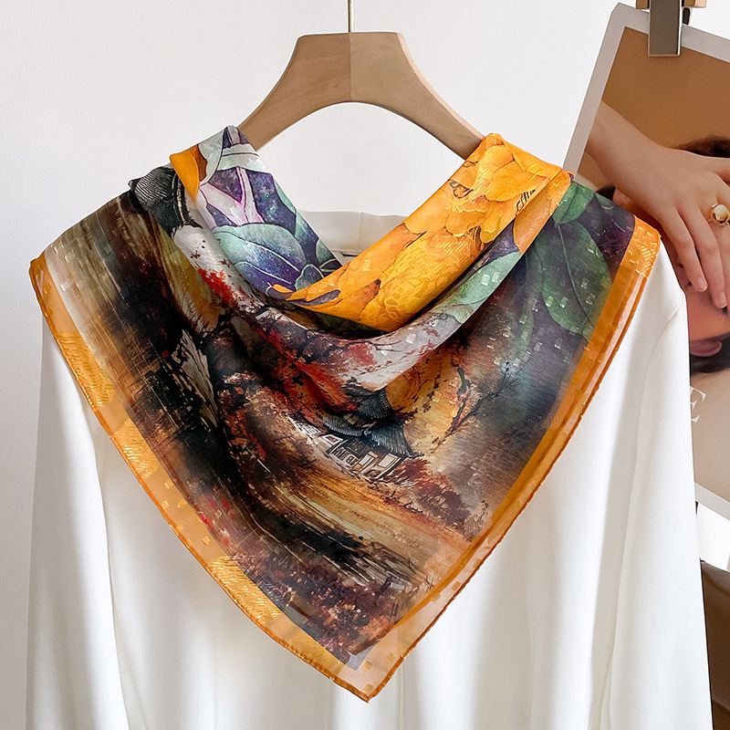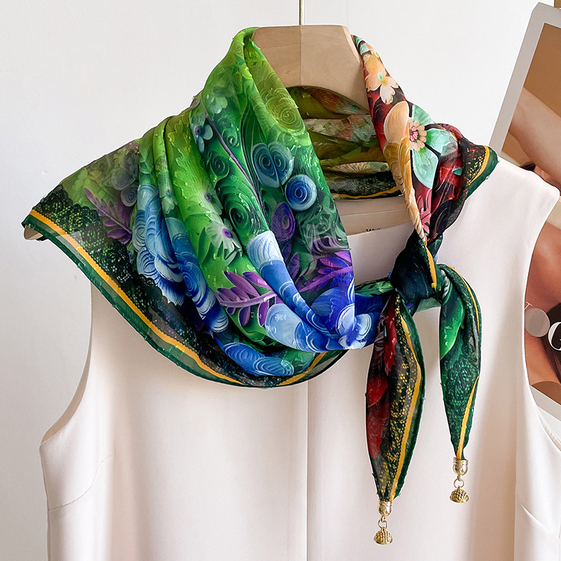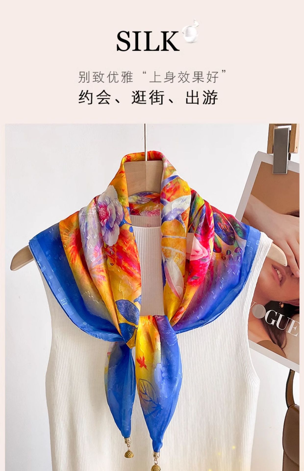 중국 스타일의 마그네틱 버클 스퀘어 스카프 70 핑크 작은 실크 스카프 봄과 가을 목 보호 작은 스카프 여성 하이 엔드 올 매치 실크 스카프스토어 가기