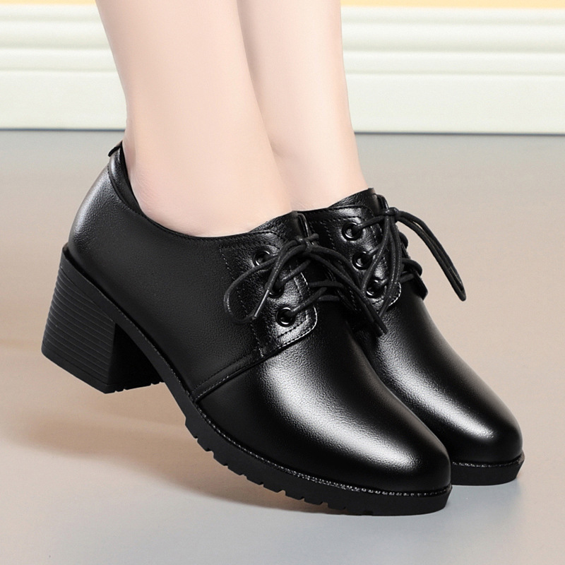 싱글 신발 여성 헤드 레이어 Cowhide 봄과 가을 새로운 로퍼 소프트 가죽 소프트 단독 중년 및 노인 엄마 신발 편안한 가죽 신발스토어 가기