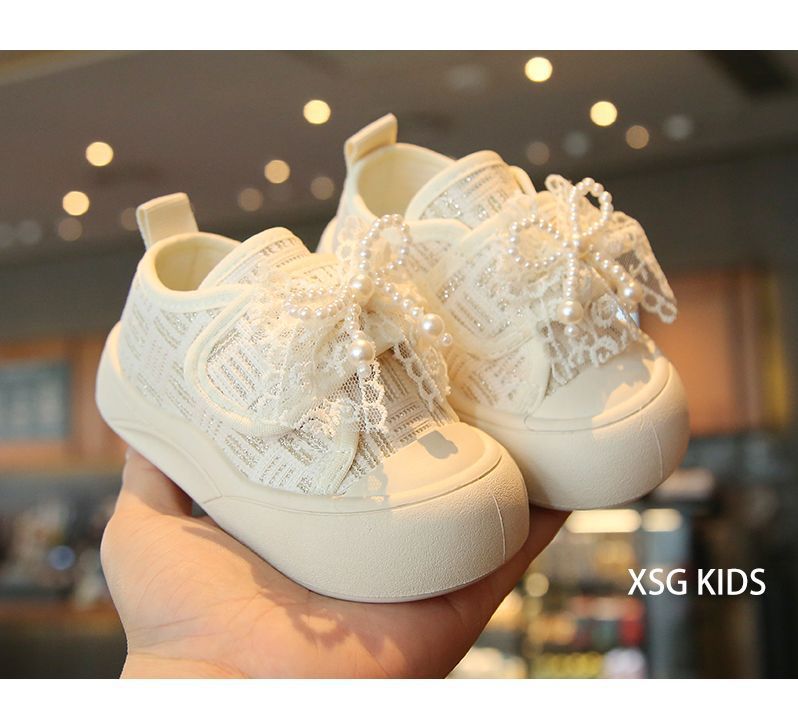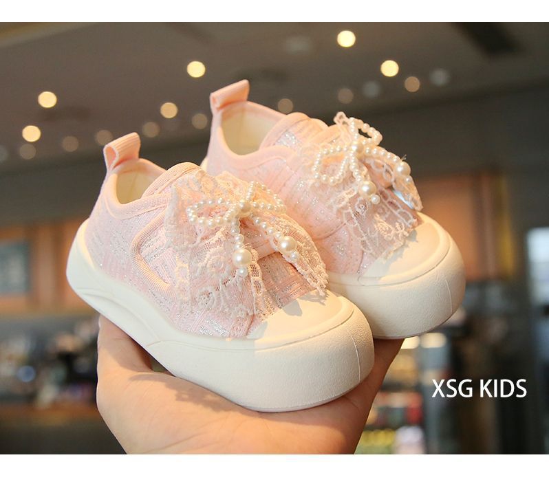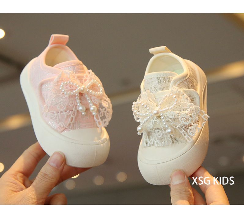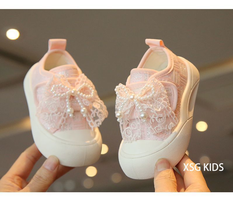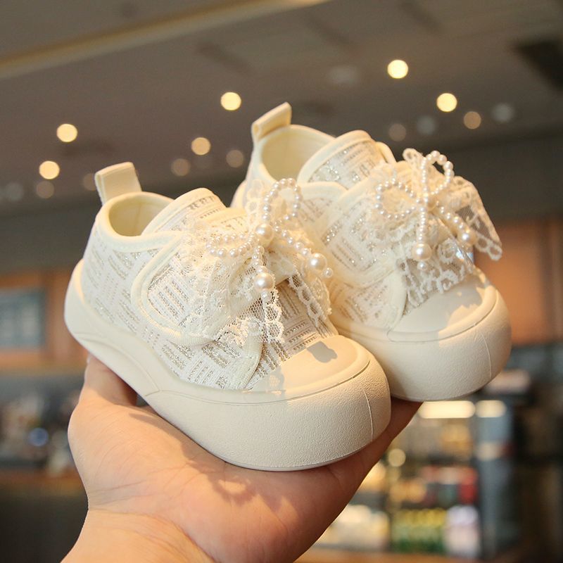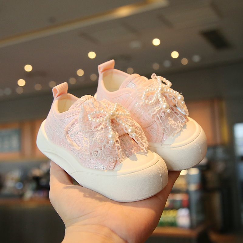 소녀 보드 신발 봄과 여름 새로운 귀여운 달콤한 어린이 캐주얼 신발 소녀 미끄럼 캔버스 신발 진주 활 신발