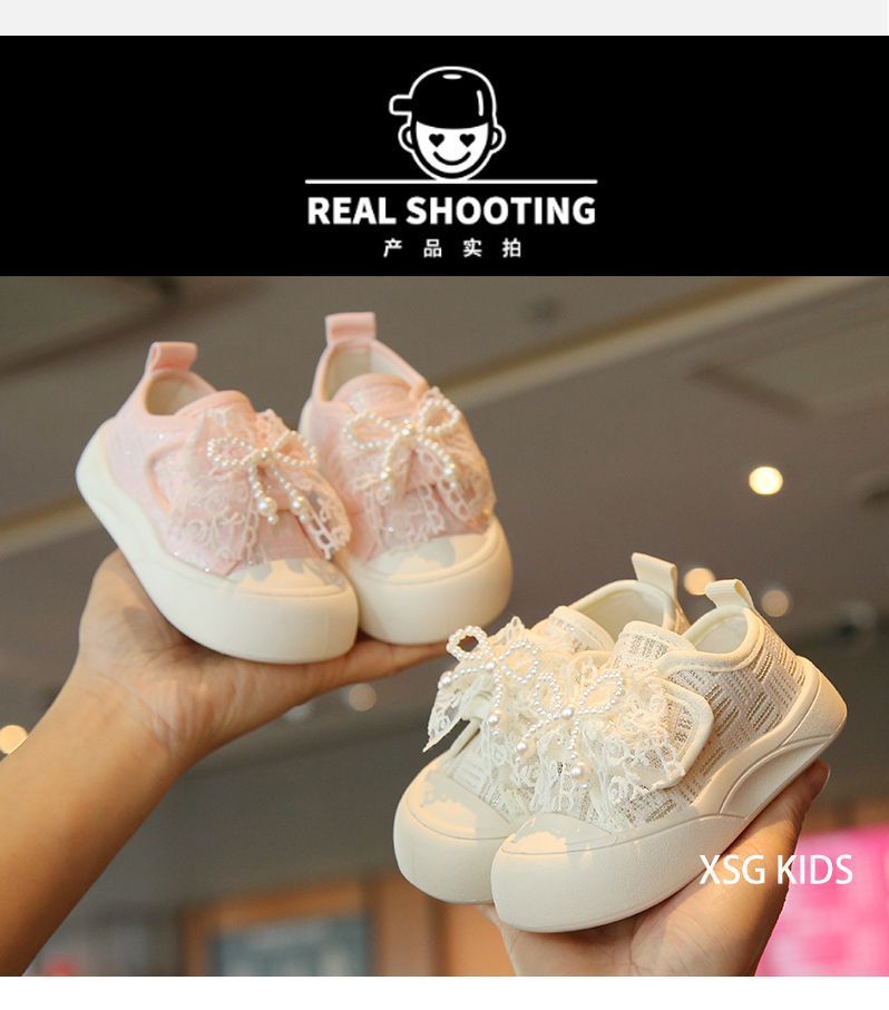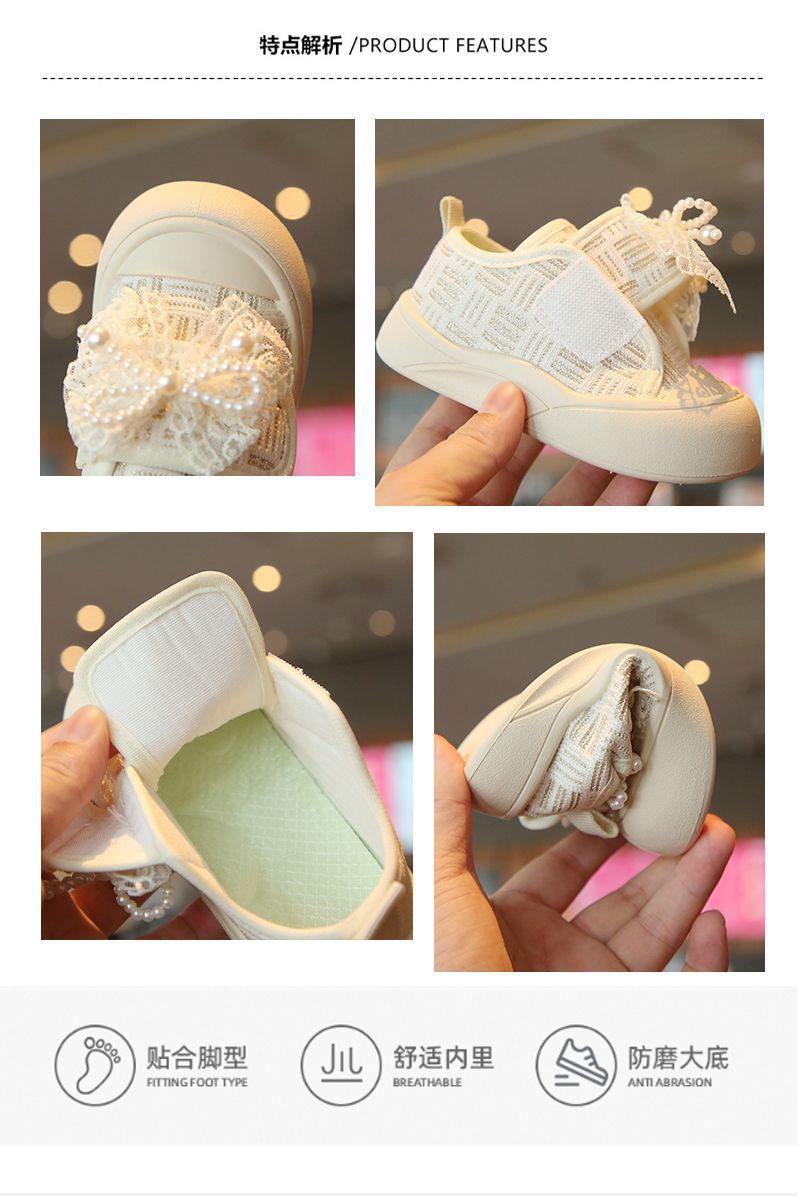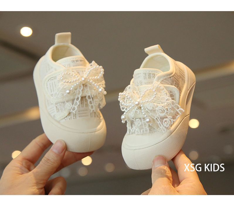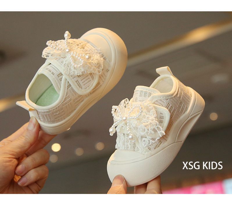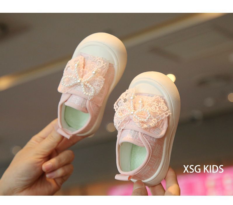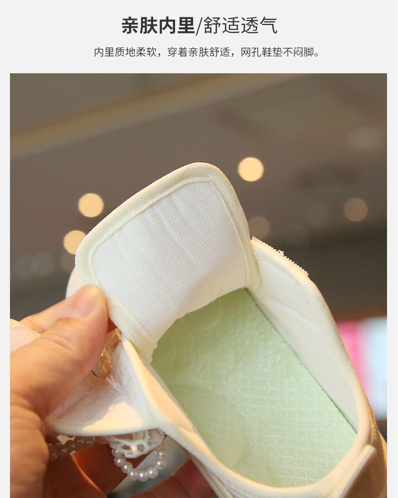 소녀 보드 신발 봄과 여름 새로운 귀여운 달콤한 어린이 캐주얼 신발 소녀 미끄럼 캔버스 신발 진주 활 신발