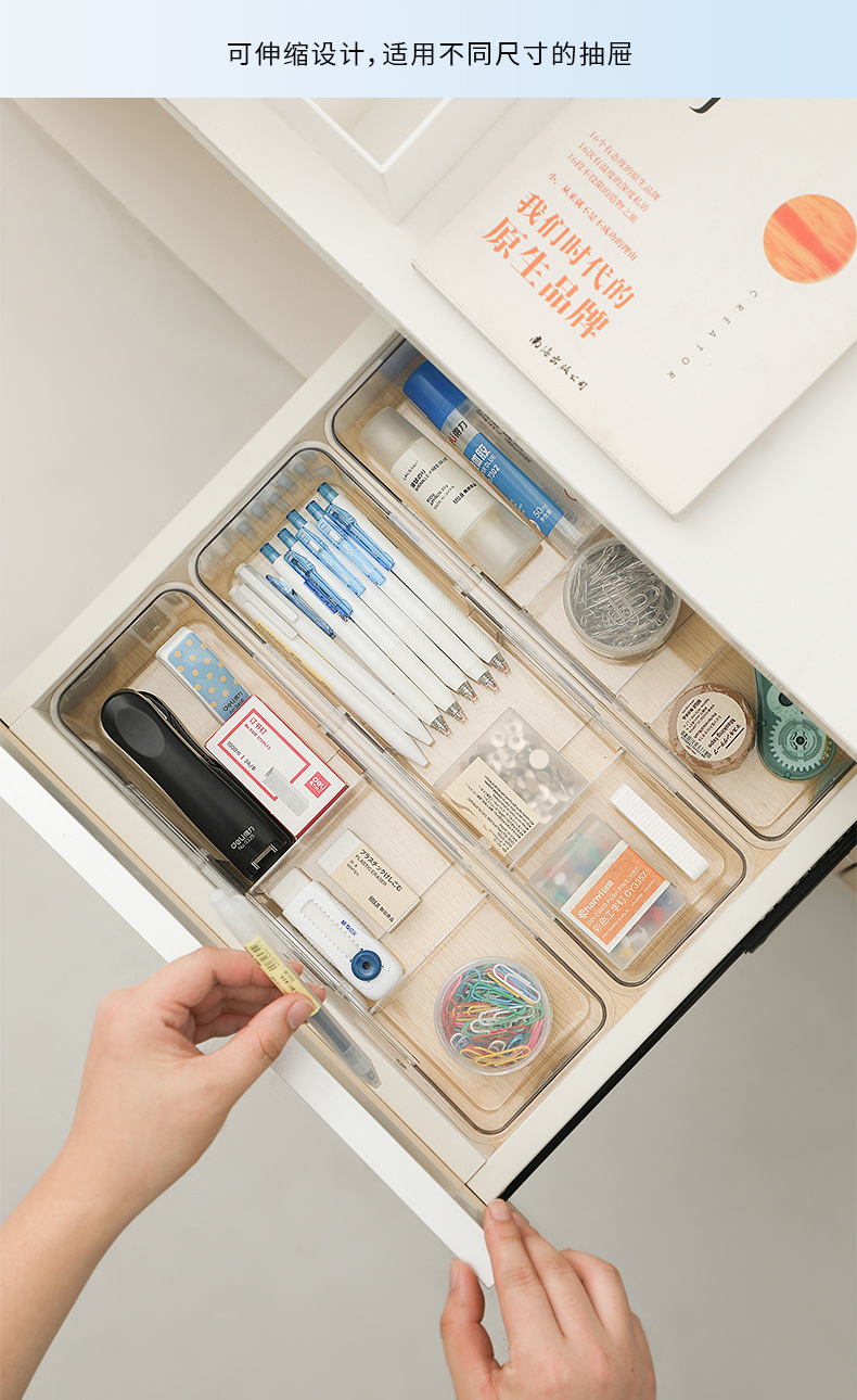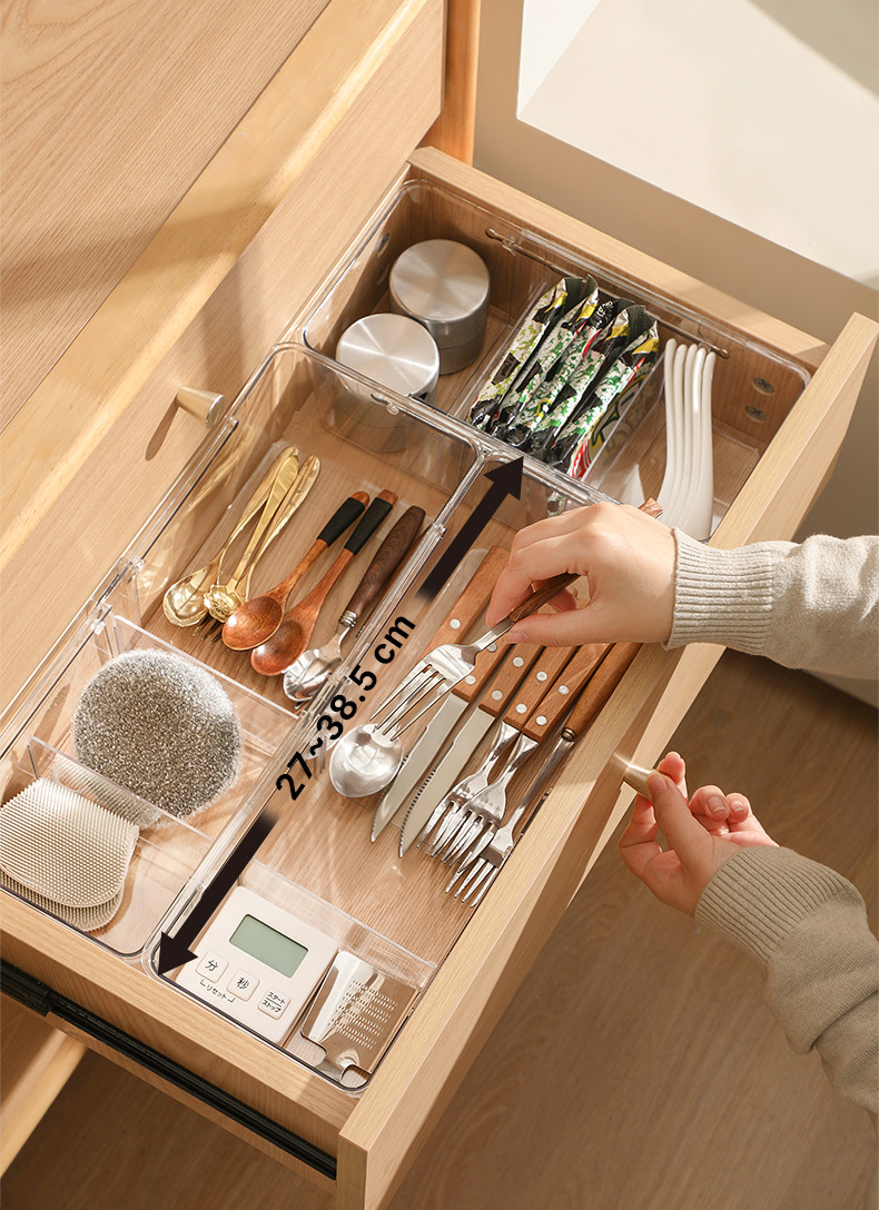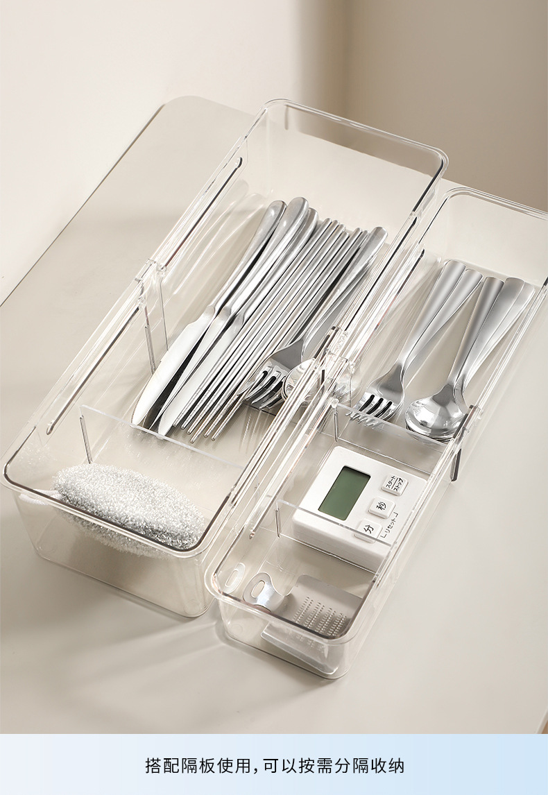 • 商品名称:日式PET可伸缩餐具分隔储物盒 --窄款