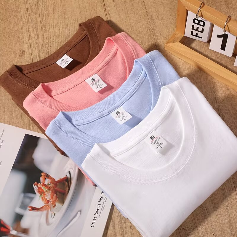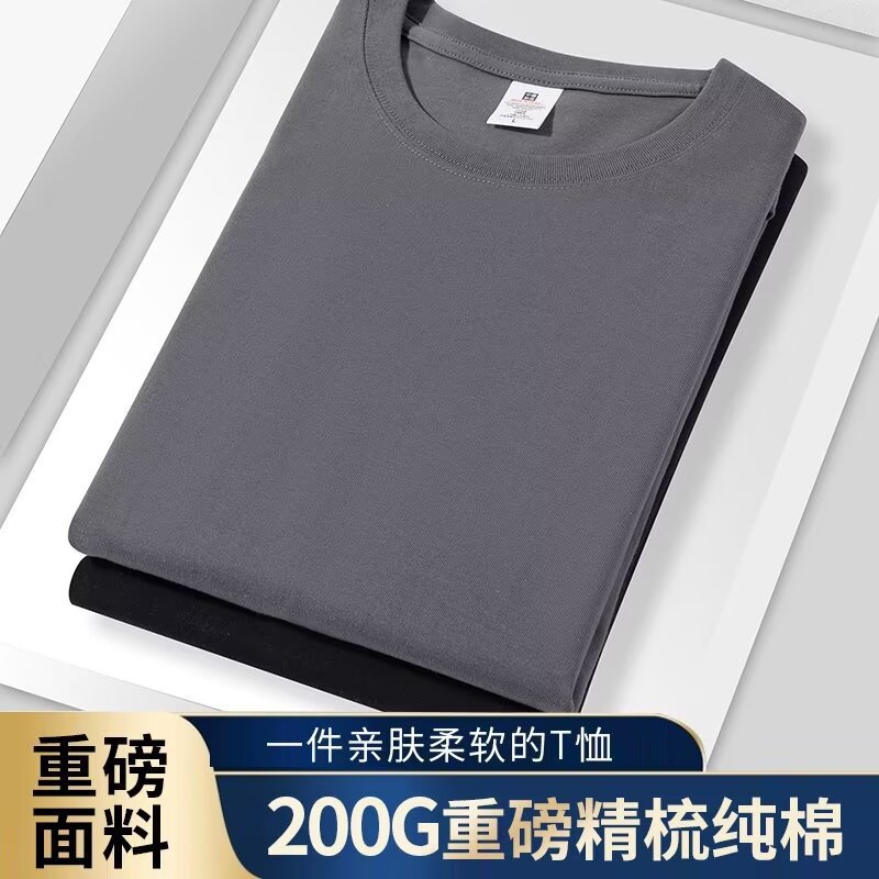 200g 코튼 반팔 티셔츠 크루 넥 트렌디 브랜드 남성베이스 셔츠 팀 클래스 의류 활동 광고 셔츠 작업복 맞춤형스토어 가기