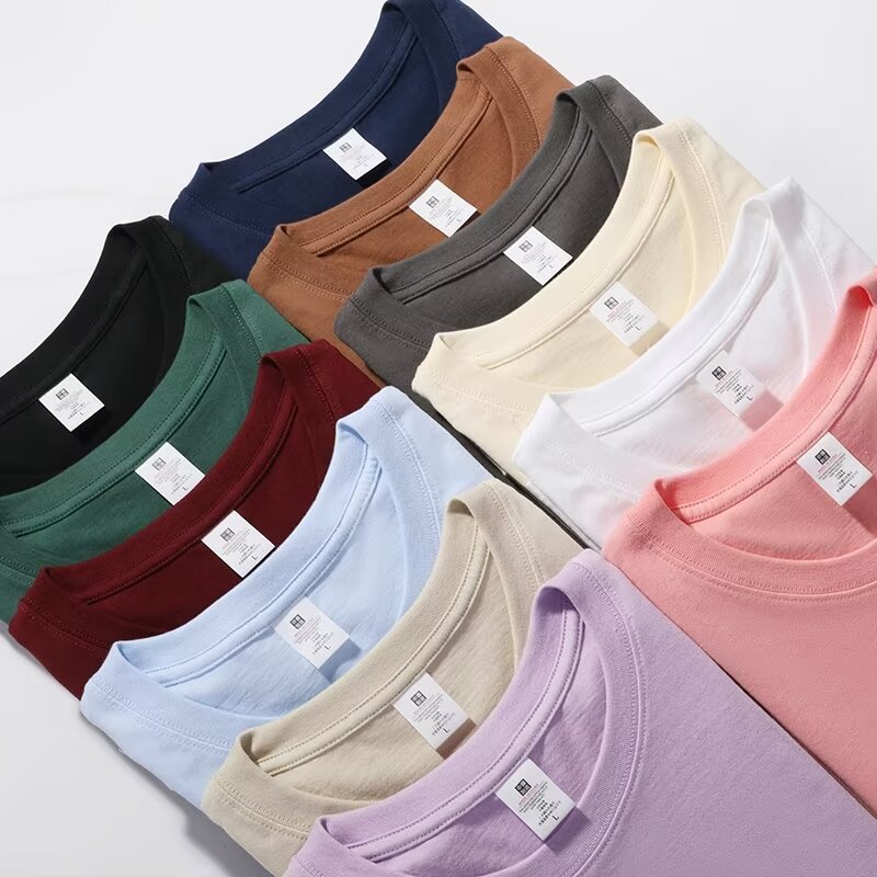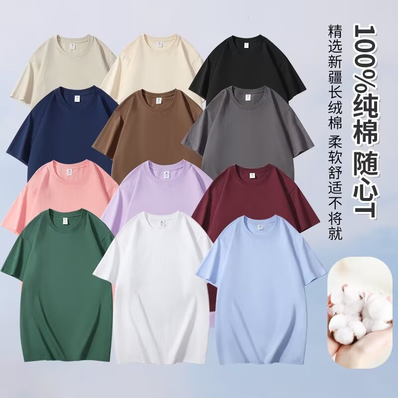 200g 코튼 반팔 티셔츠 크루 넥 트렌디 브랜드 남성베이스 셔츠 팀 클래스 의류 활동 광고 셔츠 작업복 맞춤형