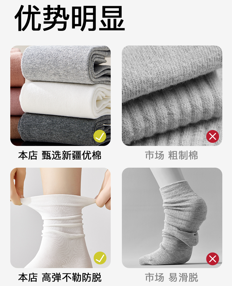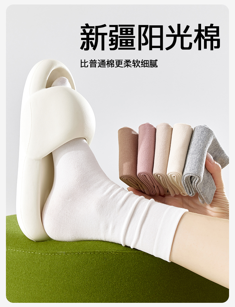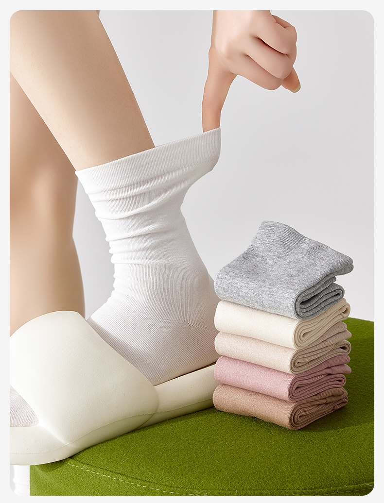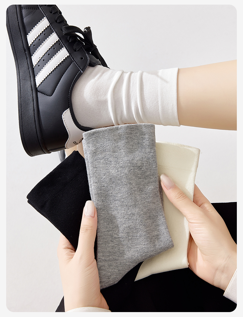 화이트 양말 여성의 봄과 가을 순수 코튼 땀 흡수 냄새 방지 미드 튜브 양말 포장 안티 필링 달 스포츠 스타킹 여름
