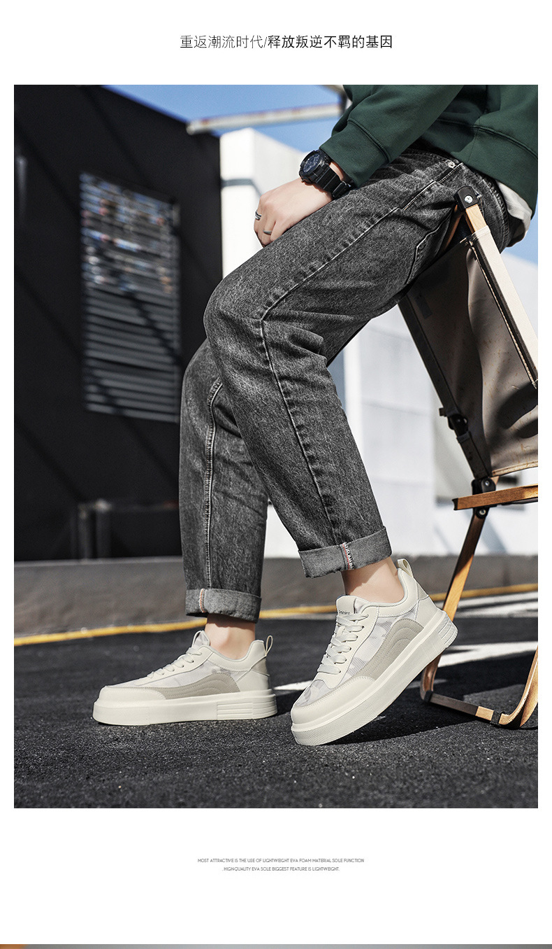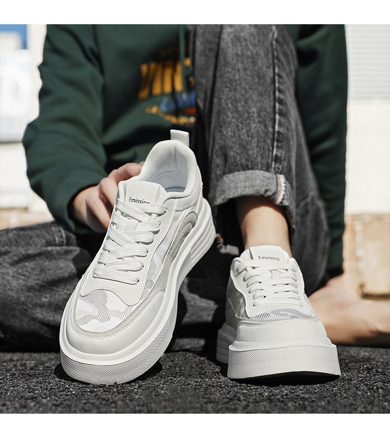남성용 신발 2025 새로운 봄 유행 패션 폭발 위장 청소년 미끄럼 높이 증가 캐주얼 스포츠 보드 신발