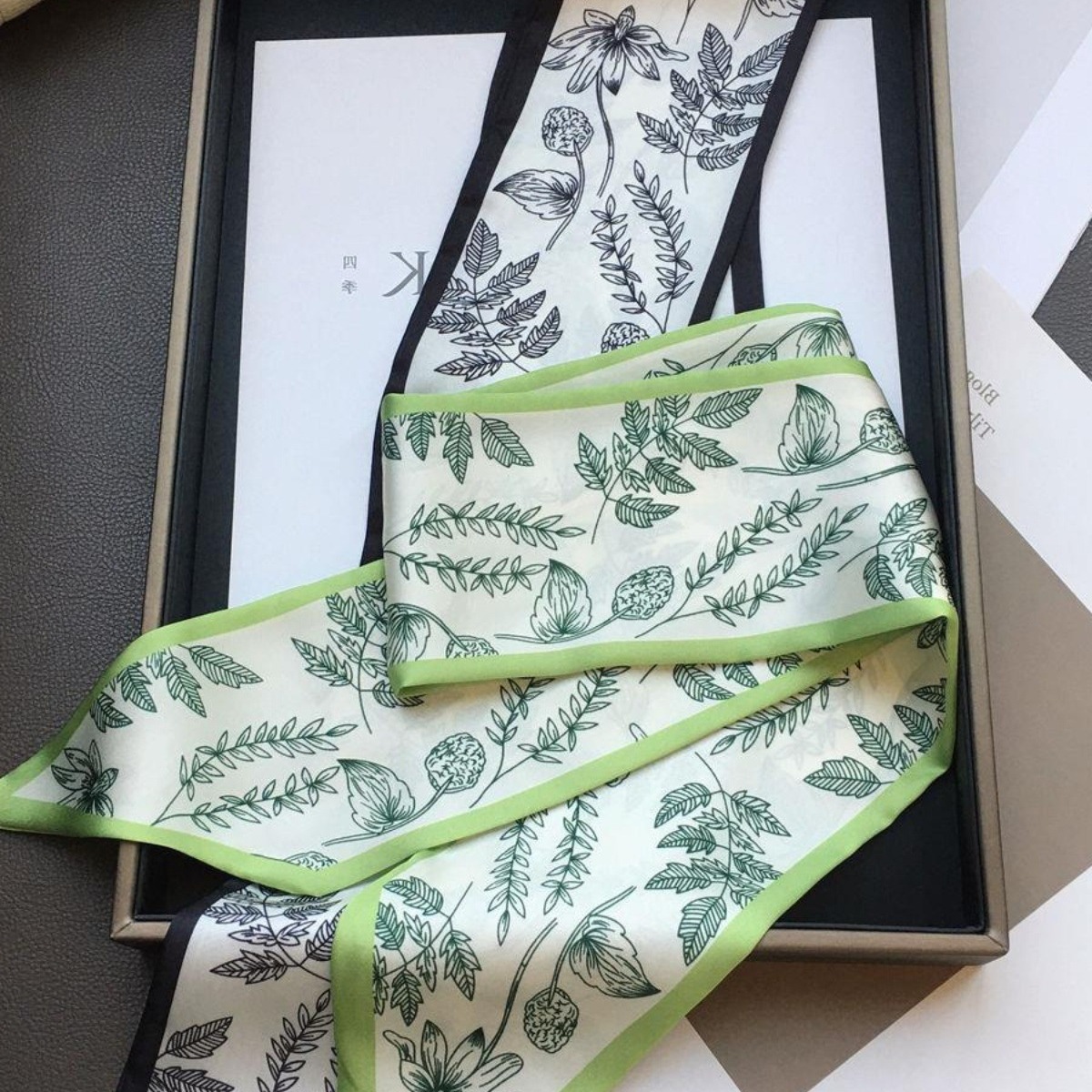 • 【브로큰 플라워 시리즈●그린 엣지】실크 스카프 1개