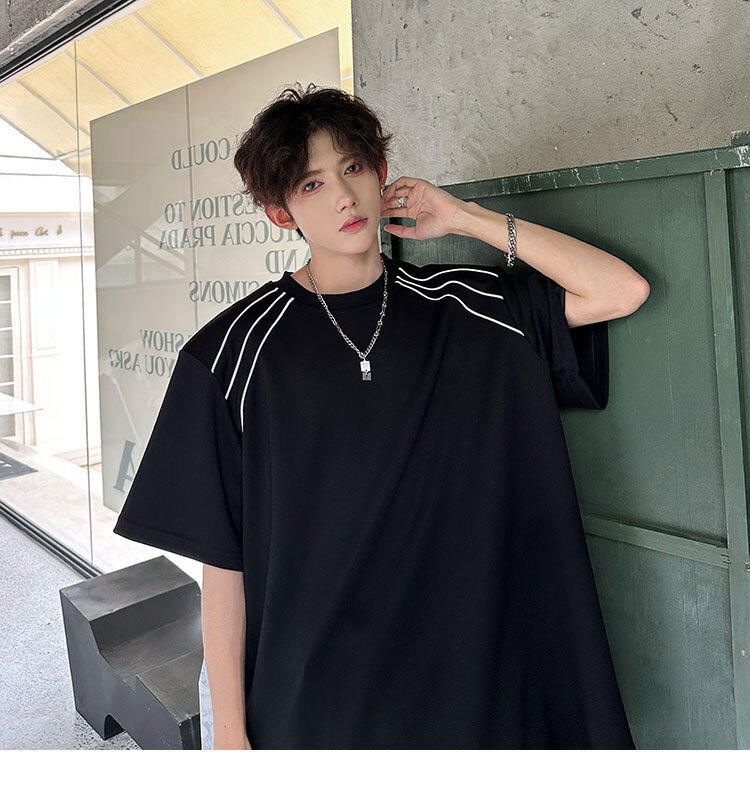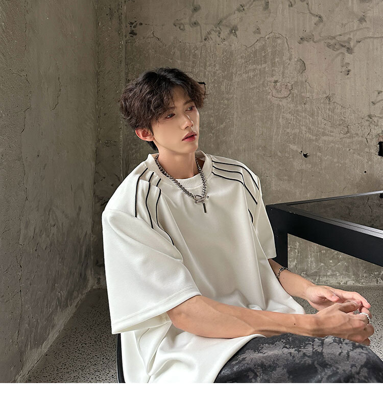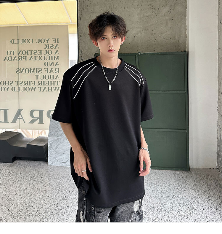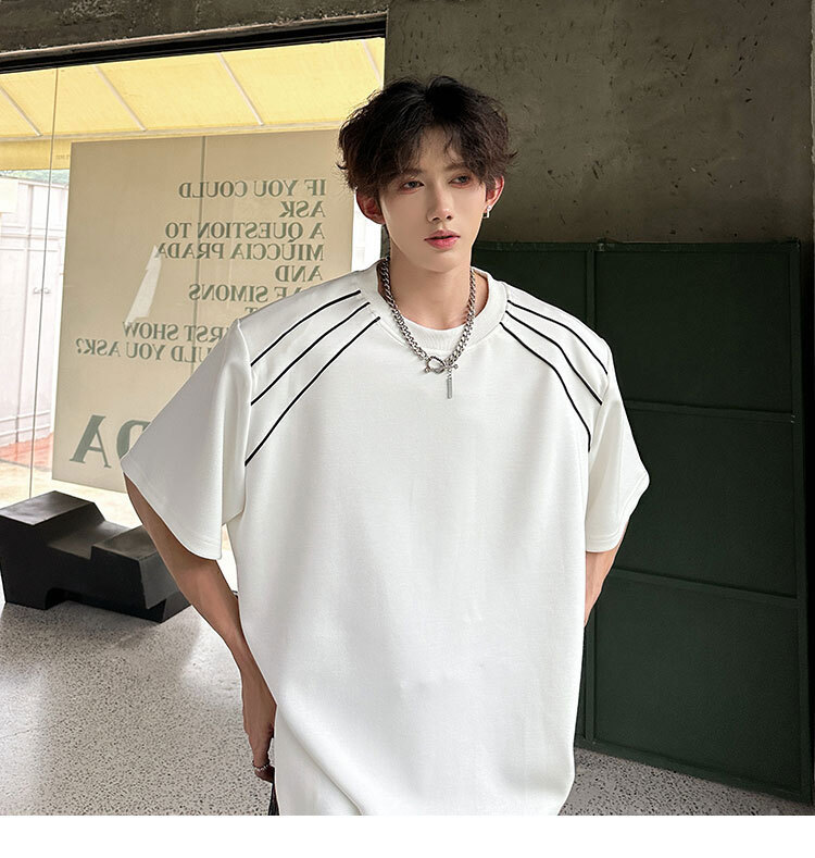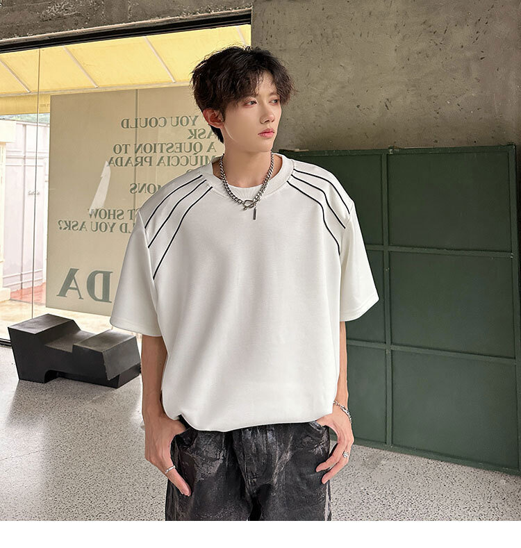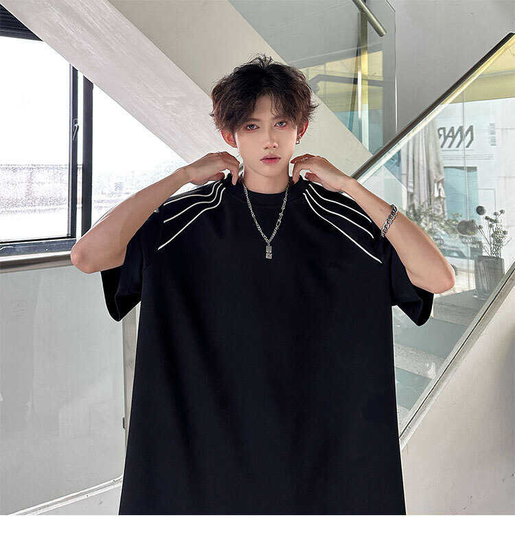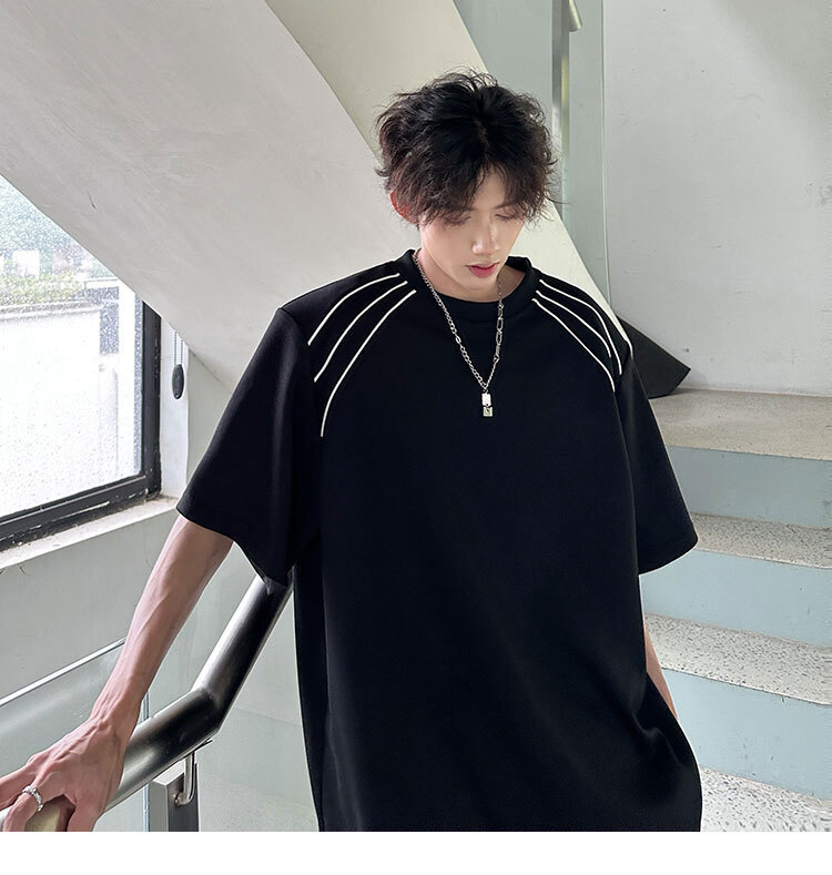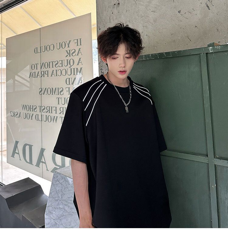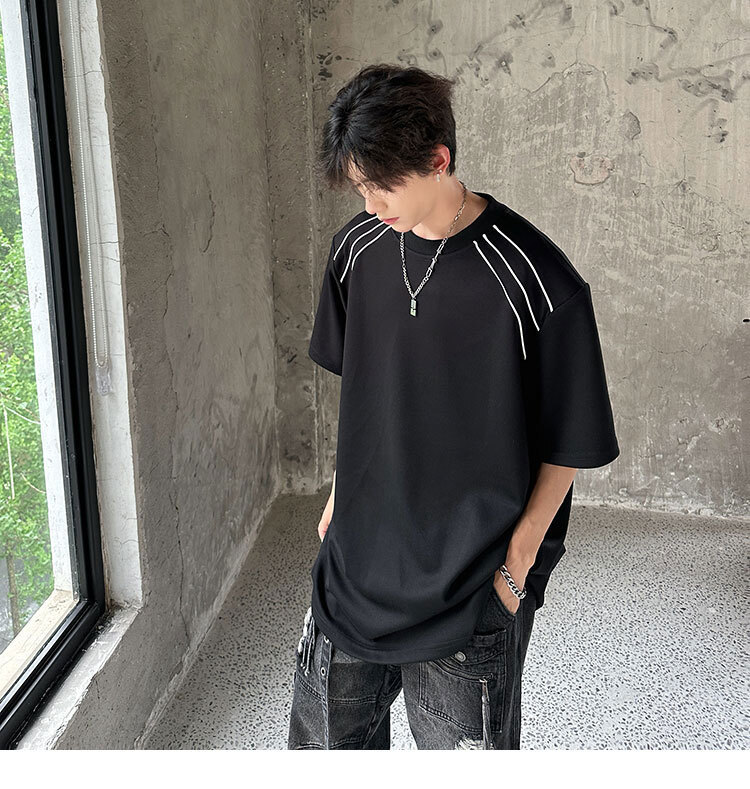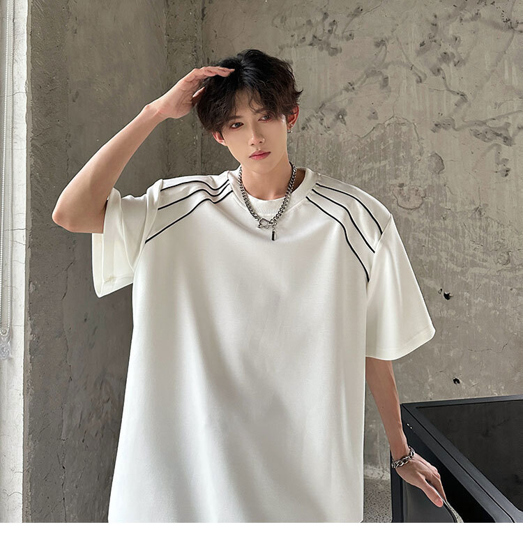 아메리칸 스타일 패션 브랜드 어깨 패드 반팔 티셔츠 남성용 여름 틈새 디자인 센스 반소매 느슨한 캐주얼 라운드 넥 탑